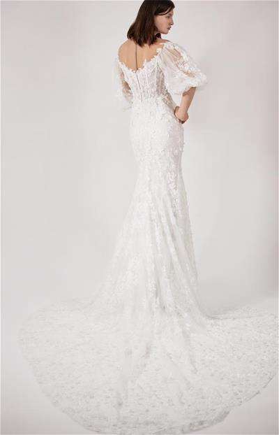 Minimalism for the modern bride. The new 2021 collection from Eva Lendel: Less is more (the name speaks for itself!) rethinks the classic, mermaid and weightless silhouette. It highlights a number of different fashion trends including capes, removable skirts, seductive necklines, elegant bows and trendy sleeves-buffs, as well as exclusive embroidered lace decorated by hand and much more. This line of gowns has a wide variety of looks for a plethora of tastes and brides. You’re sure to find the perfect gown for you in this collection!