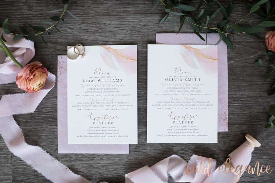 For our Winter/Spring 2021 photo shoot, Paperwhites worked with us to create a gorgeous custom invitation suite as well as menu cards. Let’s look at four of the gorgeous trends in wedding stationery on display in this ethereal set.