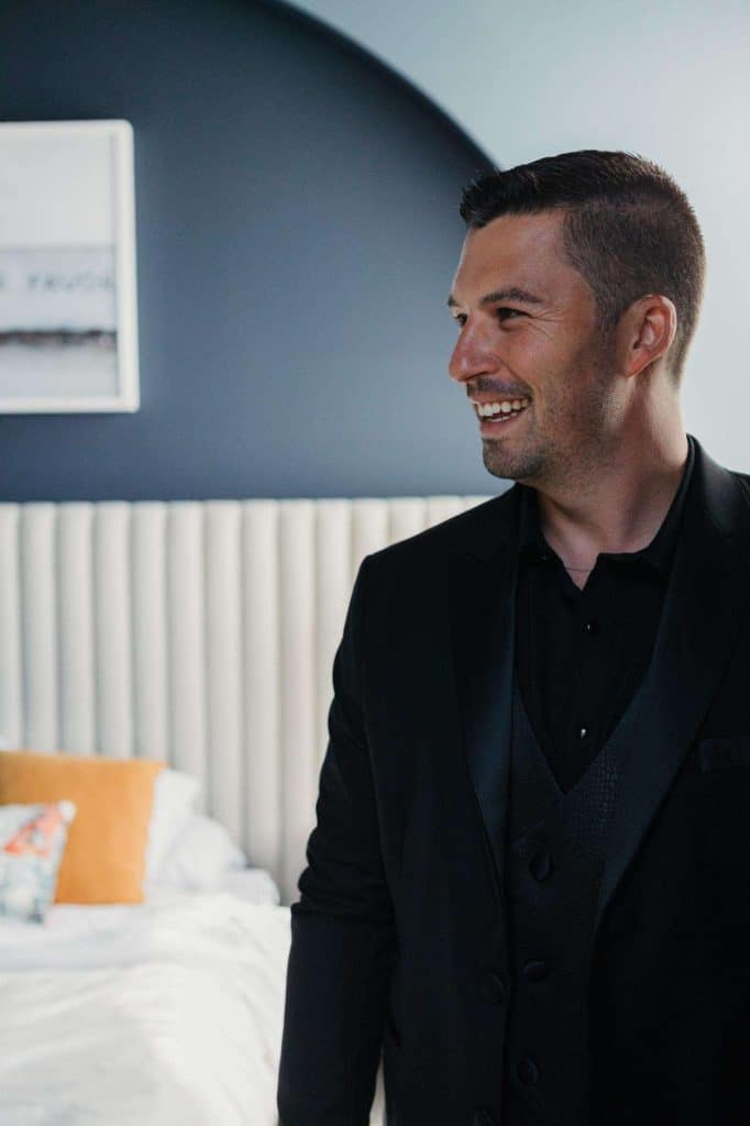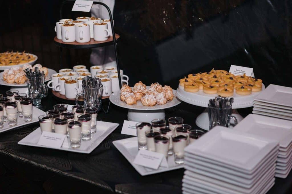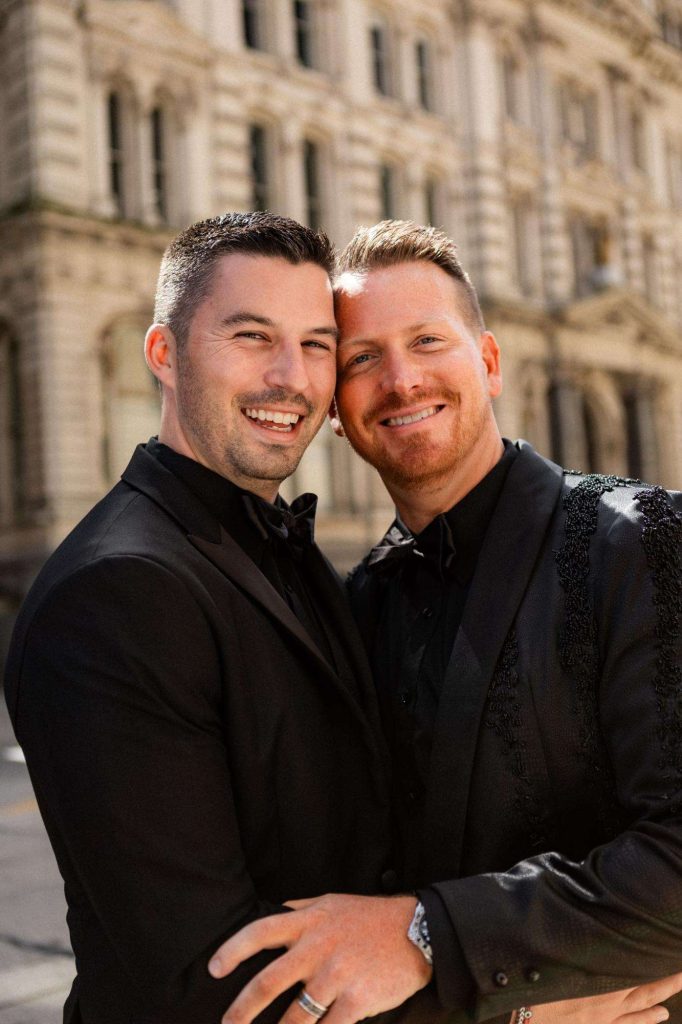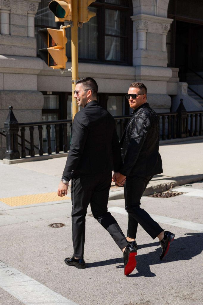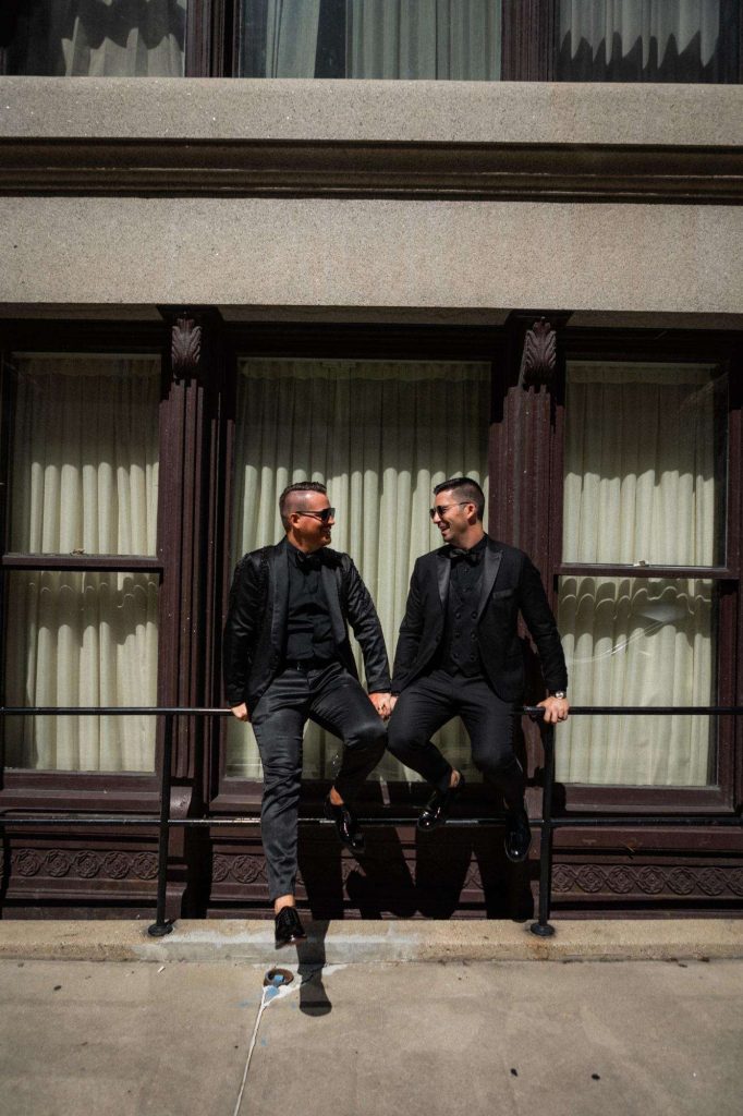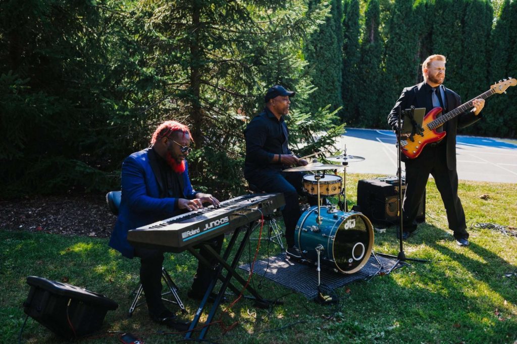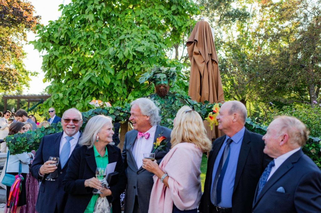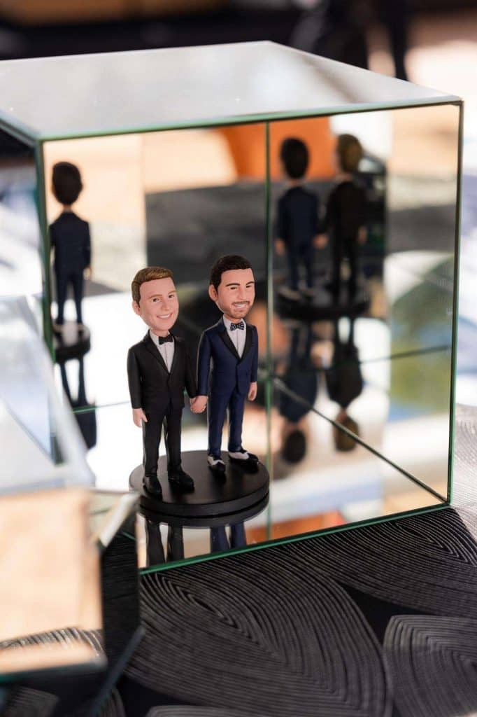 “The building of our custom tent in Andy’s Nana’s home in Wisconsin – We live in San Diego! A few other favorites included; the Ombre Rainbow friends table, outdoor ceremony under the pergola, the candles, the tropical floral and live elements and custom dance floor. WE LOVED EVERYTHING! It was the coldest day in September, but also was okay with us.”