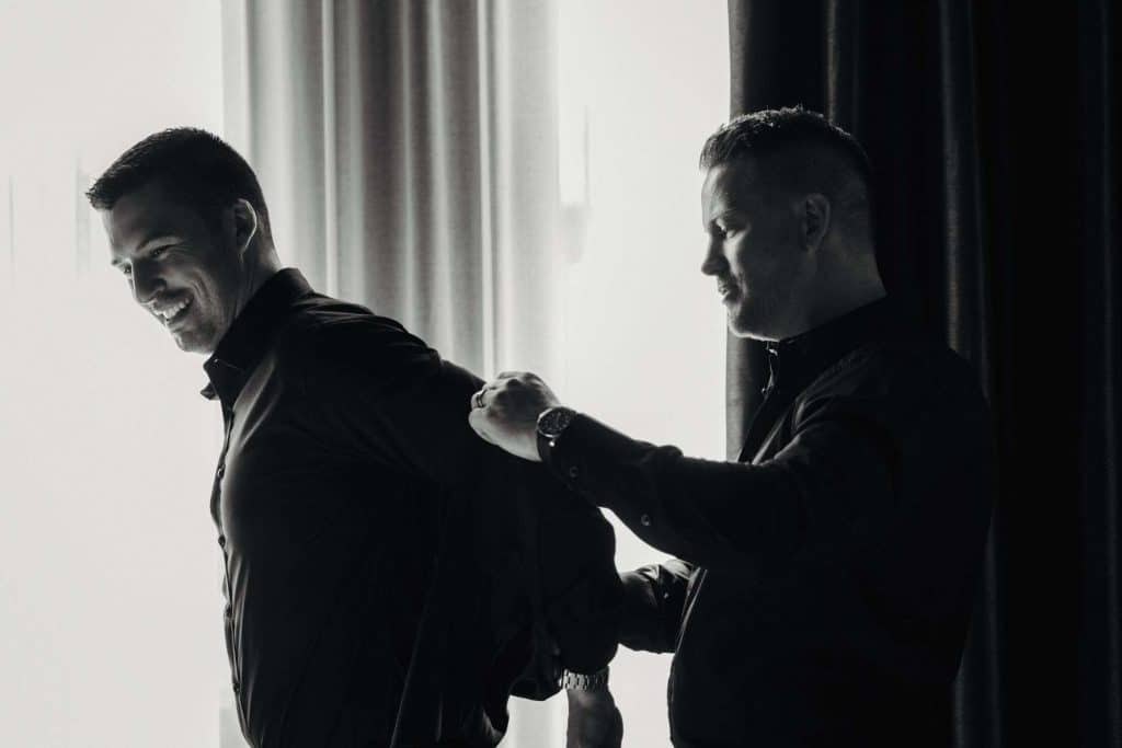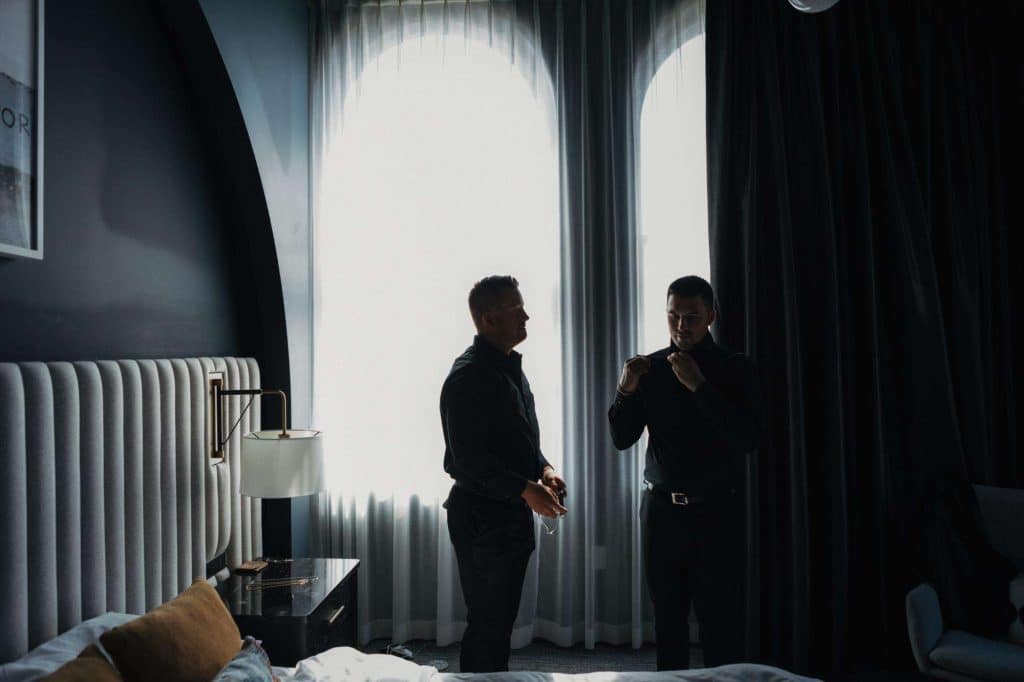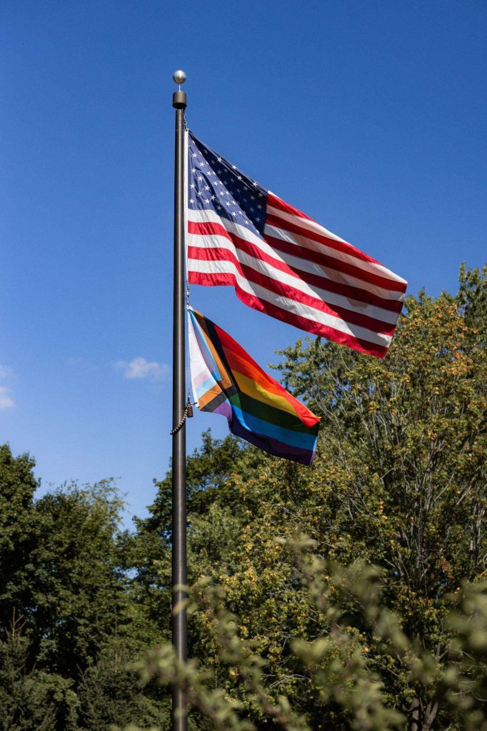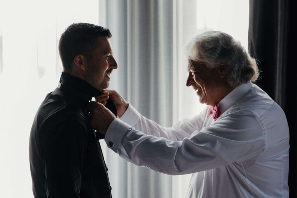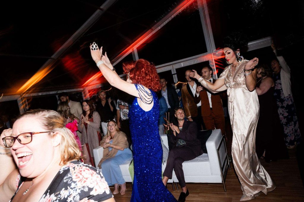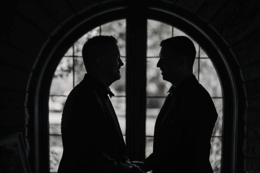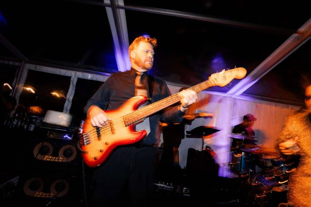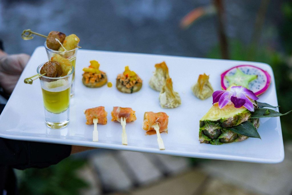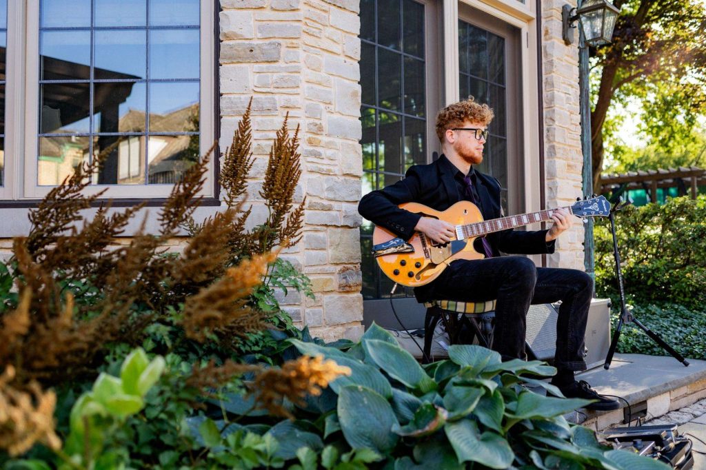 “The building of our custom tent in Andy’s Nana’s home in Wisconsin – We live in San Diego! A few other favorites included; the Ombre Rainbow friends table, outdoor ceremony under the pergola, the candles, the tropical floral and live elements and custom dance floor. WE LOVED EVERYTHING! It was the coldest day in September, but also was okay with us.”