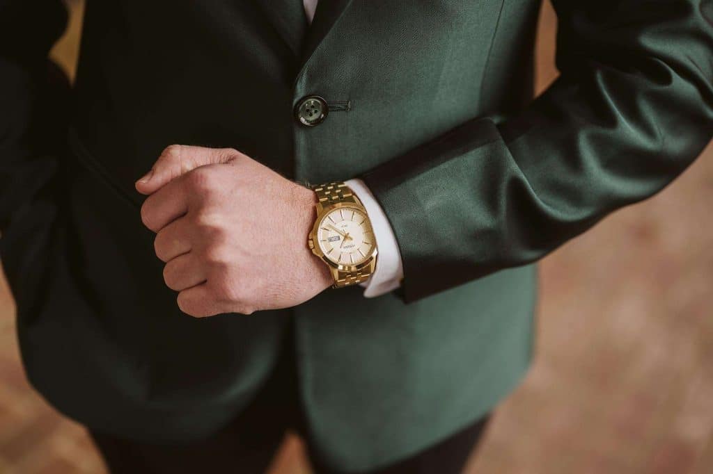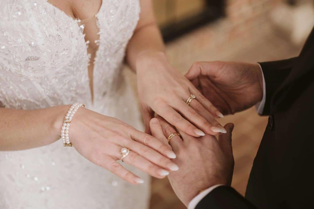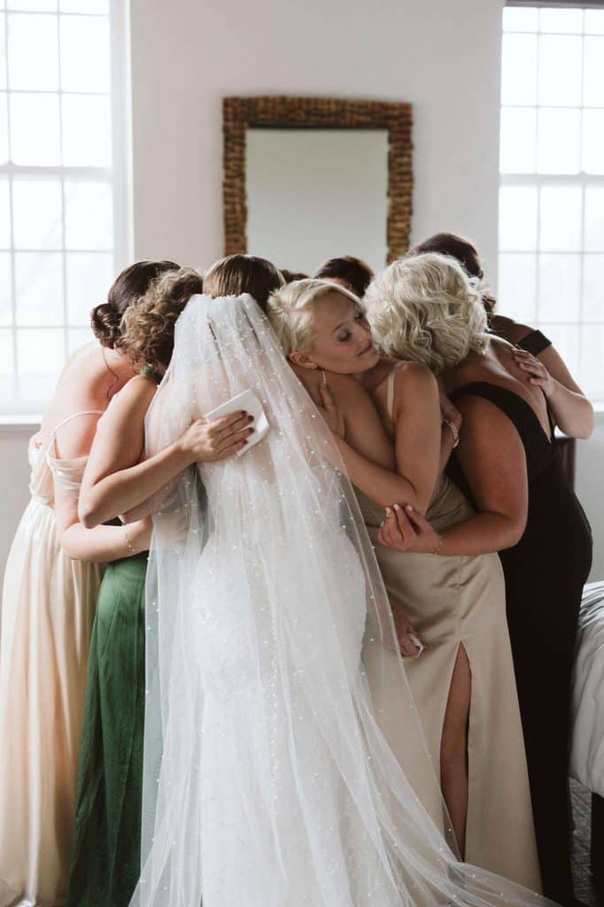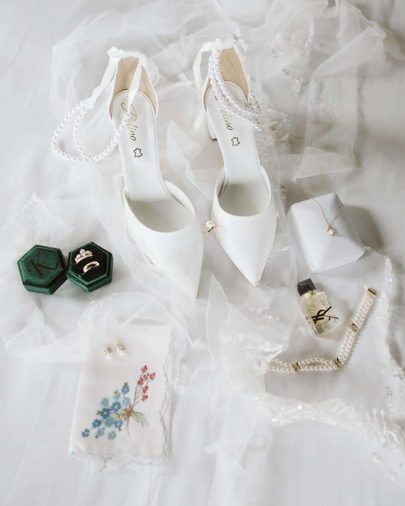 “I made the bridesmaids bouquets and corsages with wooden flowers from Sola and they turned out beautifully – with a pearl wrist band, gold baby’s breath, and white roses.”