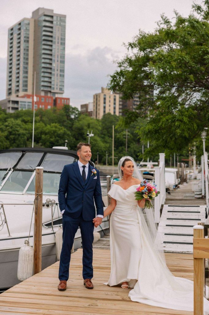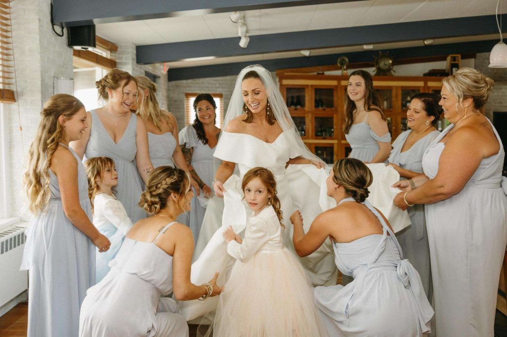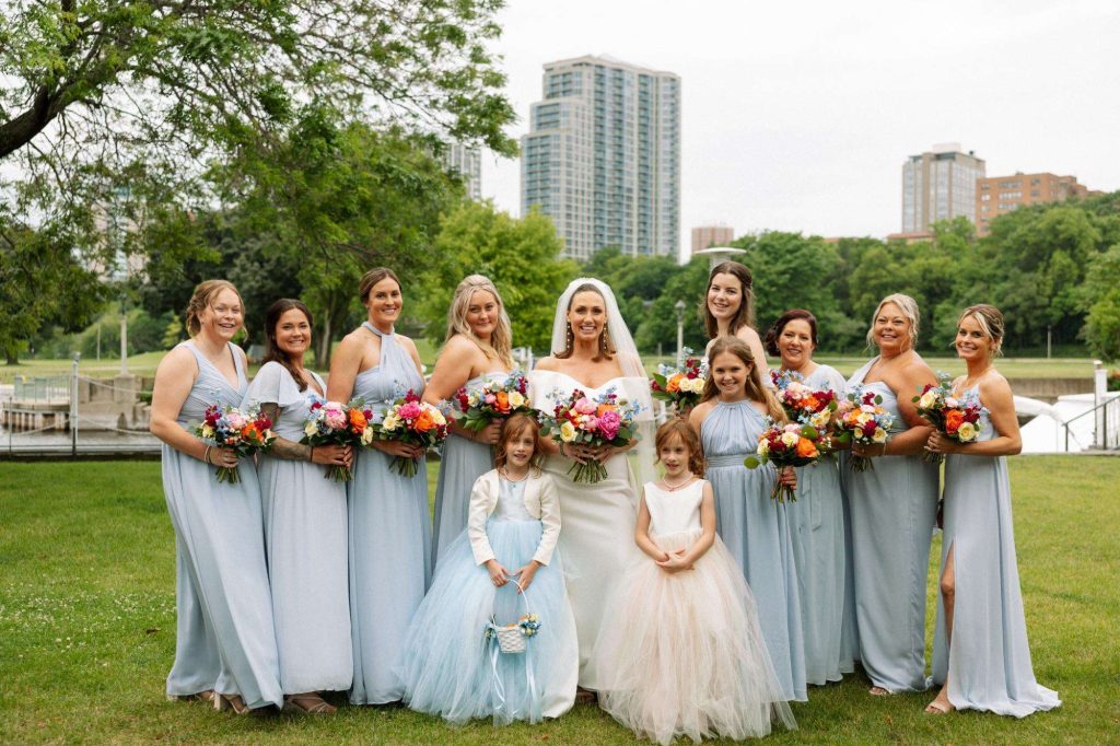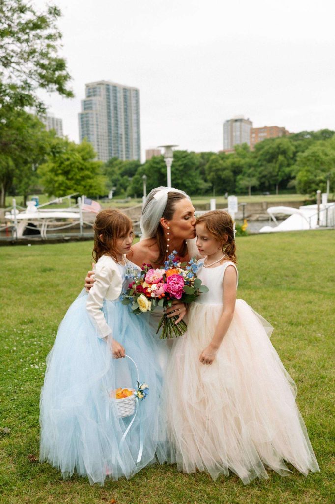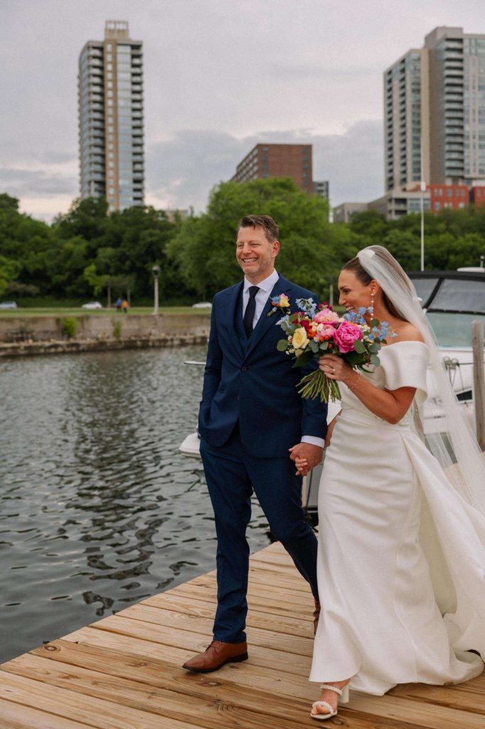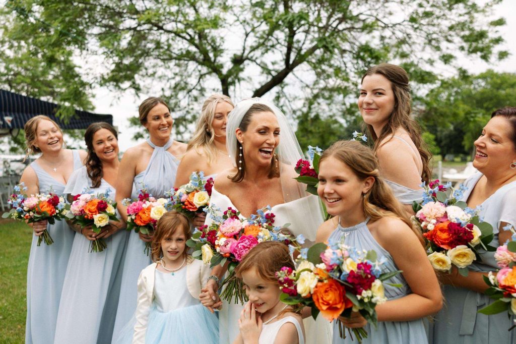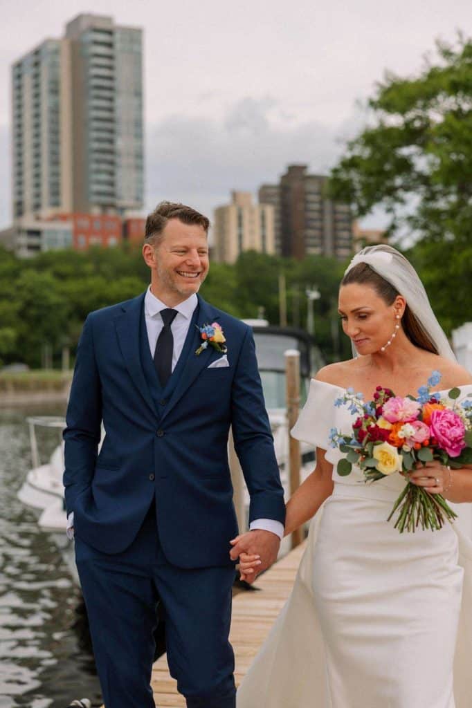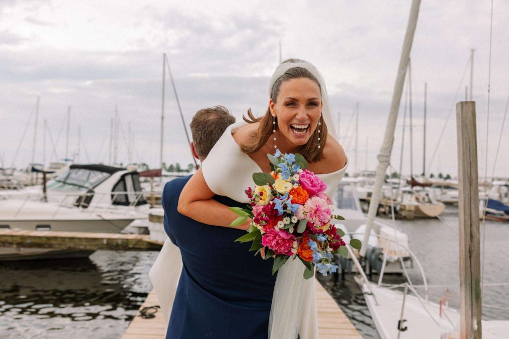“It is so hard to choose a favorite moment. Walking in announcing our new marriage along with our wedding party, the speeches from our best man and maid of honor, dancing with family. Not to forget David singing ‘Rock Me Mama Like a Wagon Wheel’ with his groomsmen…and my daughter, Aria, immediately changing out of her dress after the ceremony into her onesy pajamas.”