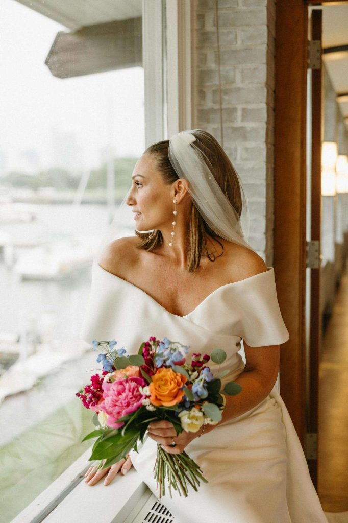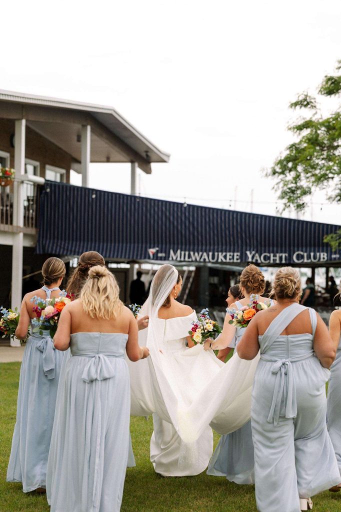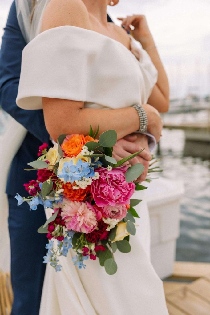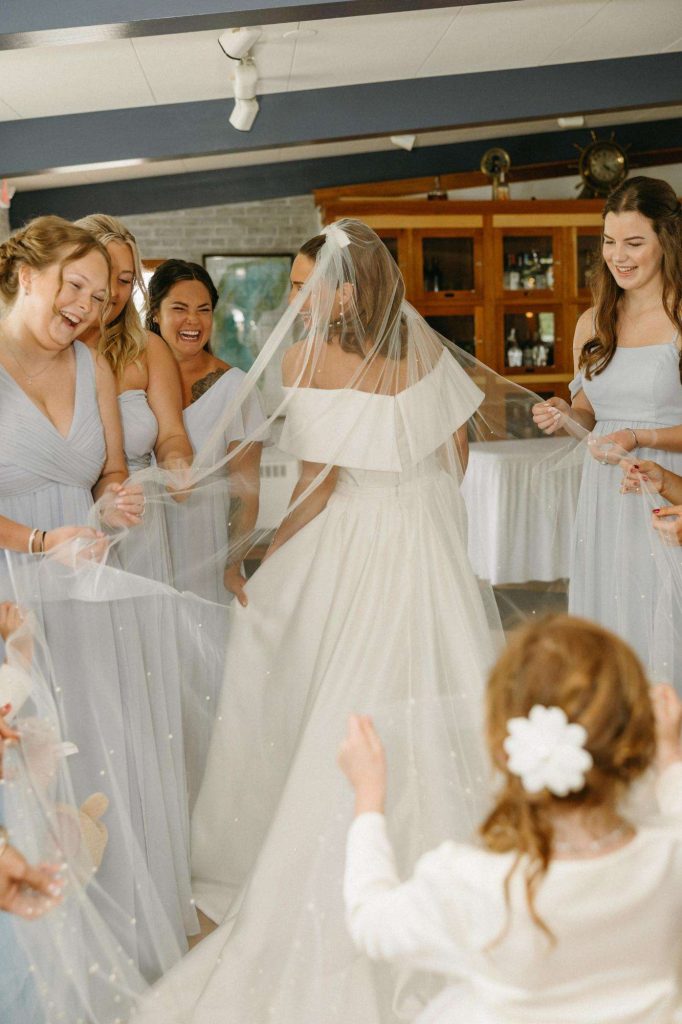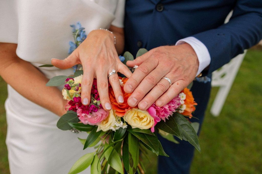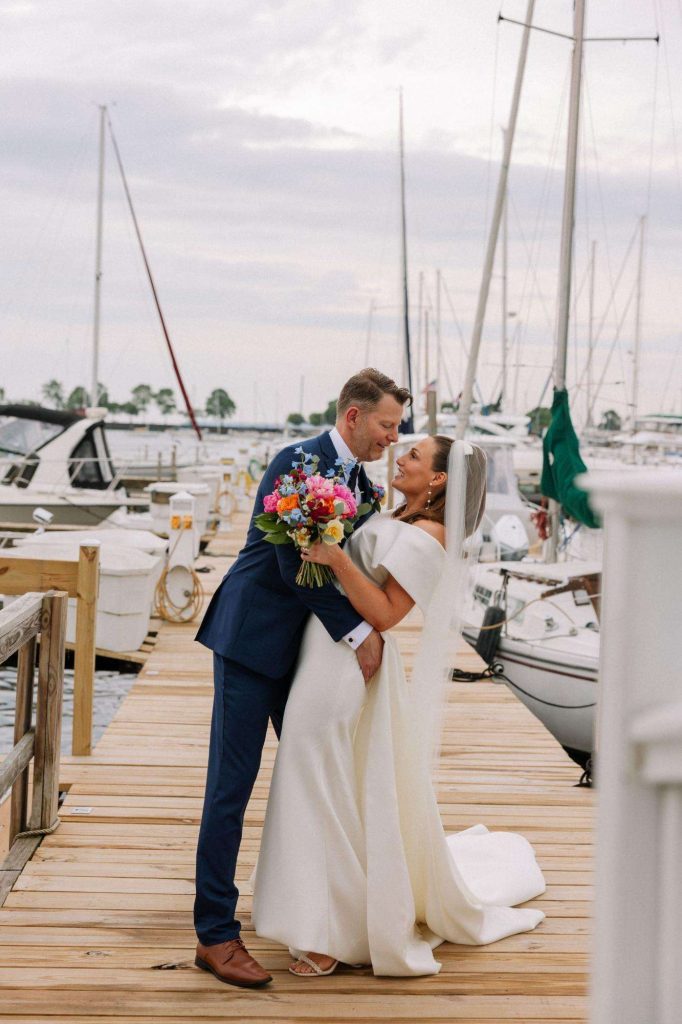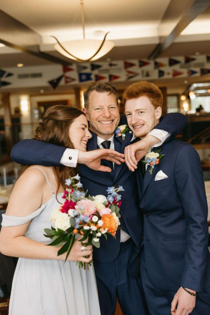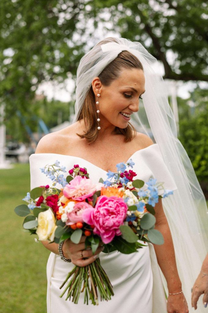 “It is so hard to choose a favorite moment. Walking in announcing our new marriage along with our wedding party, the speeches from our best man and maid of honor, dancing with family. Not to forget David singing ‘Rock Me Mama Like a Wagon Wheel’ with his groomsmen…and my daughter, Aria, immediately changing out of her dress after the ceremony into her onesy pajamas.”
