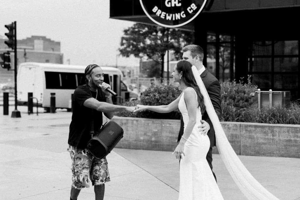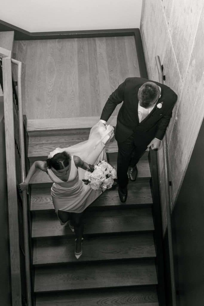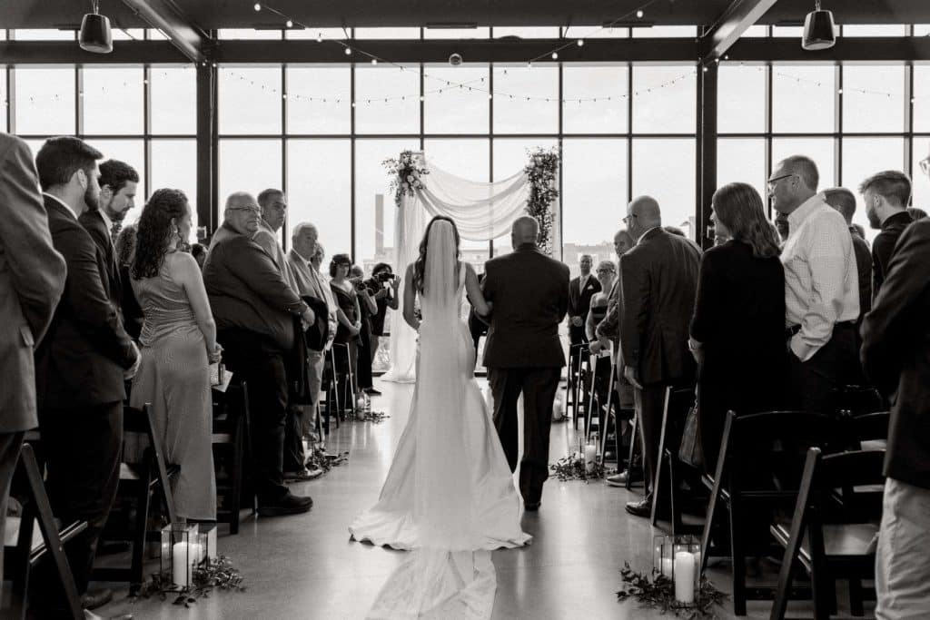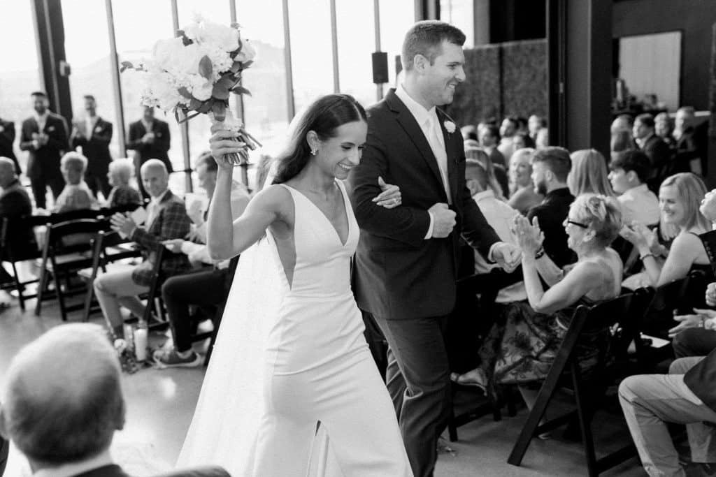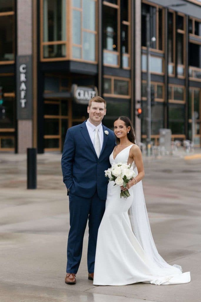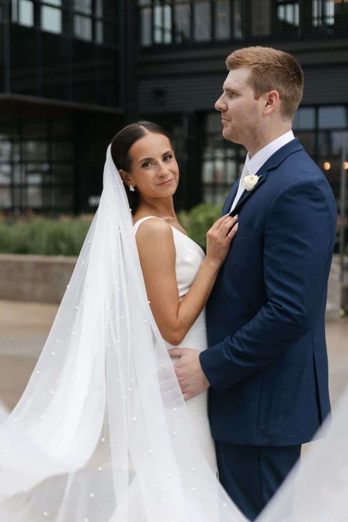 “Our kings table was a must have! We had been looking forward to feeling like we were at a large dinner party with friends and family throughout the process. The low and lush floral garland with taper candles on our kings table made the night a dream. We also incorporated small details such as signature cocktails, edible drink toppers, patterned linens, chargers and black flatware from Well Dressed Tables (Arena Americas).”