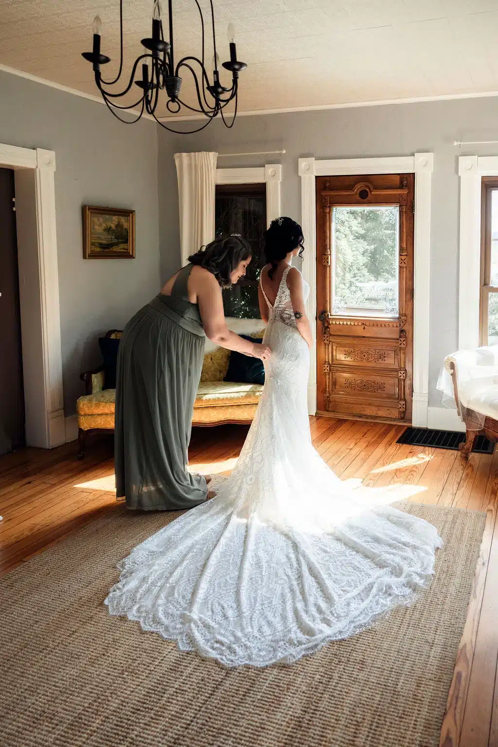 The couple focused their wedding style on being timeless and elegant for years to come. They incorporated colors of green and ivory with hints of gold and brown throughout the day.