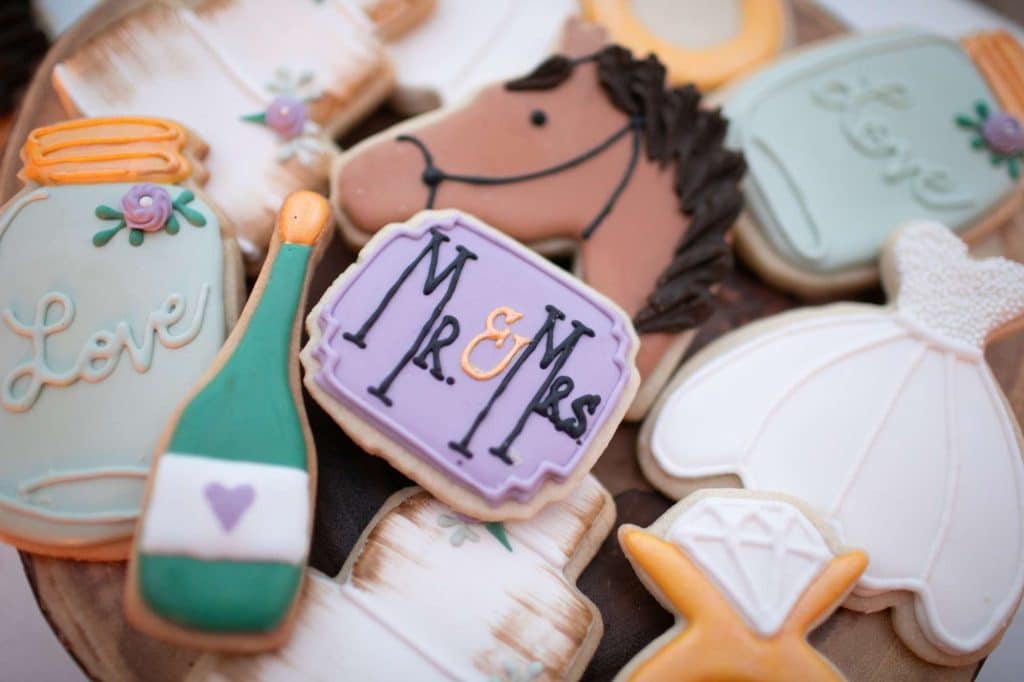 The lush florals and dreamy attire are perfection. The themed cookies are almost too cute to eat!