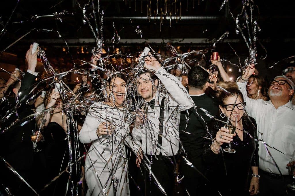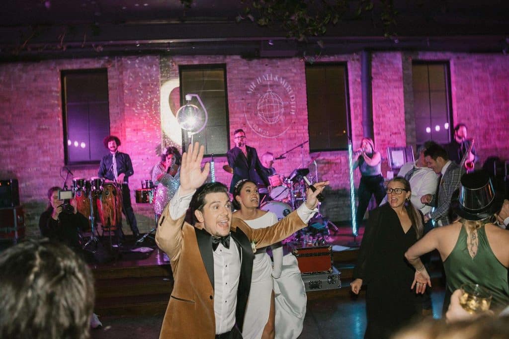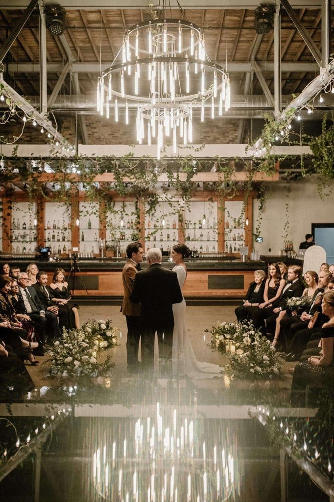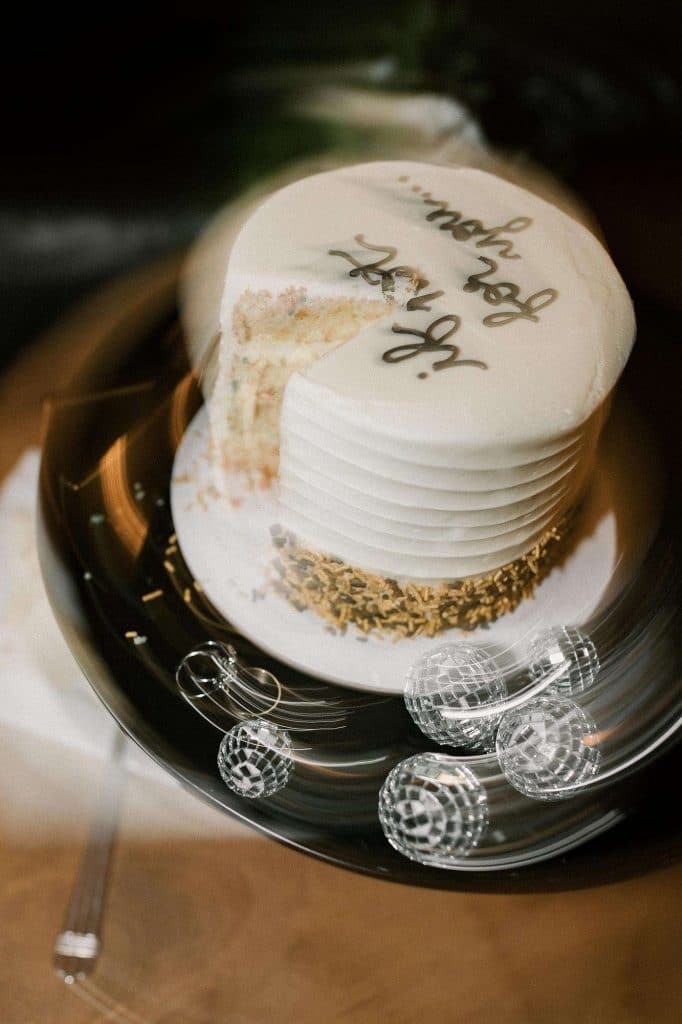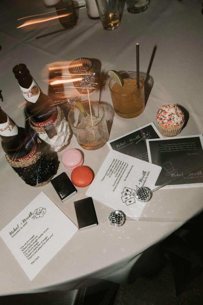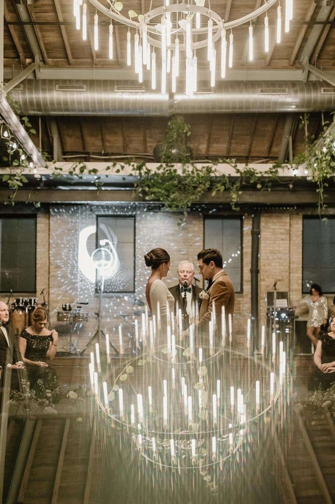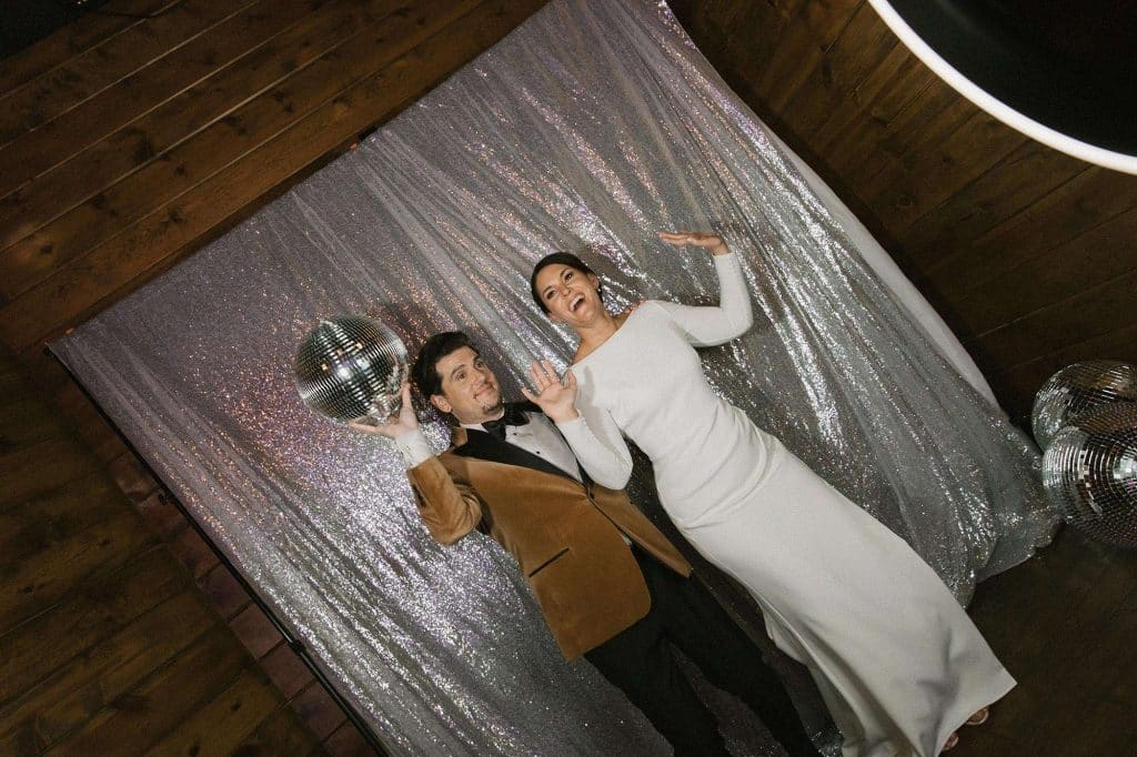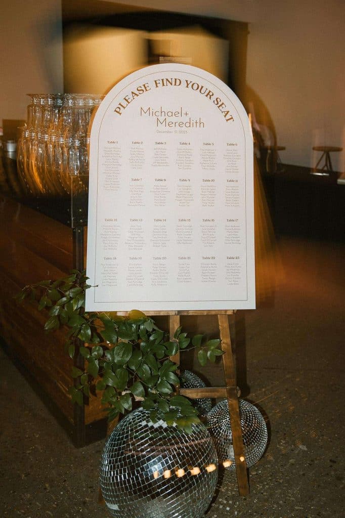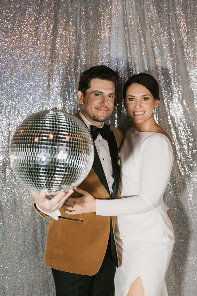 “Our wedding planner, Renee Breanne Designs, and Florist, Feisty Flowers, really brought our vision to life. We rented every disco ball that Relics Rentals had available so they incorporated those with lots of candles into the centerpieces and ‘altar’ circle.”