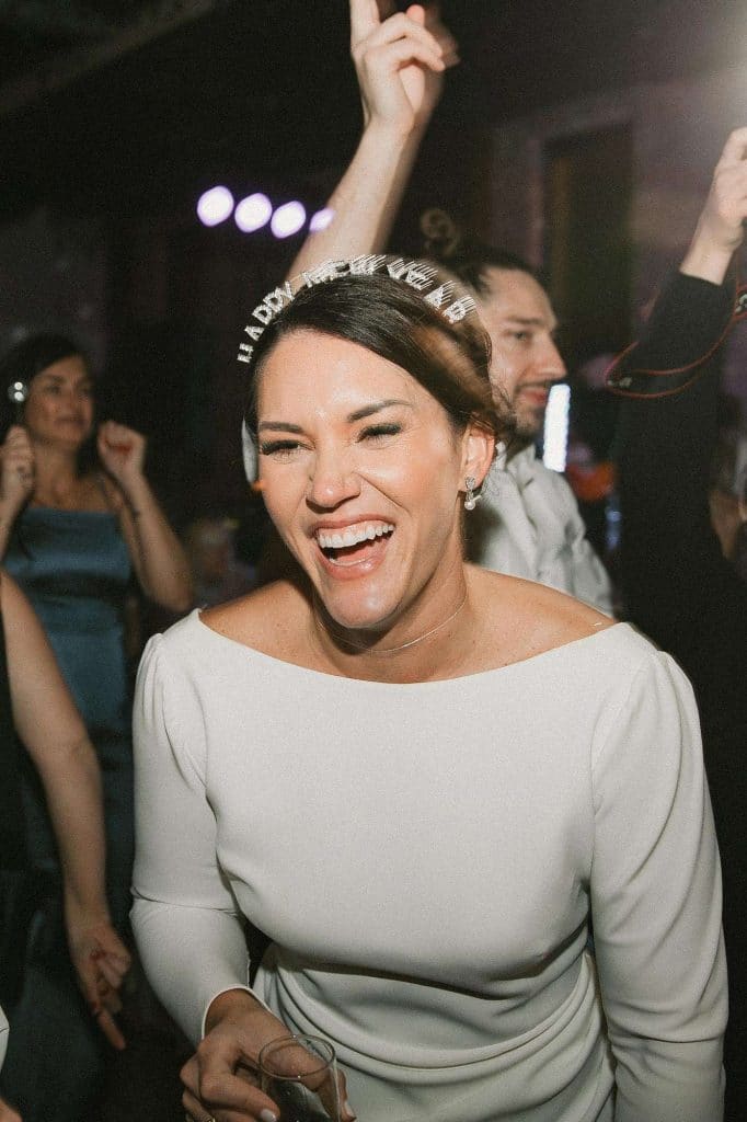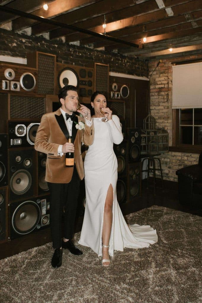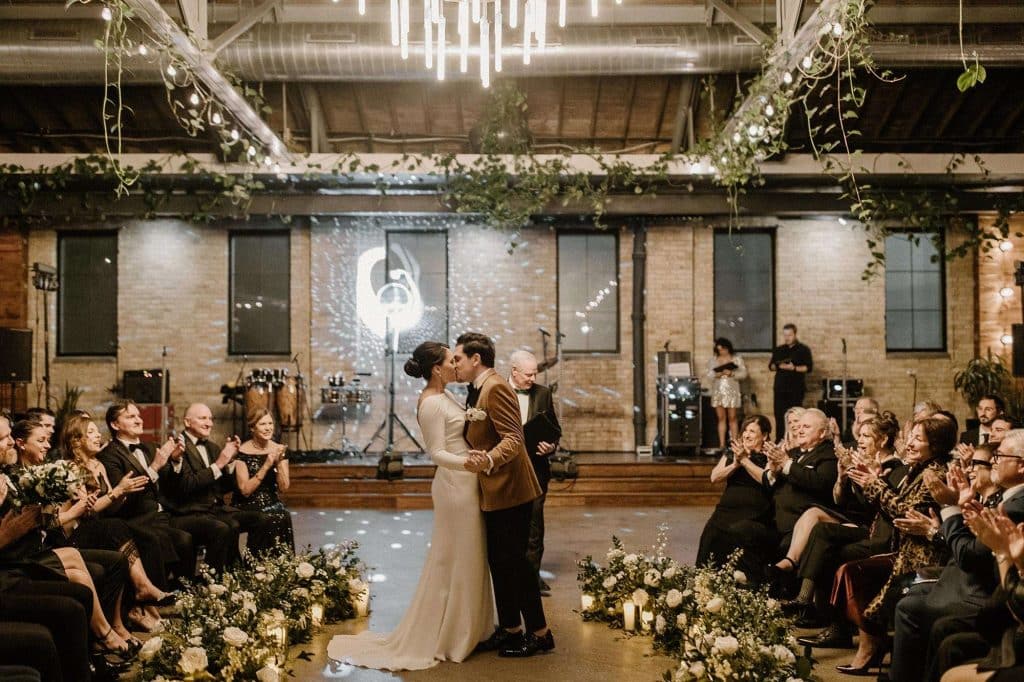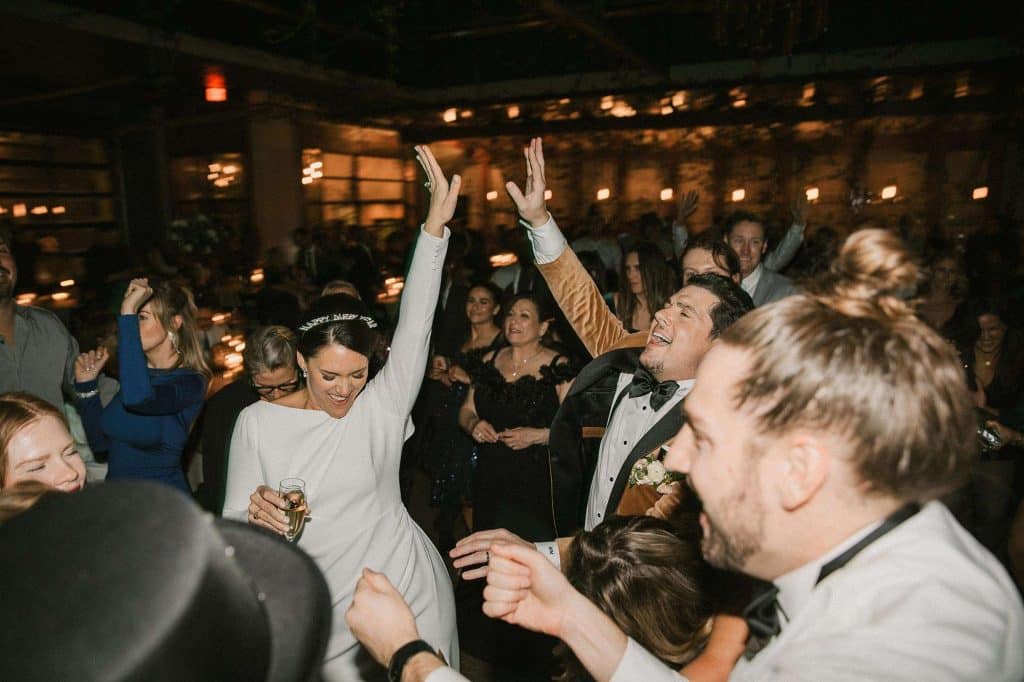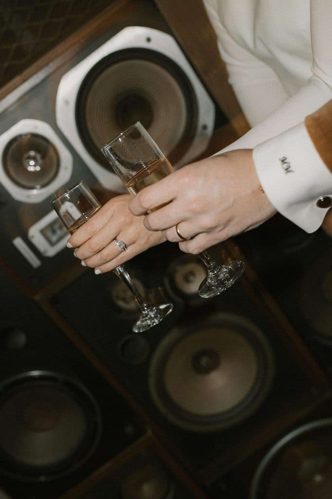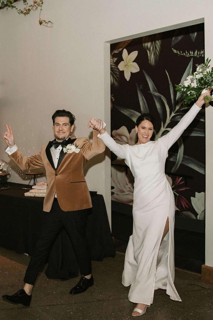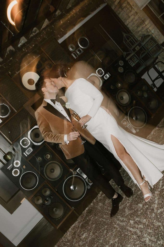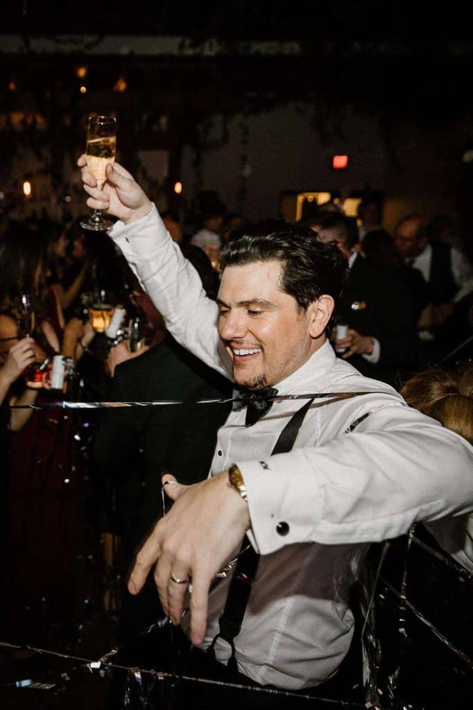 “Our wedding planner, Renee Breanne Designs, and Florist, Feisty Flowers, really brought our vision to life. We rented every disco ball that Relics Rentals had available so they incorporated those with lots of candles into the centerpieces and ‘altar’ circle.”