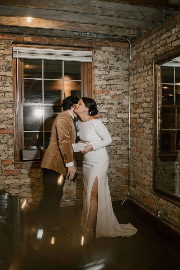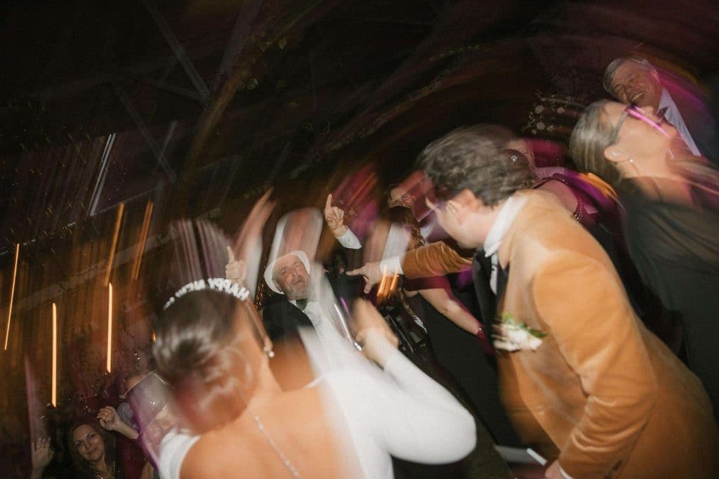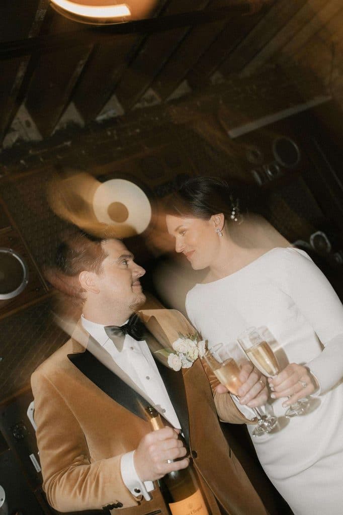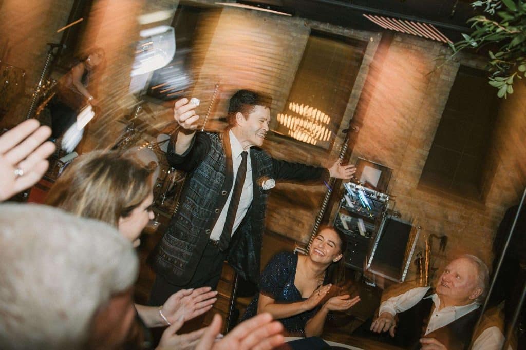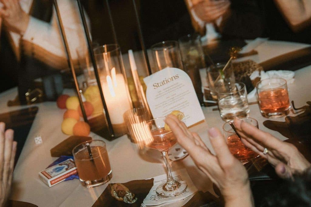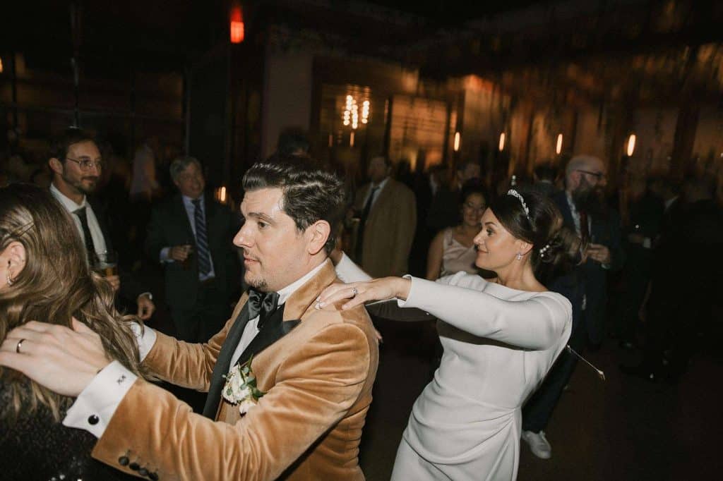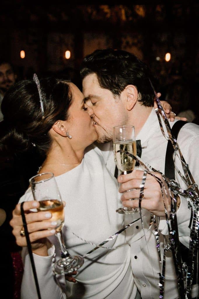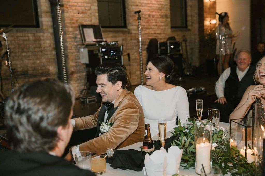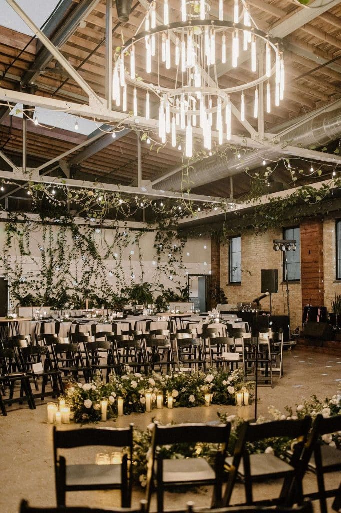 “Our wedding planner, Renee Breanne Designs, and Florist, Feisty Flowers, really brought our vision to life. We rented every disco ball that Relics Rentals had available so they incorporated those with lots of candles into the centerpieces and ‘altar’ circle.”