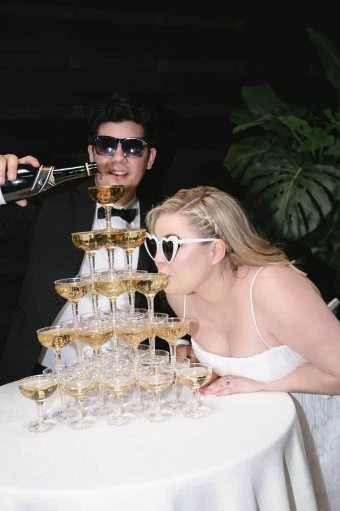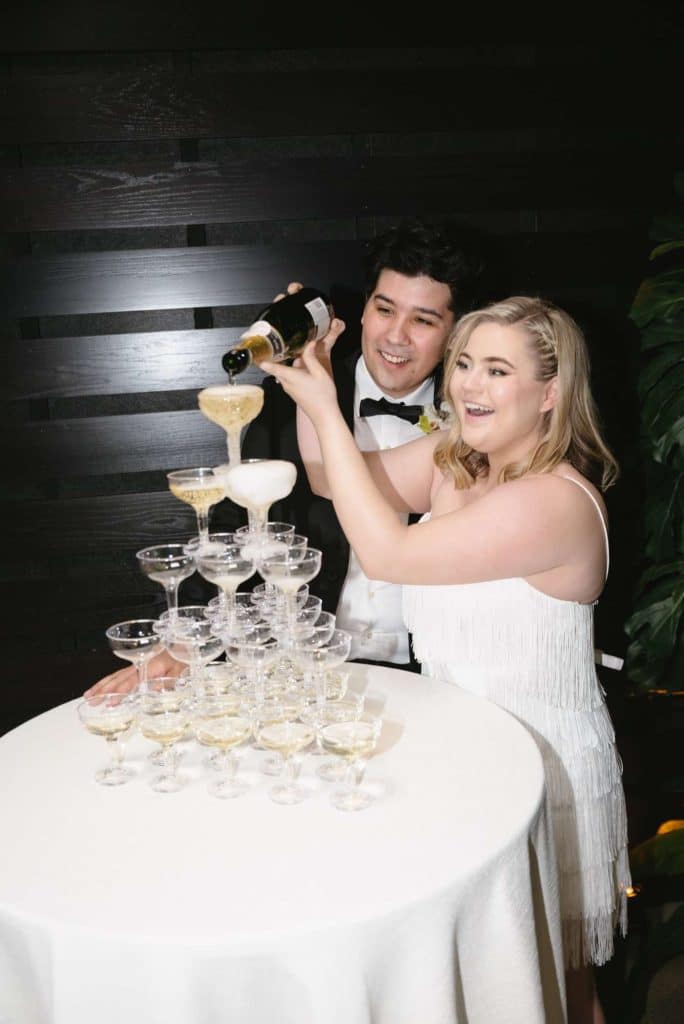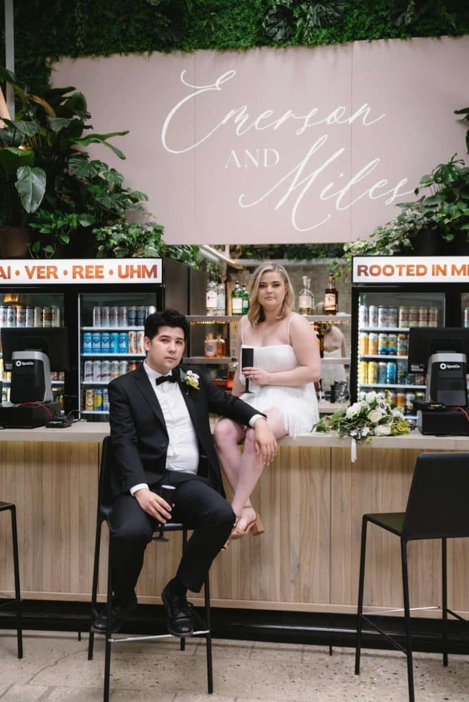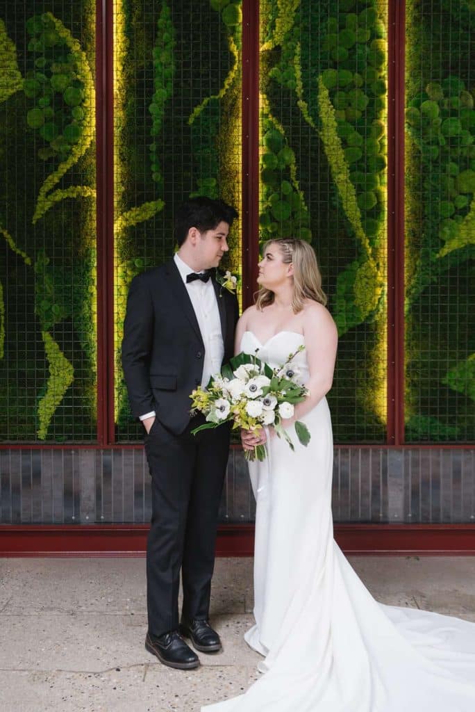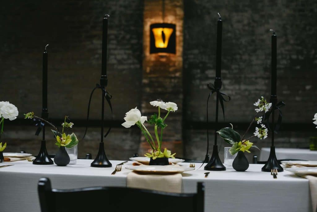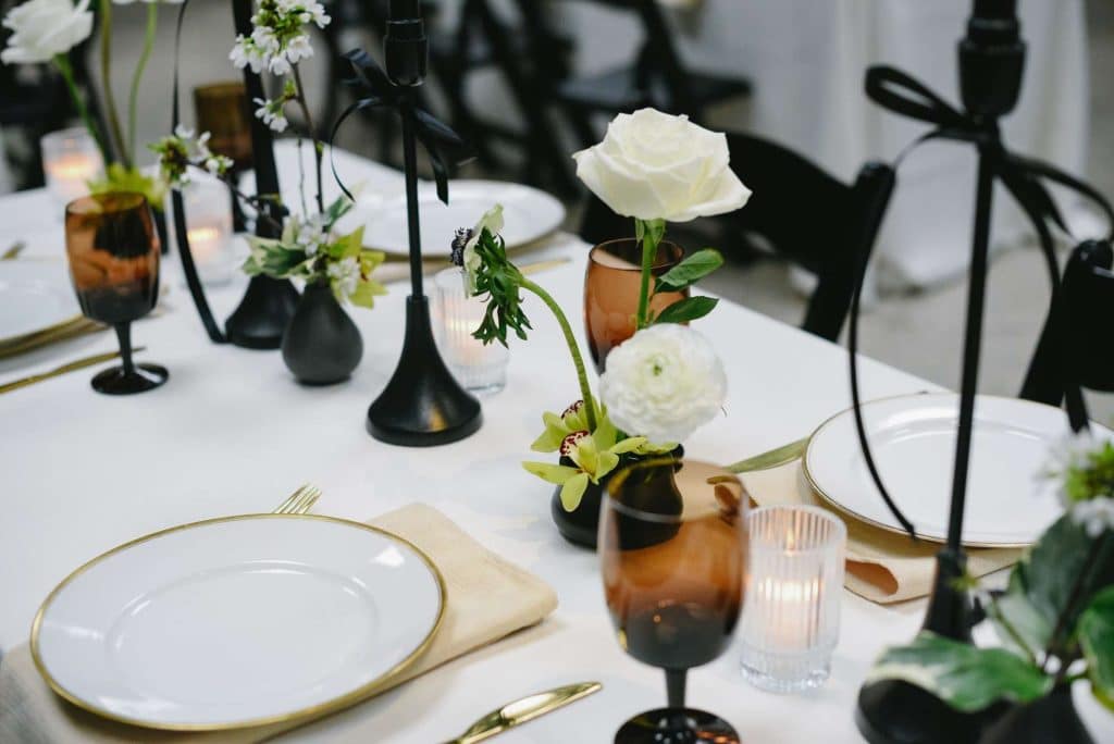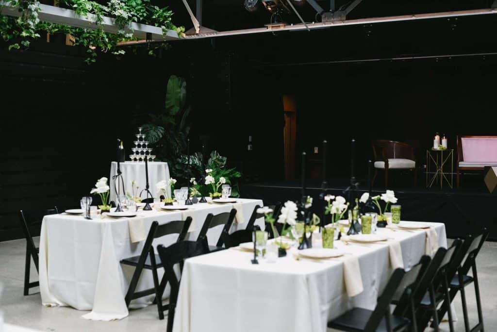 The wedding decor at Vivarium for this styled shoot was a stunning blend of modern and organic elements. Black, white, and green hues were artfully incorporated throughout the venue to create a chic and sophisticated ambiance.