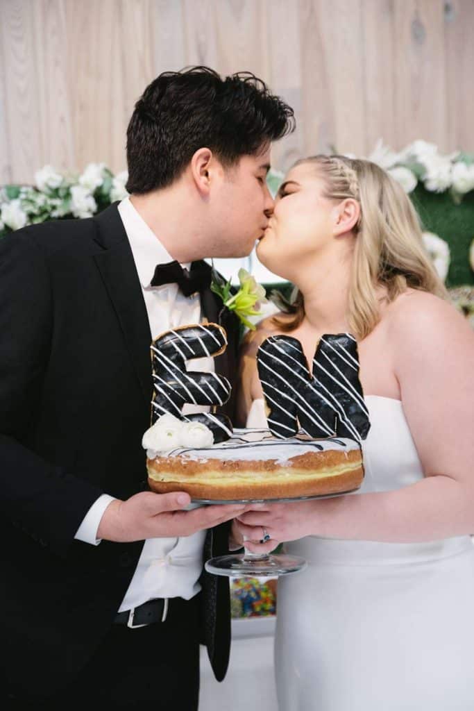 Cranky Al’s Donuts provided delicious treats that added a touch of sweetness to the occasion, while Miss Ruby Bridal Boutique dressed our alternative bride in a gown that was both elegant and edgy. A Savvy Bride outfitted the groom a black sleek suit. Paperwhites Milwaukee created unique stationery that tied everything together seamlessly.