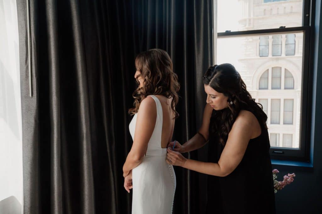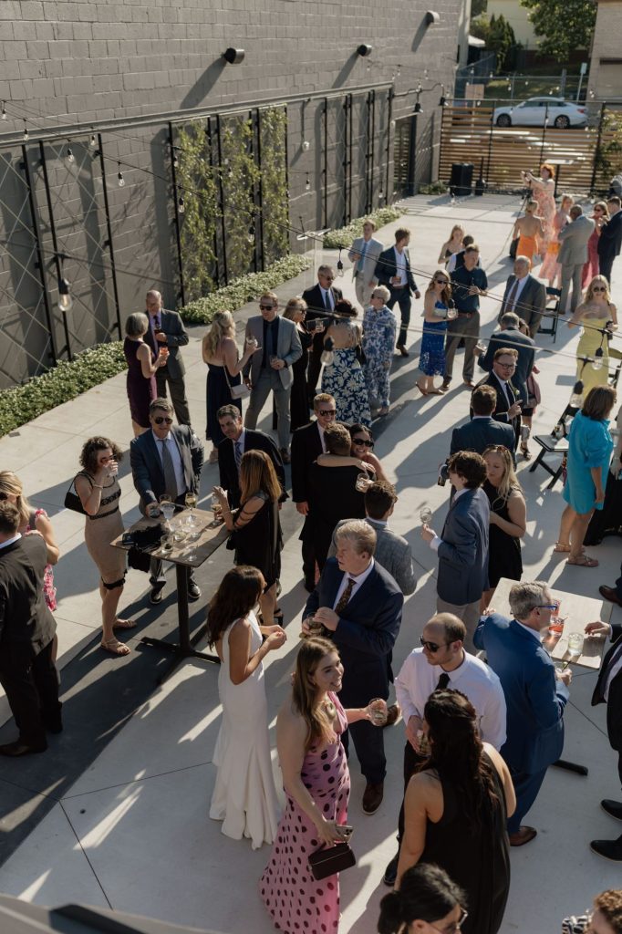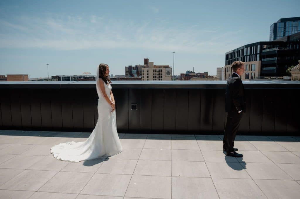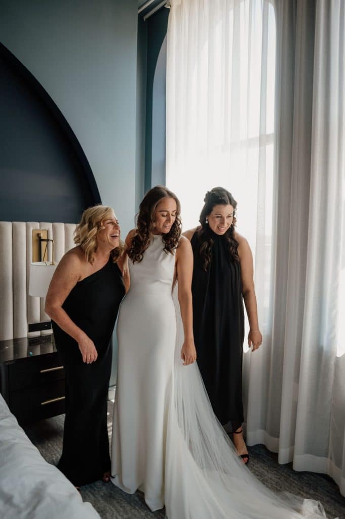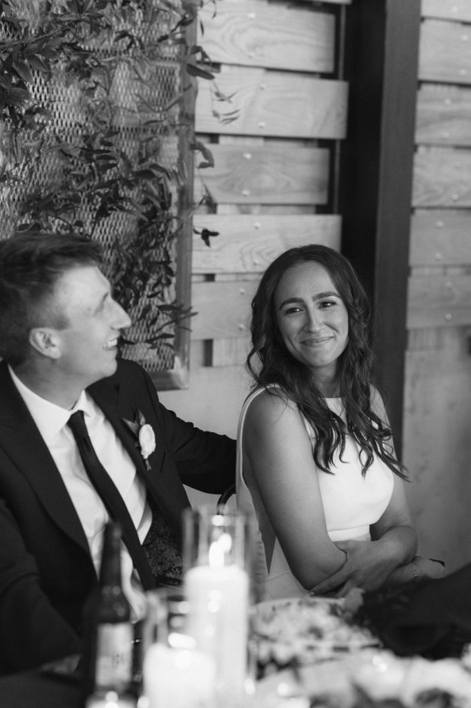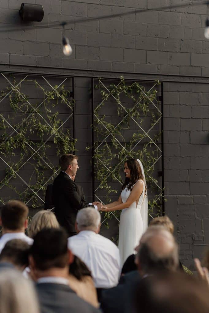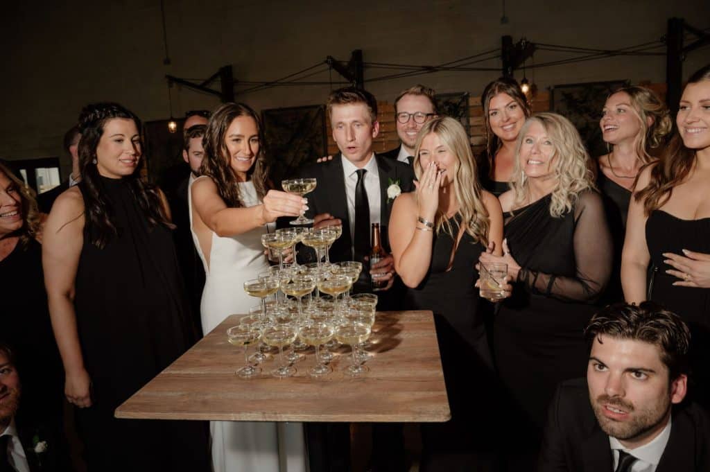 Lindsay and Sullivan planned their wedding with the idea of being modern and timeless. Their favorite parts incorporated disco ball and chandeliers hanging from the ceiling as well as greenery and candles along the head table.