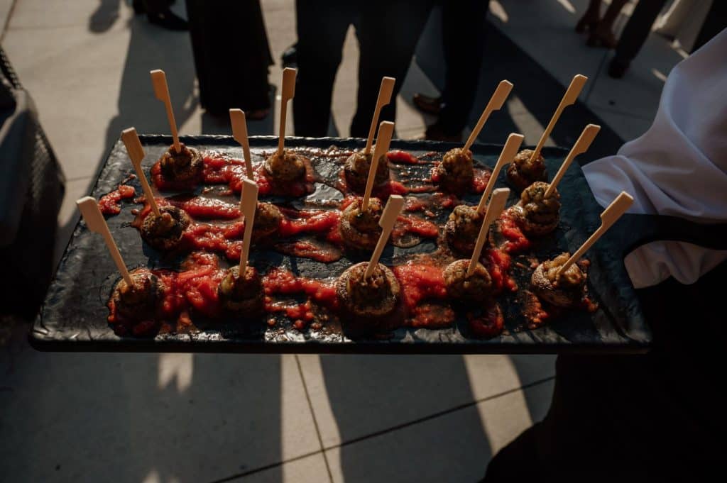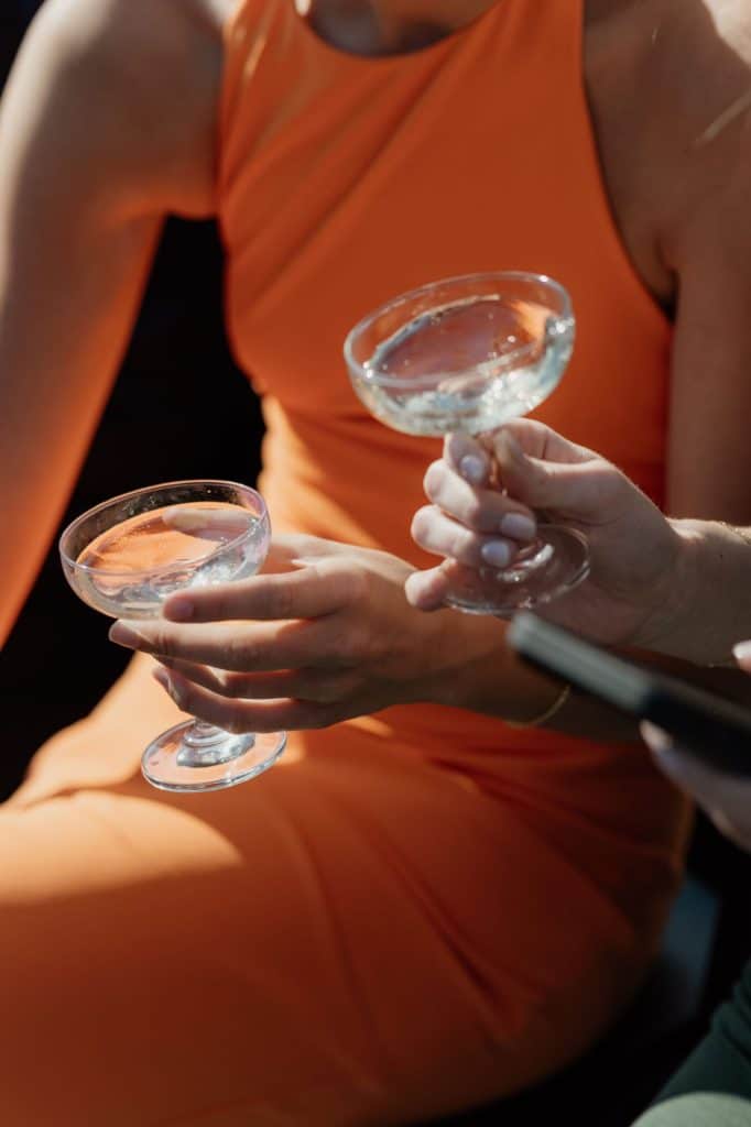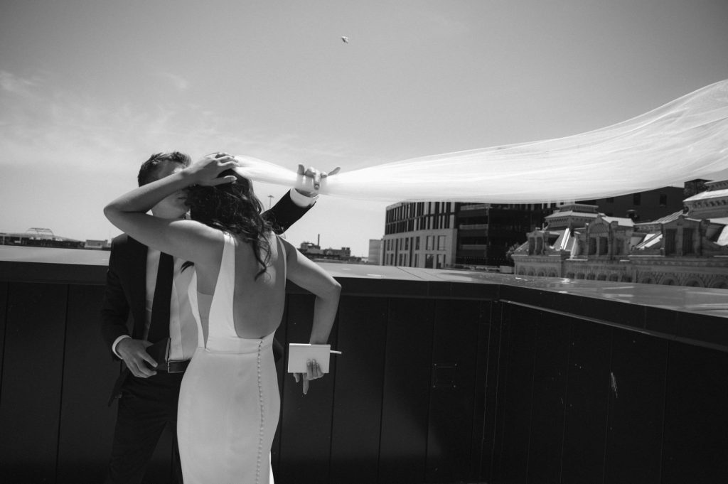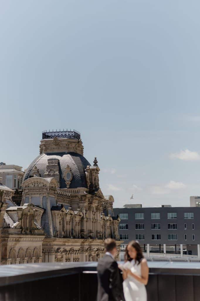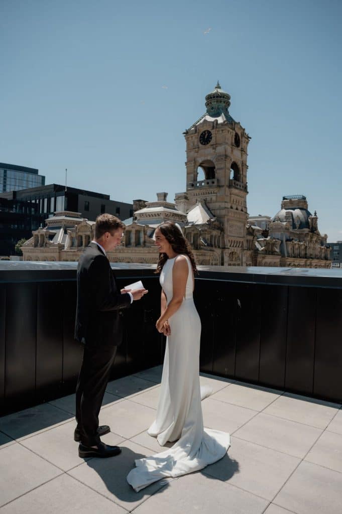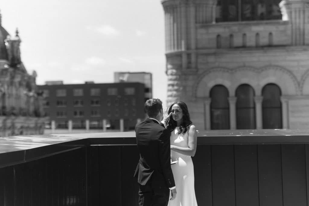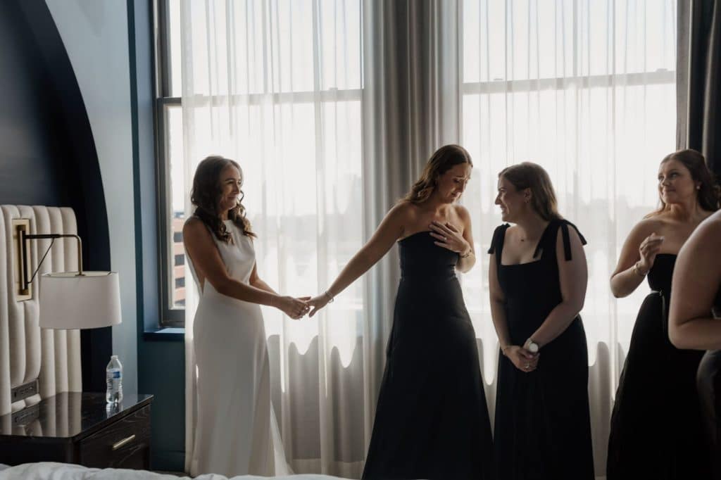 Lindsay and Sullivan planned their wedding with the idea of being modern and timeless. Their favorite parts incorporated disco ball and chandeliers hanging from the ceiling as well as greenery and candles along the head table.
