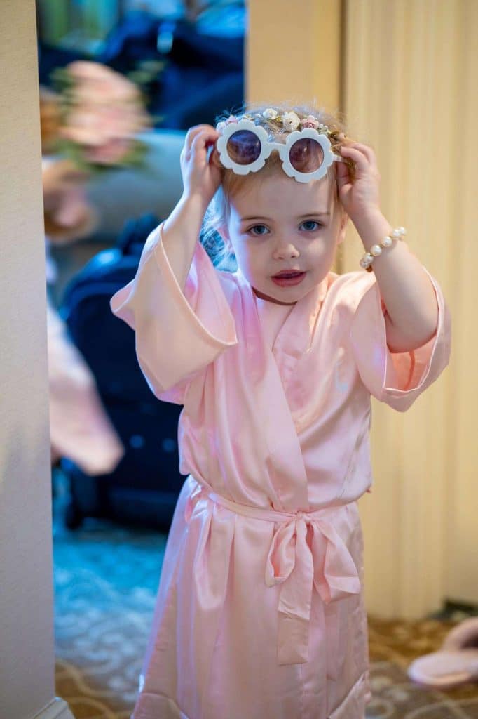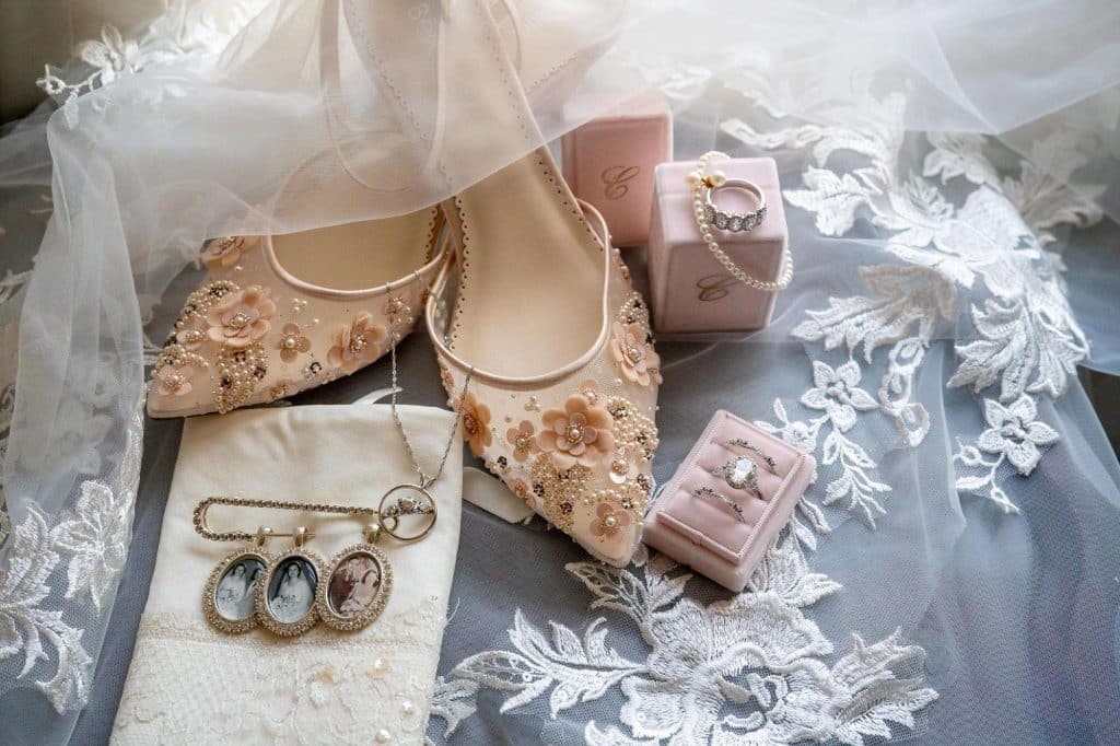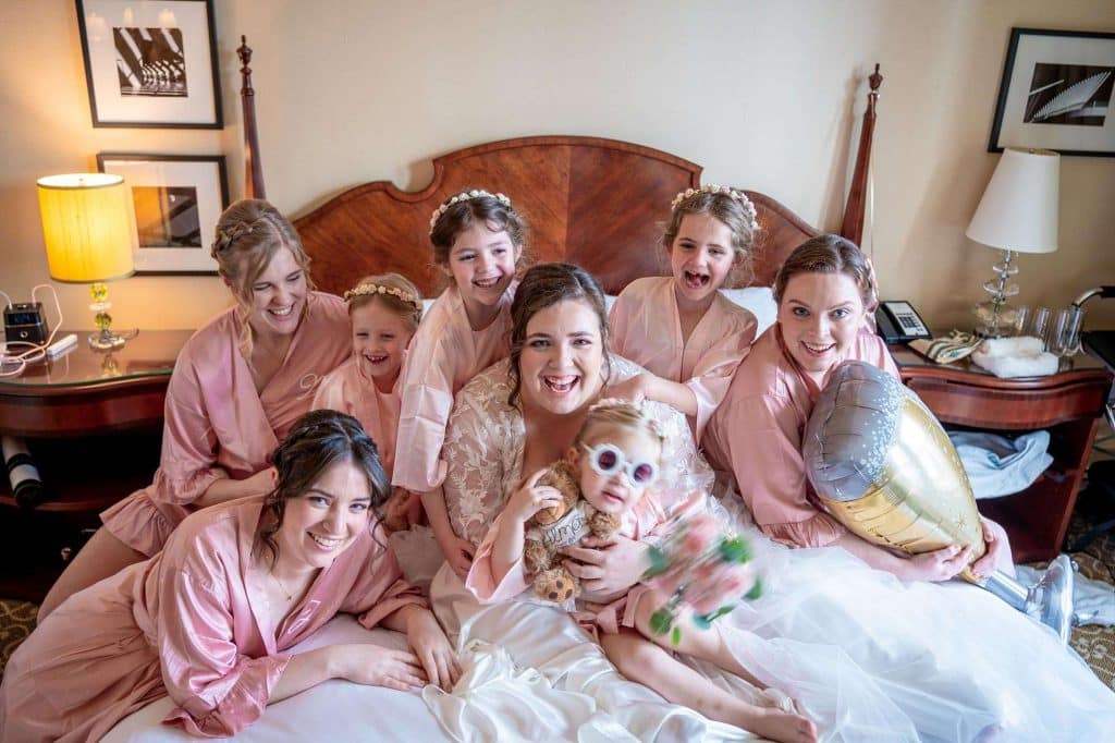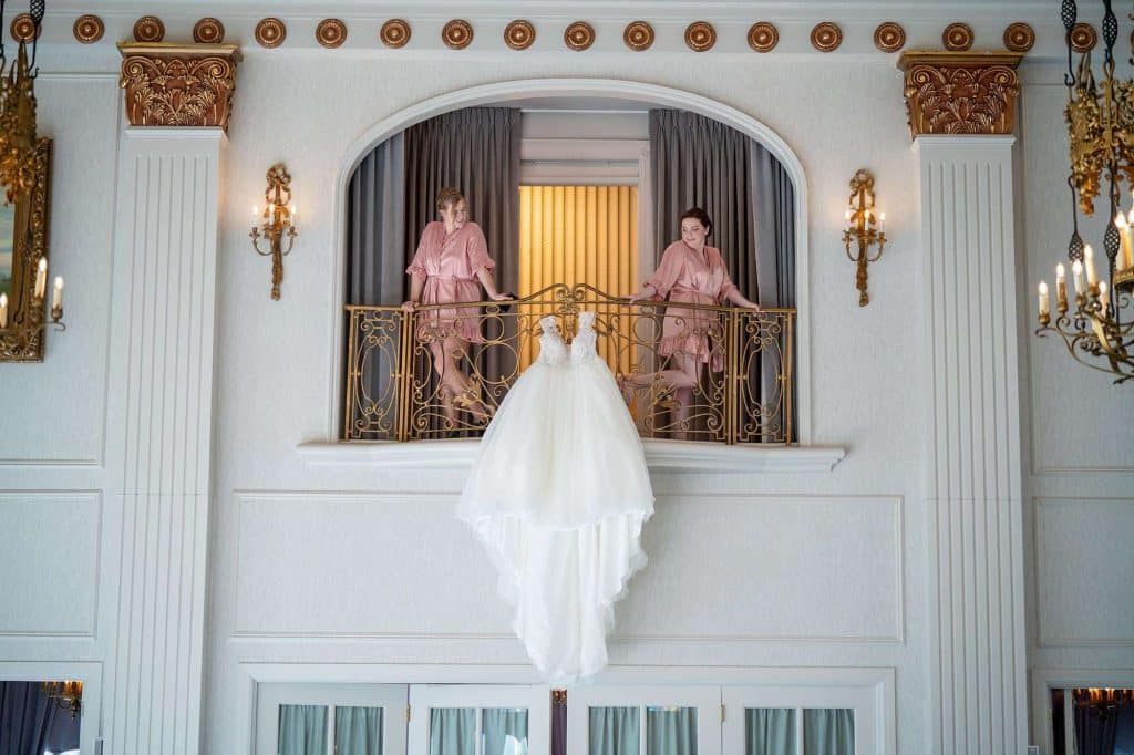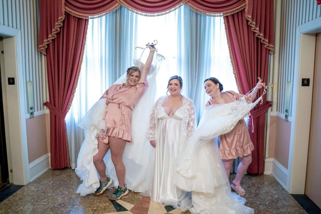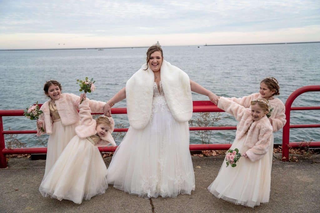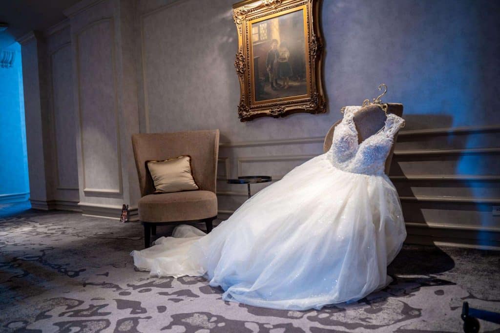 Shopping for wedding gowns, two were chosen. The ceremony dress was special as it reminded Caitlin of her grandmother’s dress and the reception dress provided the sparkle!