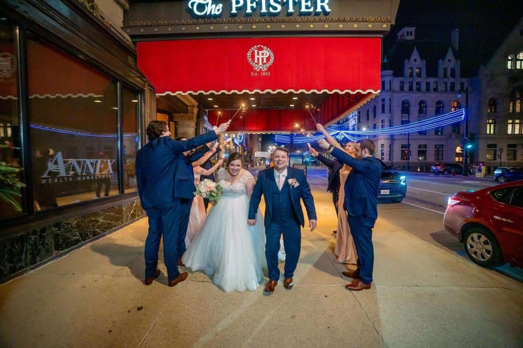 The wedding planning process was a whirlwind of excitement and decisions for the couple. From finding the perfect venue at The Pfister Hotel, to choosing the color scheme, every detail was carefully thought out. The bride’s love for blush, pink, and gold inspired an elegant and romantic theme that set the tone for their special day.
