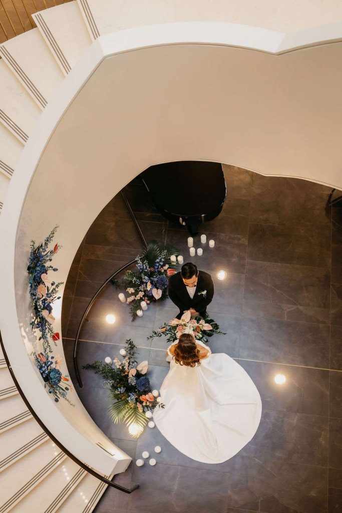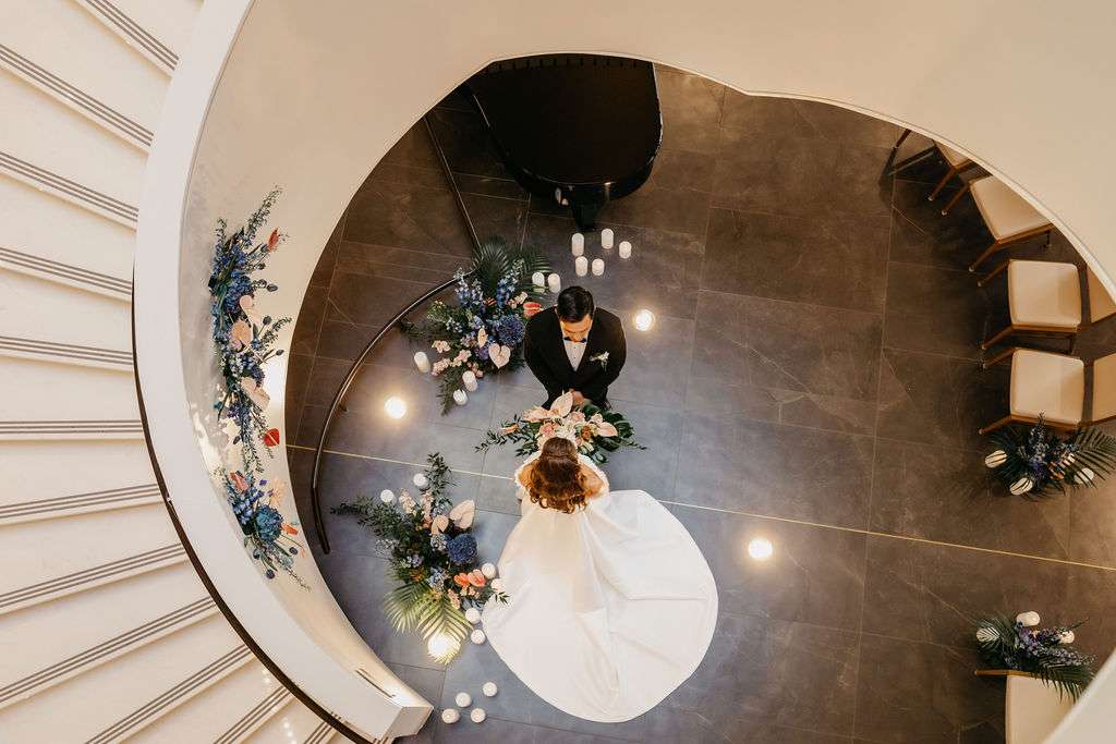 Welcome to a visual feast where elegance meets creativity! At the heart of Milwaukee lies the stunning Bradley Symphony Center, a venue that perfectly blends history and modernity. Recently, this architectural gem became the backdrop for an inspiring wedding styled shoot designed by Coffman Creative Events. This shoot showcased how sophisticated details can transform any space into a luxurious design moment. From sculptural statement pieces to layered textures in a palette of black, white, gold, greens, blues, and pinks—this shoot was nothing short of extraordinary.