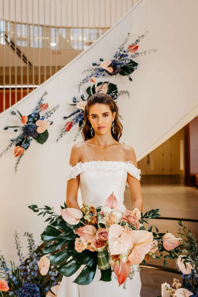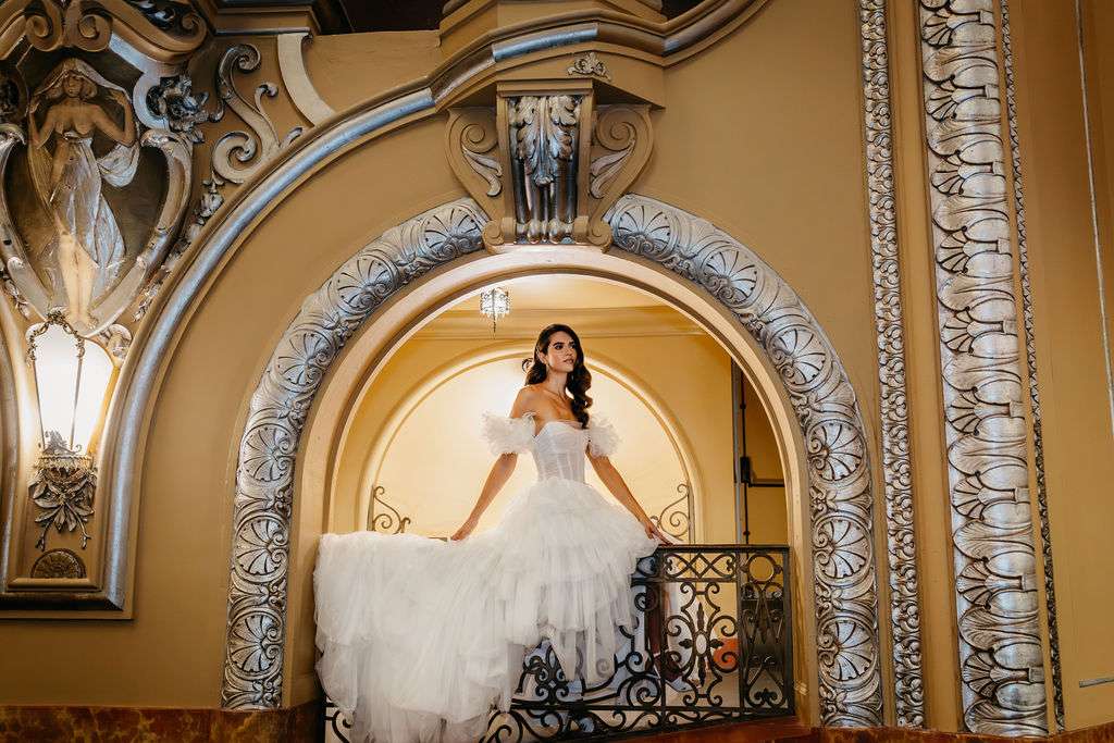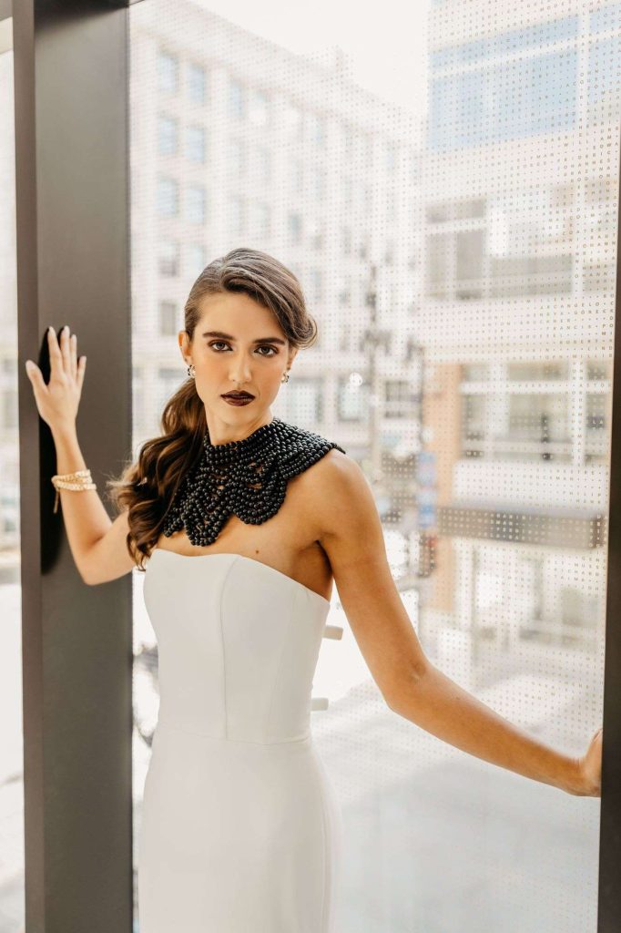 Hair and makeup play a pivotal part in bringing out the styling of each model, ensuring they feel confident and radiant. Joseph Gonzales with Wide Eyed Bride provided a multitude of different looks to accent each gown and scene. He styled bold jewelry choices and colors while also creating timeless looks. Each one as jaw dropping as the next.