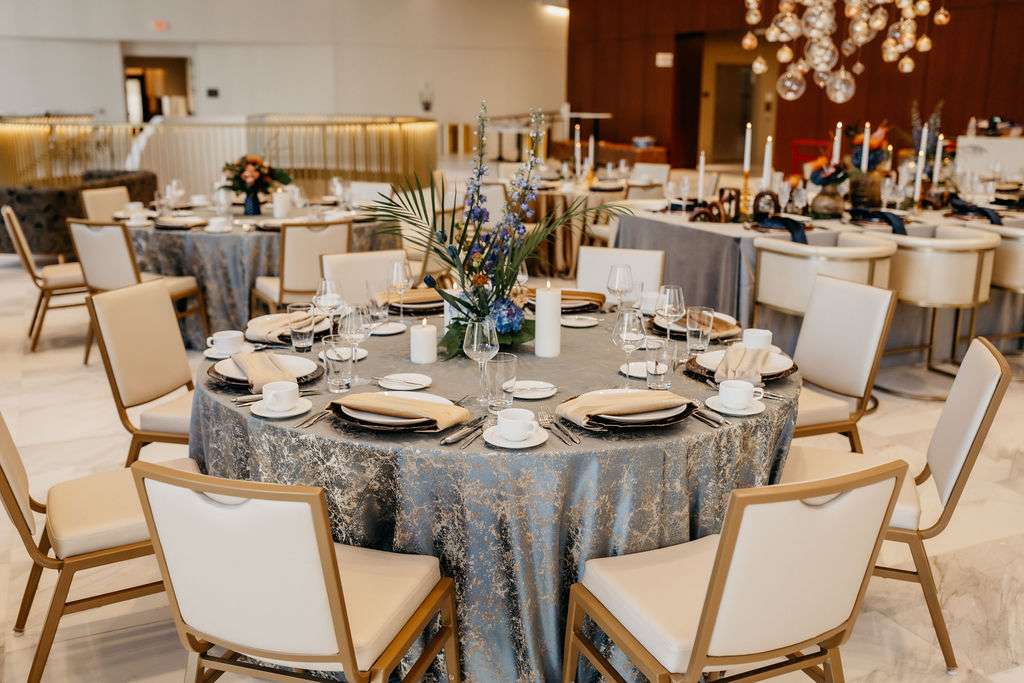 Lighting plays a crucial role in setting the mood, especially in spaces like Bradley Symphony Center. The right ambiance can elevate even the simplest setups, making tablescapes pop with the vibrant colors and textures of linens provided by Windy City Linen and chargers by Tablescapes.