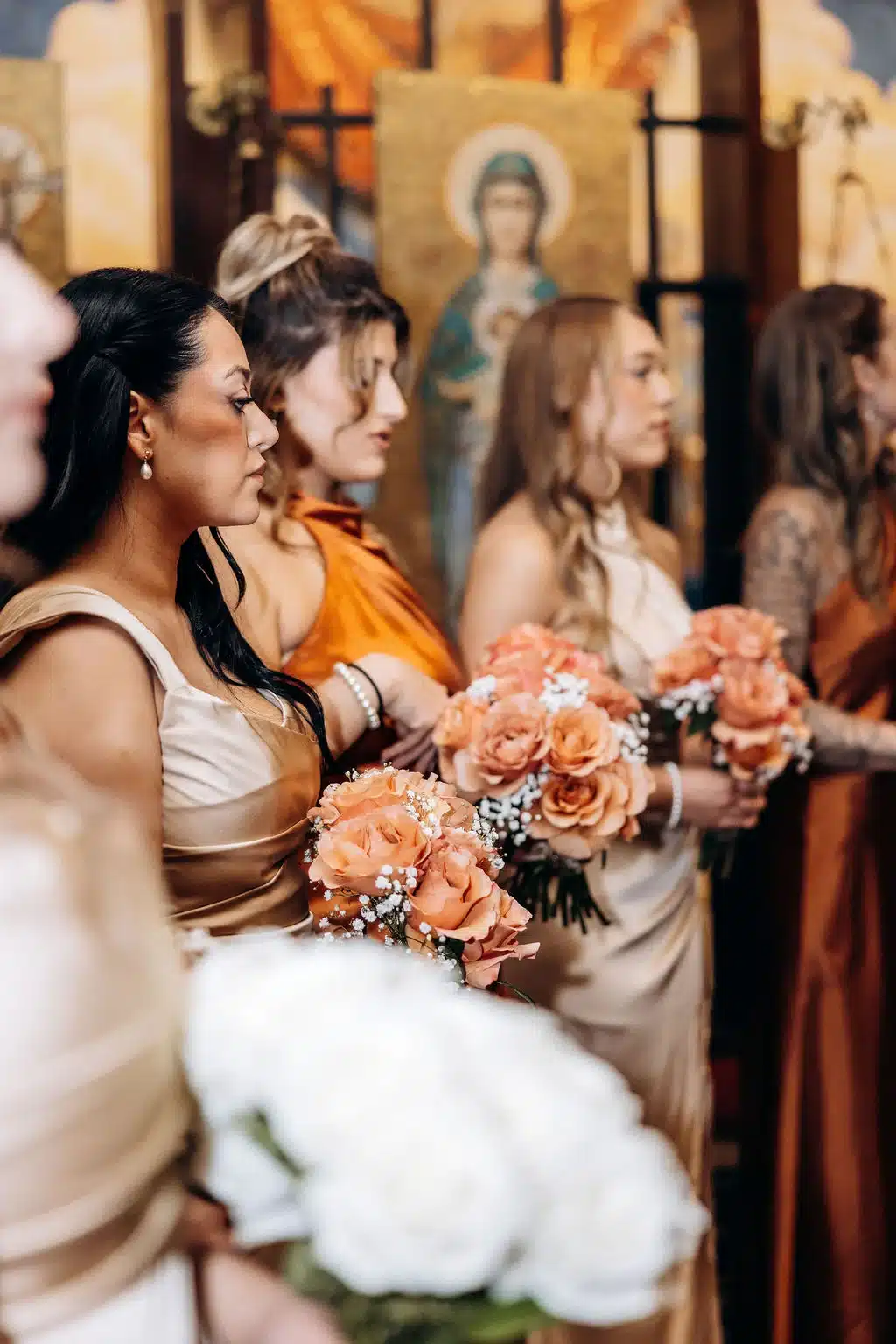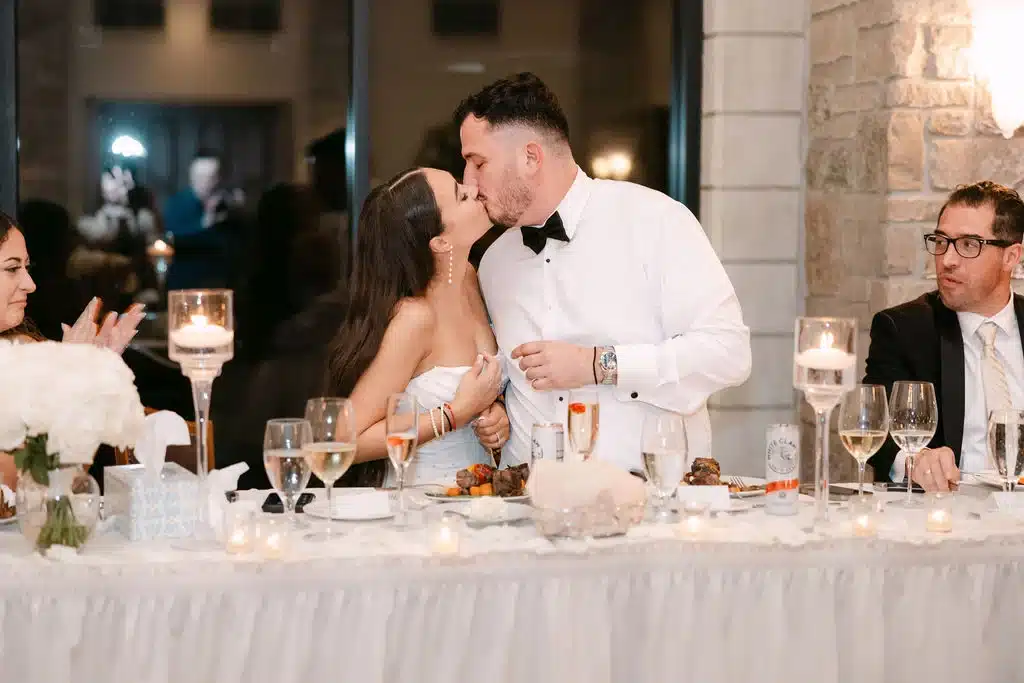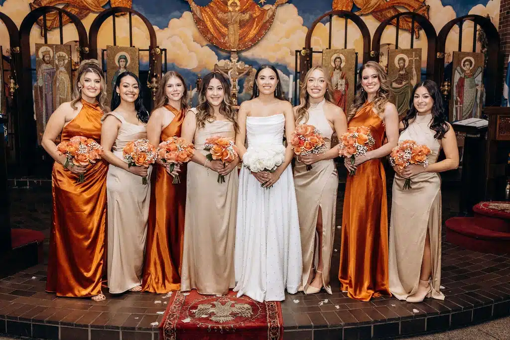 “Our wedding style was centered around timeless elegance with a warm, inviting atmosphere. While I can’t recall one specific moment where the inspiration for the champagne color came from, it’s a shade I’ve always associated with softness, luxury, and understated elegance. Knowing our wedding would take place in the fall, I wanted to compliment that palette with richer seasonal tones, which naturally led to incorporating copper accents to add warmth and depth.