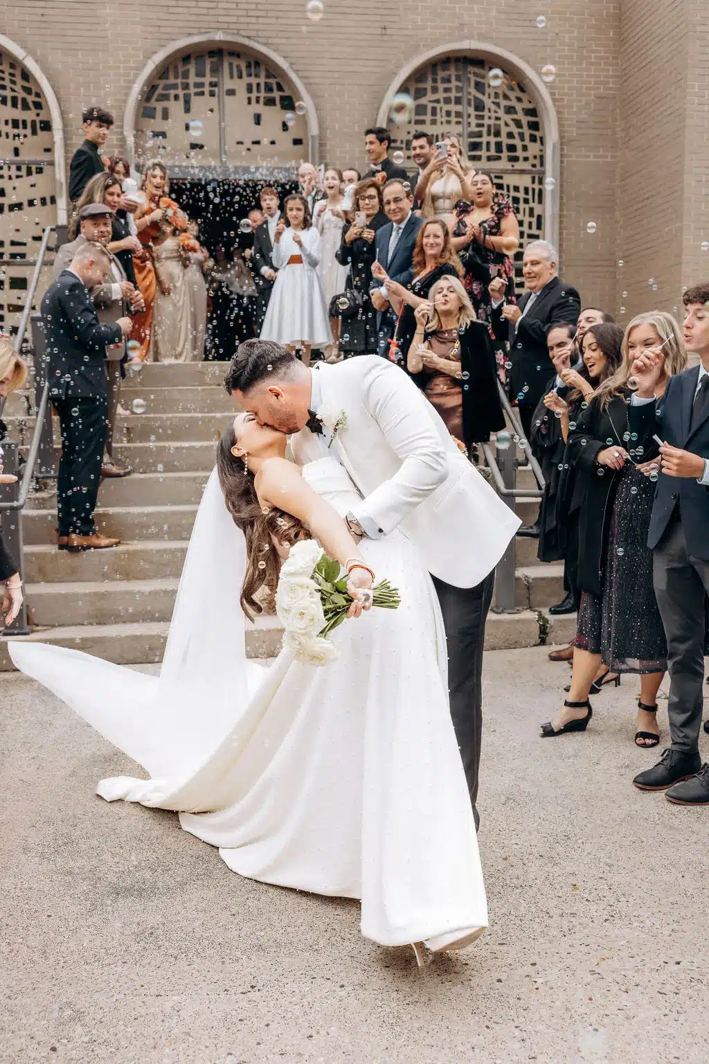 “A beautiful moment right after the ceremony, everyone went outside on the steps and blew bubbles at us as we came down. It was so incredible to see all of the love and bubbles in the photos!! It was everything I hoped for and more.”