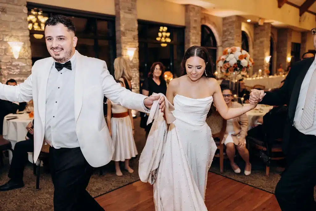 “The moment that stuck with me the most was looking up and seeing about 90% of our wedding on the dance floor. It was such a powerful, joyful moment that perfectly captured the energy of the day. My husband is Greek, and watching everyone jump in to do the Greek dances—friends and family who aren’t Greek, had never done them before, or didn’t even know the steps was incredibly special. Everyone was laughing, trying their best, and joining the dance circle without hesitation. The entire wedding was filled with so much love, and seeing both sides of our friends and family come together, embrace each other’s traditions, and celebrate as one is something I’ll never forget.”