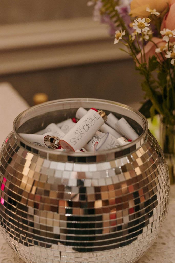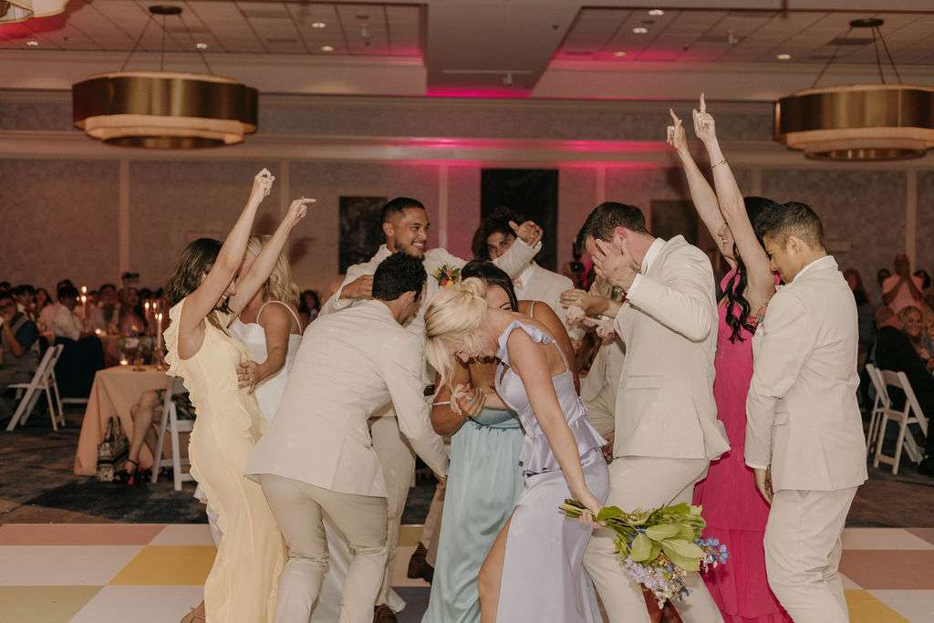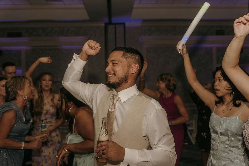 My best friend and bridesmaid was in charge of dance floor props, and she delivered! She brought Fatheads of our cats, foam glowsticks, light-up tambourines, and money guns. The best part? Her sister designed custom $100 bills featuring us and our cats. The money was everywhere! With all the dance floor accessories, everyone was excited to jump in and dance. At one point, Izaac and I looked around and almost all 180 of our guest were on the dance floor dancing and jumping around.”