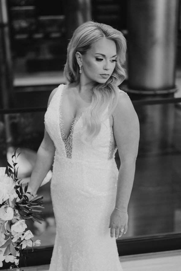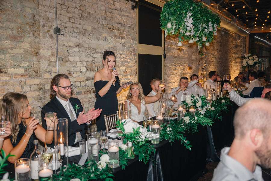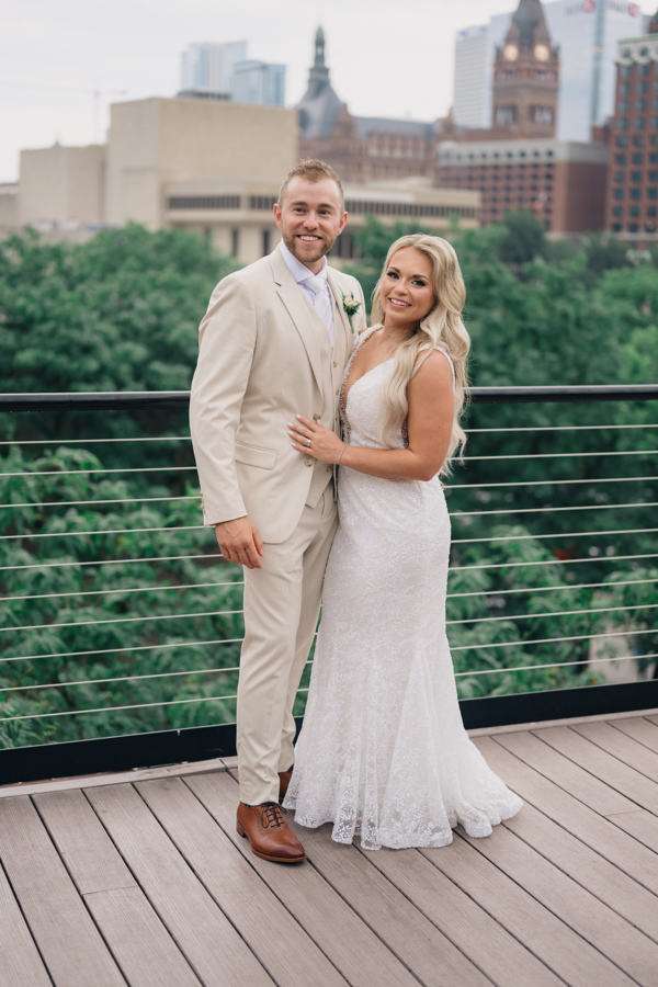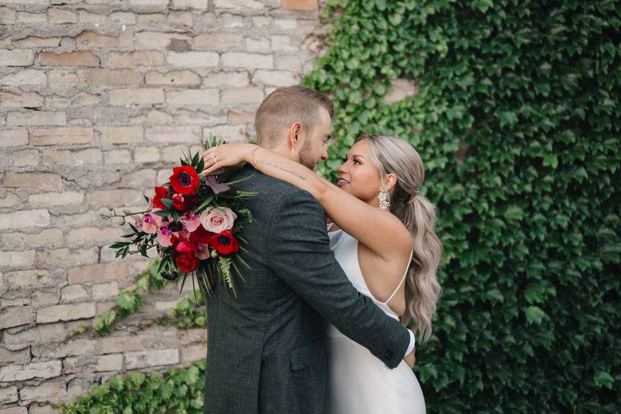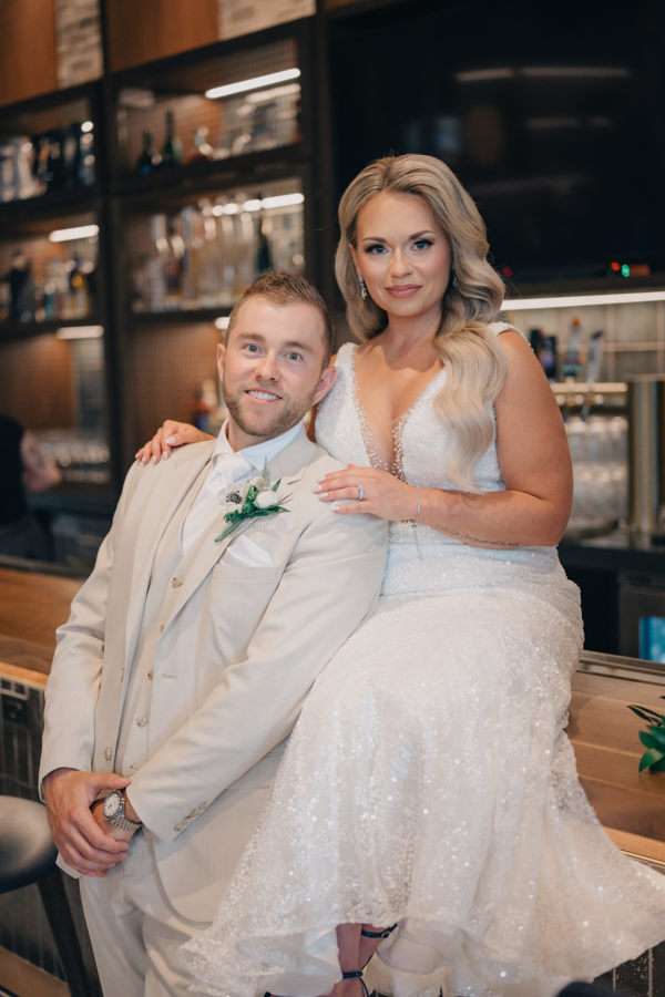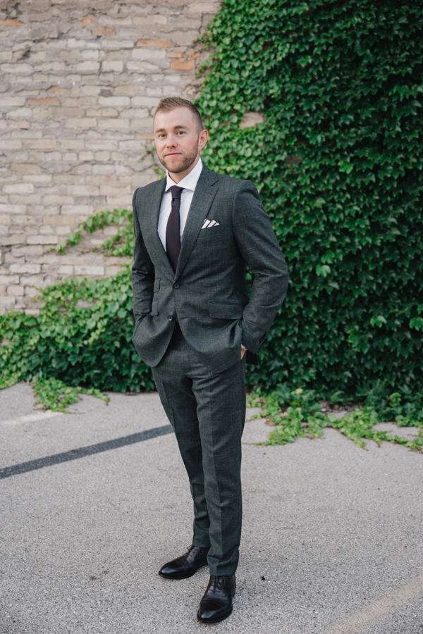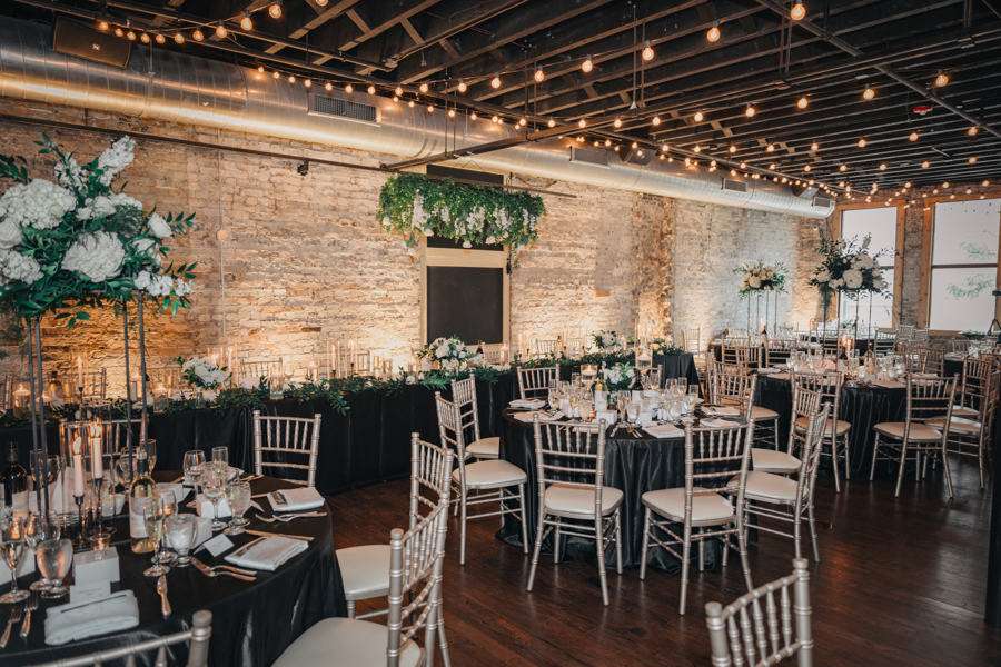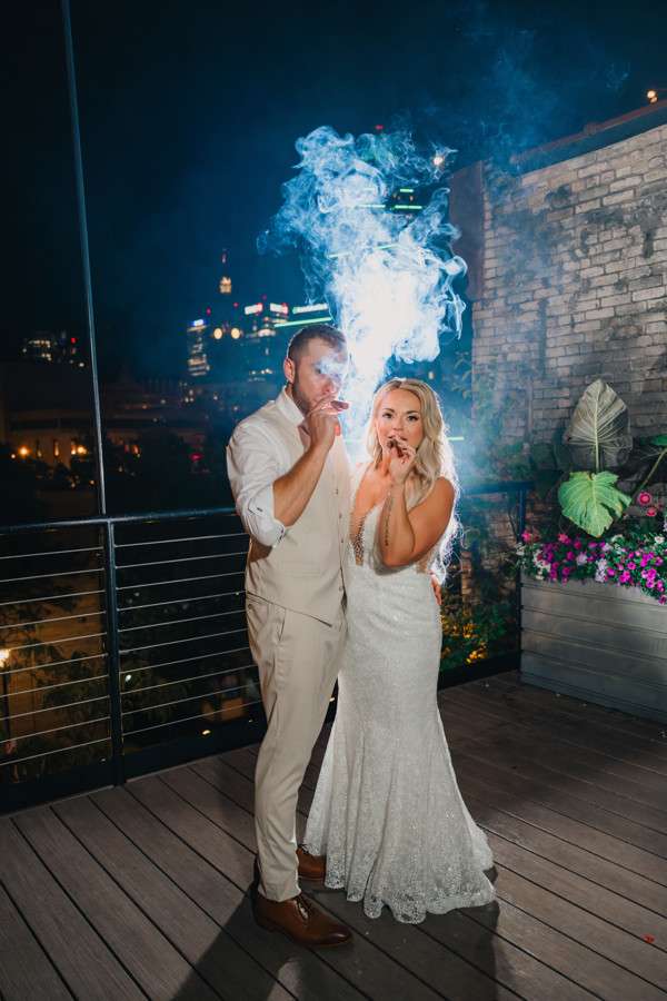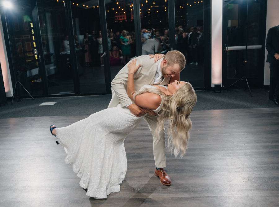 “We chose our Saturday venue Vista MKE for many reasons. One of which, being a former event planner Alex had not attended an event at this gorgeous venue! That was important to Alex as there’s so many amazing venues in the city, but she wanted to feel like it was a unique experience. The venue offered an outdoor patio which was important for the couple’s vision of an outdoor dance floor and Cigar Bar. Sadly, it rained a majority of the evening but guests were able to step outside at times to enjoy the city skyline. The venue offered two completely different looks as well – one floor the classic historic Cream City Brick while the other floor a more modern look. This ironically fit the apartment styles Dan and Alex had while living in Milwaukee and they felt it was a perfect nod to their story together. The venue was in great proximity to hotels and activities for guests while they were in town as well which was important to us.”