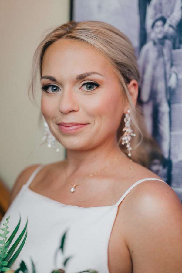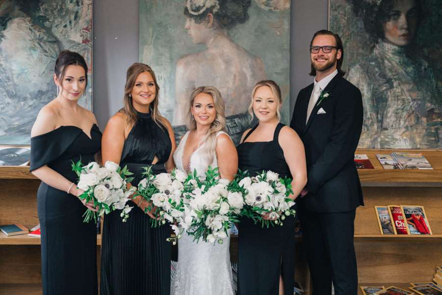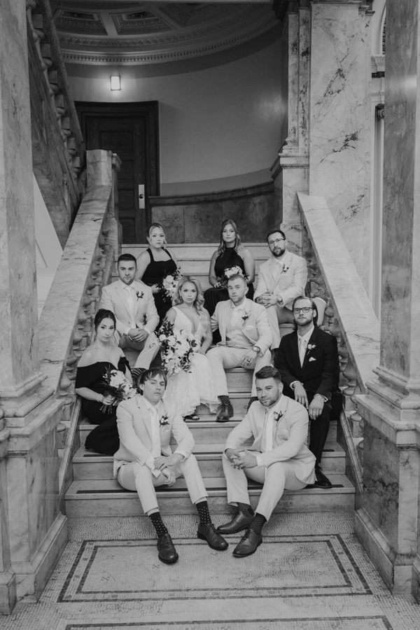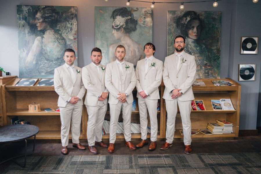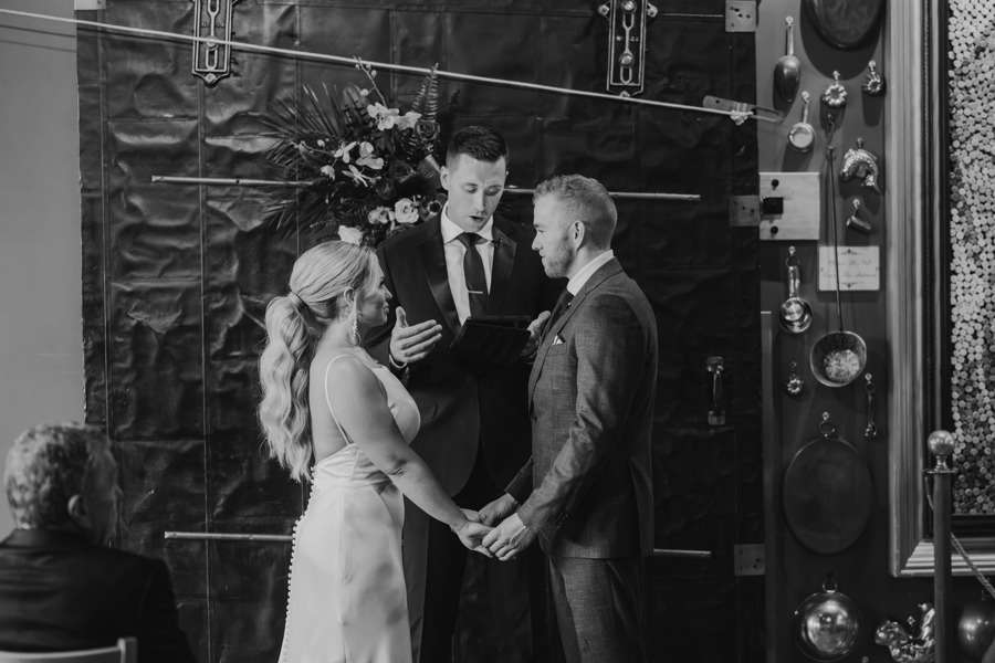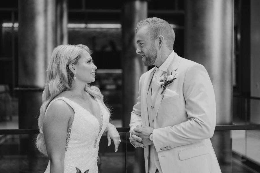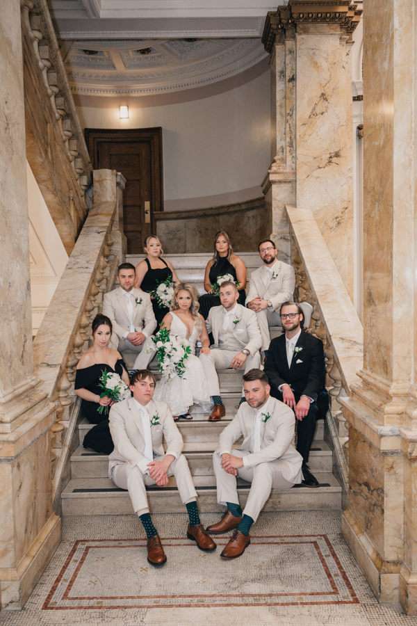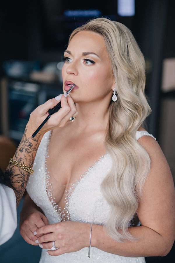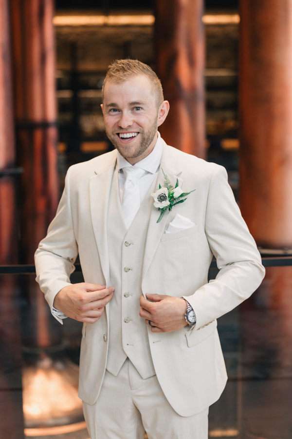 “We chose our Saturday venue Vista MKE for many reasons. One of which, being a former event planner Alex had not attended an event at this gorgeous venue! That was important to Alex as there’s so many amazing venues in the city, but she wanted to feel like it was a unique experience. The venue offered an outdoor patio which was important for the couple’s vision of an outdoor dance floor and Cigar Bar. Sadly, it rained a majority of the evening but guests were able to step outside at times to enjoy the city skyline. The venue offered two completely different looks as well – one floor the classic historic Cream City Brick while the other floor a more modern look. This ironically fit the apartment styles Dan and Alex had while living in Milwaukee and they felt it was a perfect nod to their story together. The venue was in great proximity to hotels and activities for guests while they were in town as well which was important to us.”