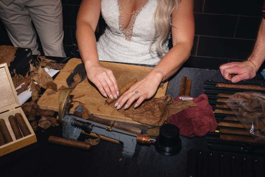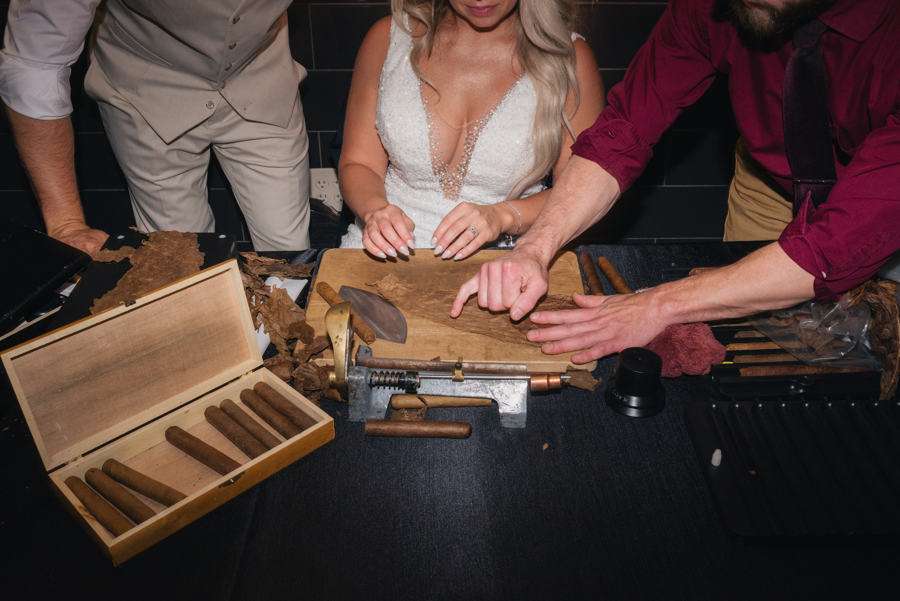 “Our reception was unique in every way we possibly could. Being a former events industry professional I wanted to plan a wedding unlike one I had ever attended. Dan and I also wanted to be sure we found ways to make each and every guest feel welcomed and special because we chose to have our private ceremony. Our favorite elements: every guest got a handwritten note as their escort card, we had a Silent Disco instead of a standard dance floor which was a HUGE hit with our guests, we had Roast Coffee company provide a live action coffee shop for guests to add an upgraded element to an otherwise expected wedding element. We also brought in ACA Entertainment to roll cigars for our guests as a unique favor & experience.”