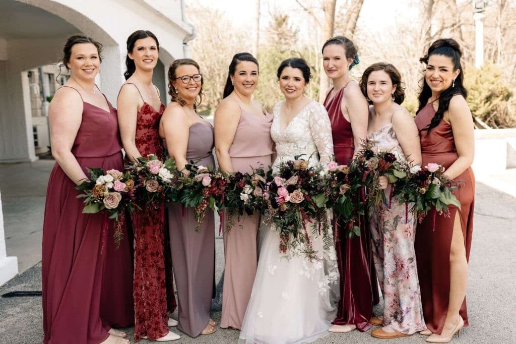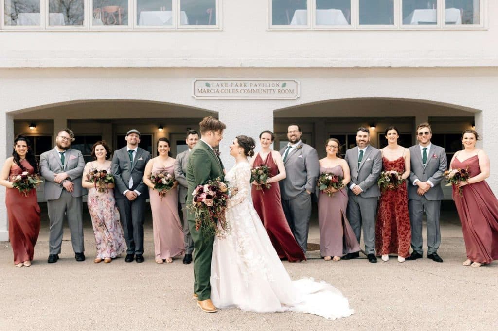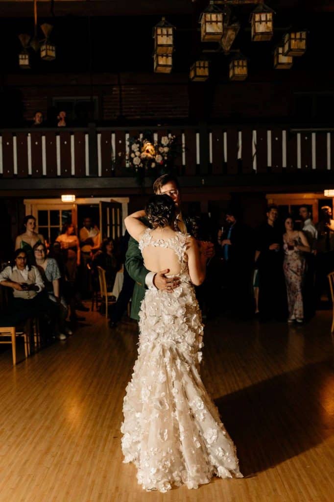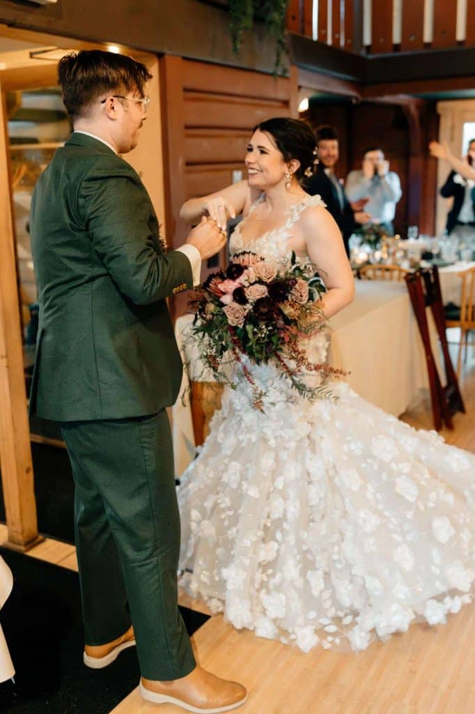 Planning their wedding, Molly wanted flowers to be the star of the day and David wanted to incorporate his love of Lord of the Rings. The couple decided on a theme of “romantic tavern” giving a woodsy feeling. The colors were greens, pinks and mauve tones. Choosing the venue of Hubbard Park Lodge created the perfect feel and backdrop for them. Molly describes it as a “hidden gem”. Hubbard Park allowed them to really decorate and transform the space into their perfect day for both the ceremony and reception.