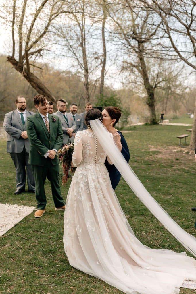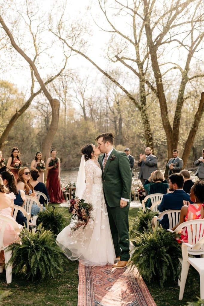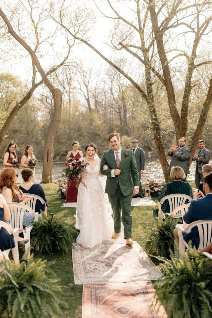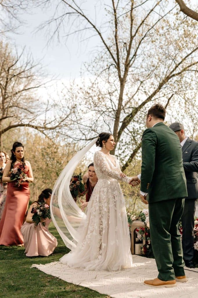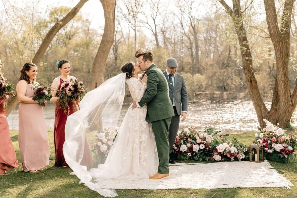 The ceremony was set right beside the Milwaukee River on the grounds of Hubbard Park Lodge. Leading up the aisle were beautiful thrifted rugs by the bride and the alter was a floral meadow created using silk flowers. Molly will never forget hearing David’s vows as he was truly speaking from his heart and sharing his love. The wind also worked in their favor as Molly’s veil flowed in the breeze creating some amazing pictures.