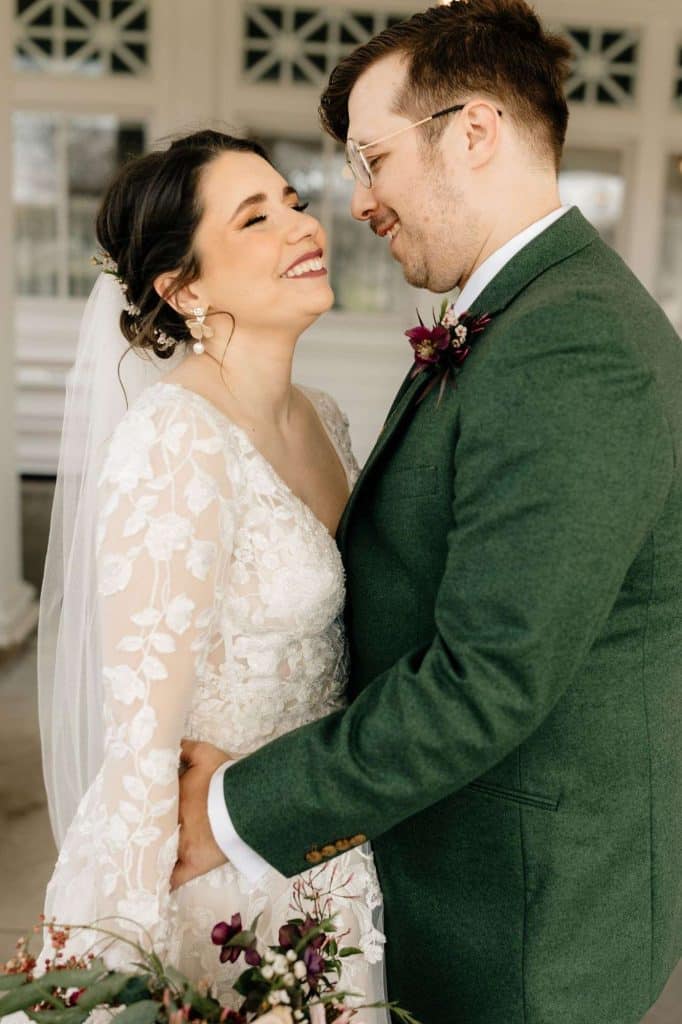 The bride donned two gowns for their special day. The first from David’s Bridal, actually purchased before the engagement with the encouragement of the groom’s mom. There was a sale going on in the store and Molly had admired the gown long before. The second came from Miss Ruby Bridal Boutique. Not ever planning to purchase a second dress, this one spoke to her as soon as she saw it on the hanger. Taking her mom to see it made it official and working with the team at Miss Ruby’s was even more of a dream making her feel so special throughout the process. David got his suit from NL Suits.