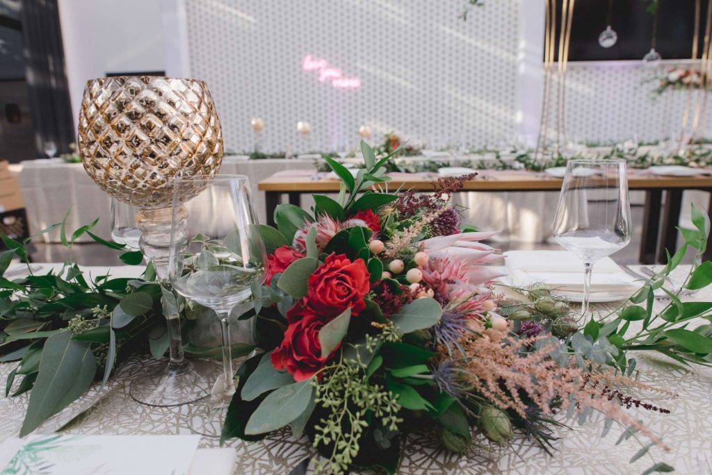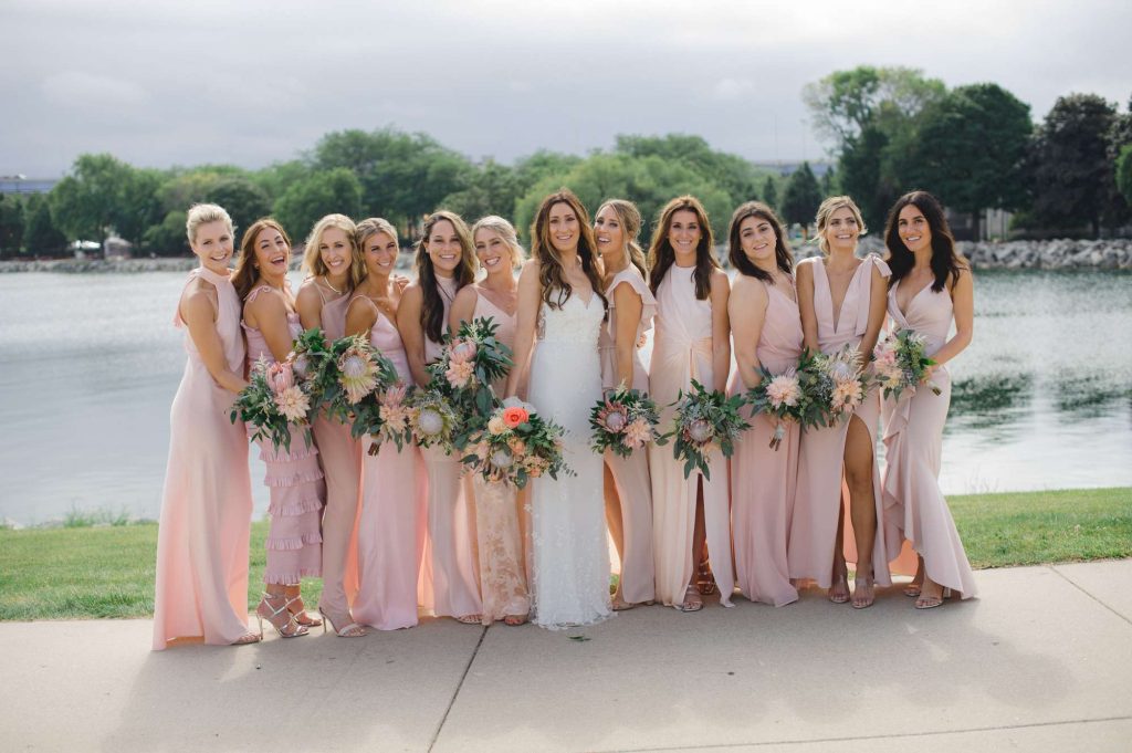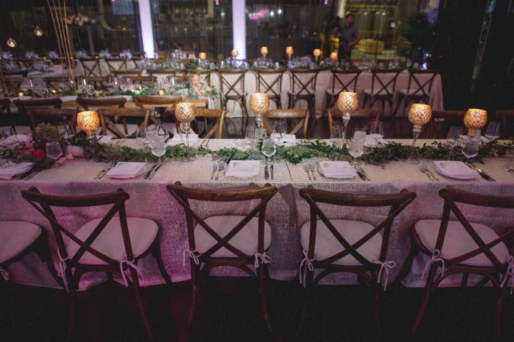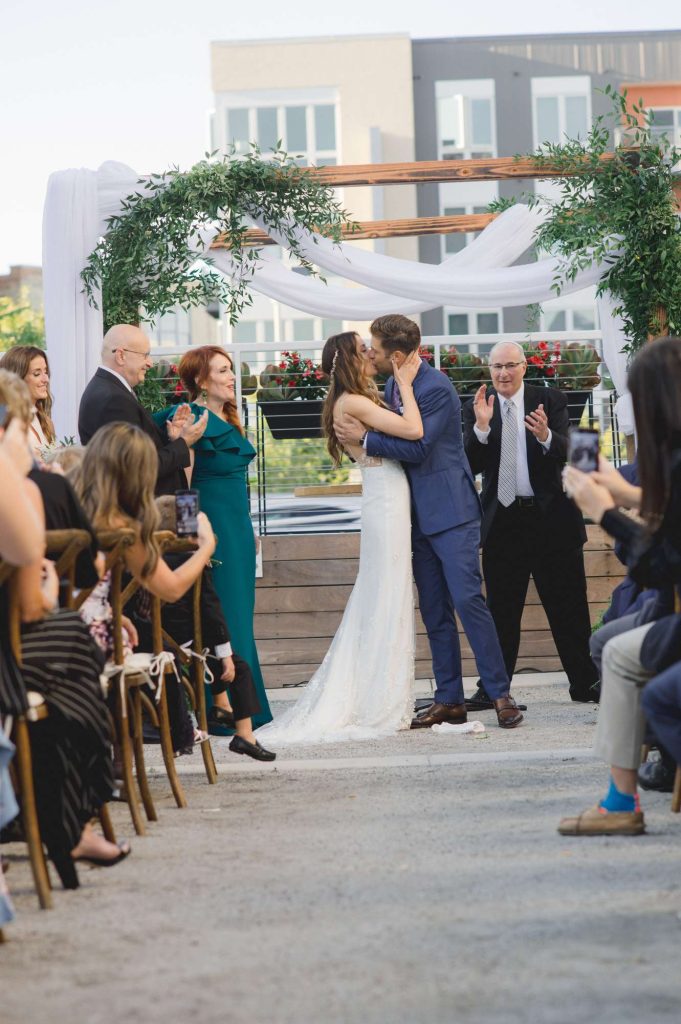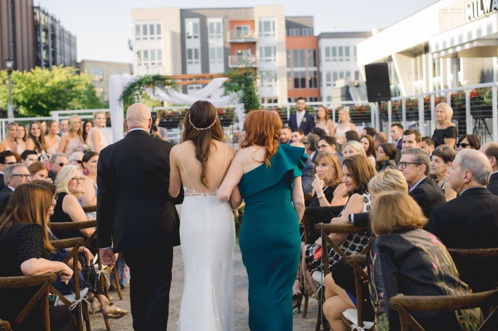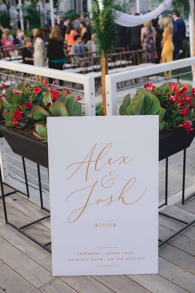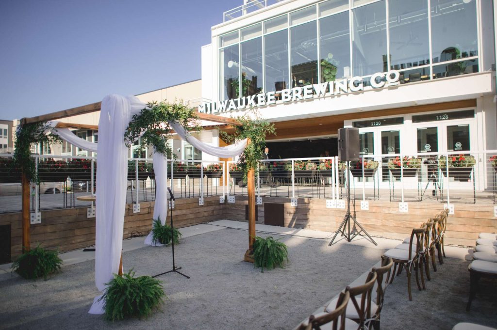 For the theme of their wedding, Alex and Josh wanted to create a bohemian vibe juxtaposed against a modern, urban venue. The ceremony was held outside in the Milwaukee Brewing Company beer garden with cocktail hour on the Glass & Griddle rooftop. Food and bartending were all handled on site by F Street Hospitality.