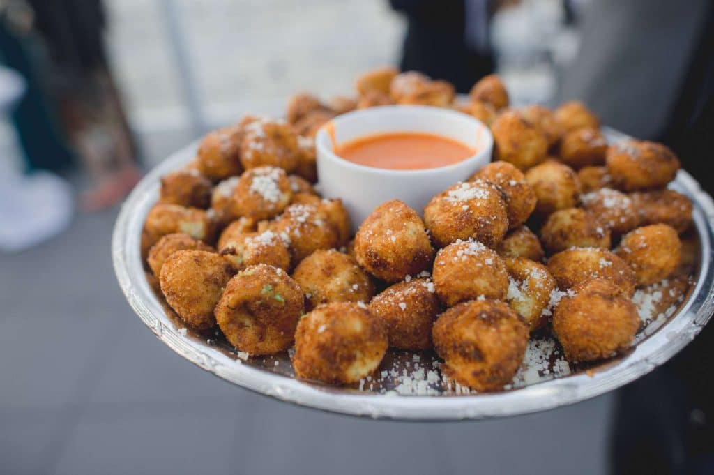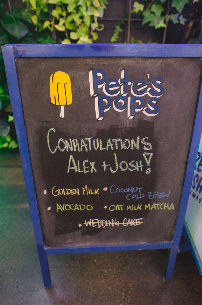 “There were amazing cocktails and appetizers, plus the perfect weather at sunset.” Appetizers included tacos, crab cakes, meatballs, falafel, and poke from Aloha Poke. Dinner began with salads of either cauliflower or kale caesar, followed by entrees of salmon, chicken, or steak. For dessert, Josh and Alex continued the local Milwaukee love with Pete’s Pops and Purple Door ice cream cookie sandwiches.
