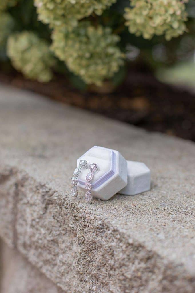 Nate disguised the proposal as a belated birthday celebration for Ali. “I always thought I would know when he was going to pop the question, but lo and behold, he managed to completely surprise me!” The two were staying at the Saint Kate Arts Hotel in downtown Milwaukee. While at the hotel’s champagne bar, Nate hired a violinist to play beside their table.