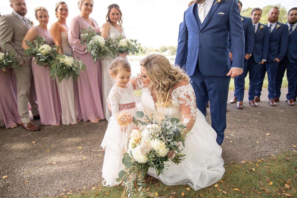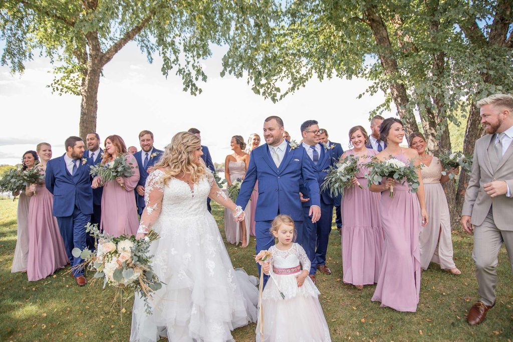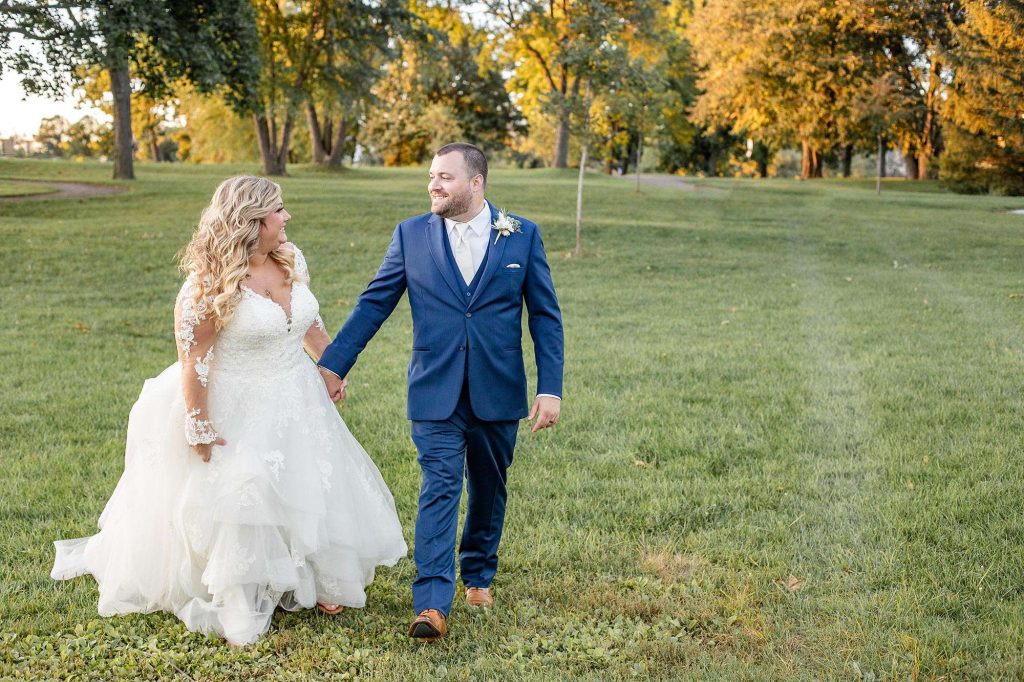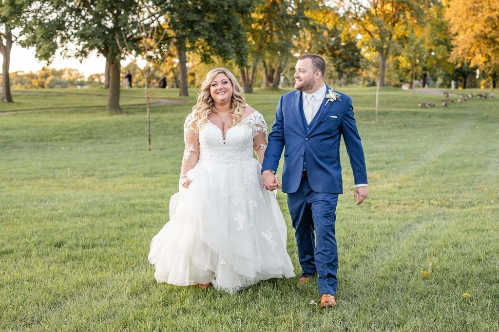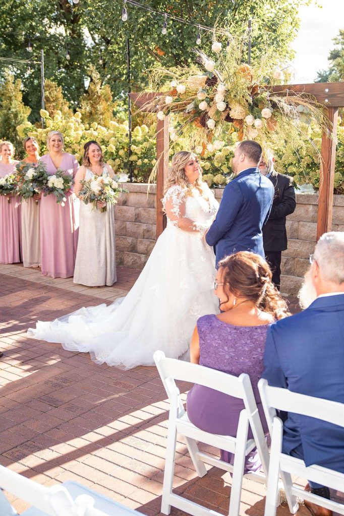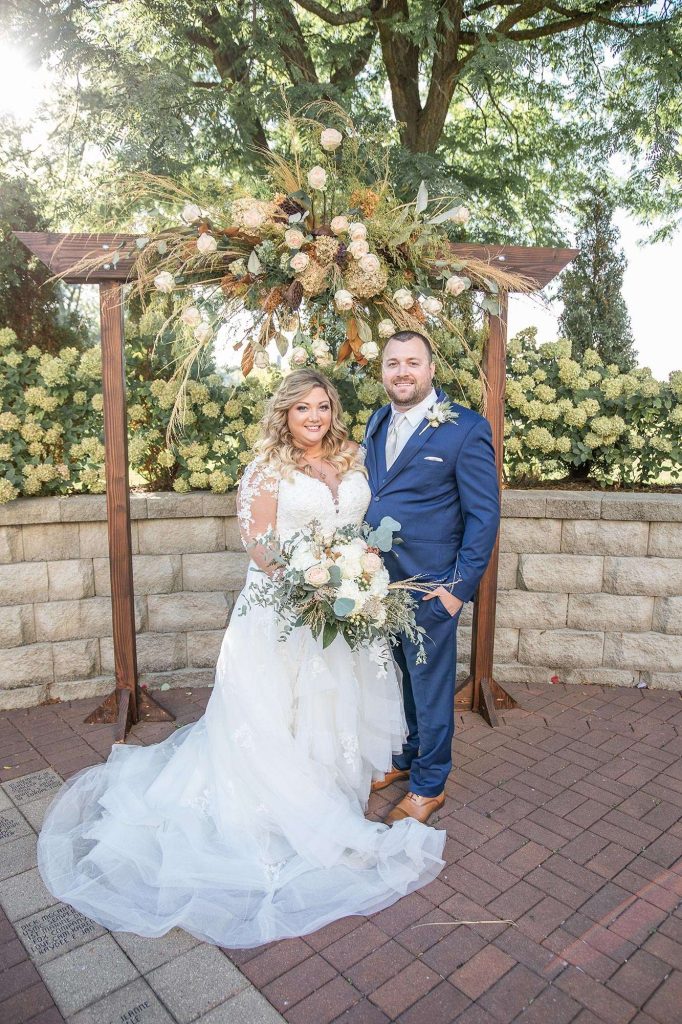 COVID concerns aside, Nate and Ali planned a rustic yet elegant wedding with colors of navy, mauve, and cream. Ali found her gorgeous gown at Bon Bon Belle in Burlington. In an ode to both the place where they met and their mutual hometown, the rehearsal dinner was held at The Bottle Shop in Lake Geneva, while both the wedding ceremony and reception took place at Veterans Terrace in Burlington.