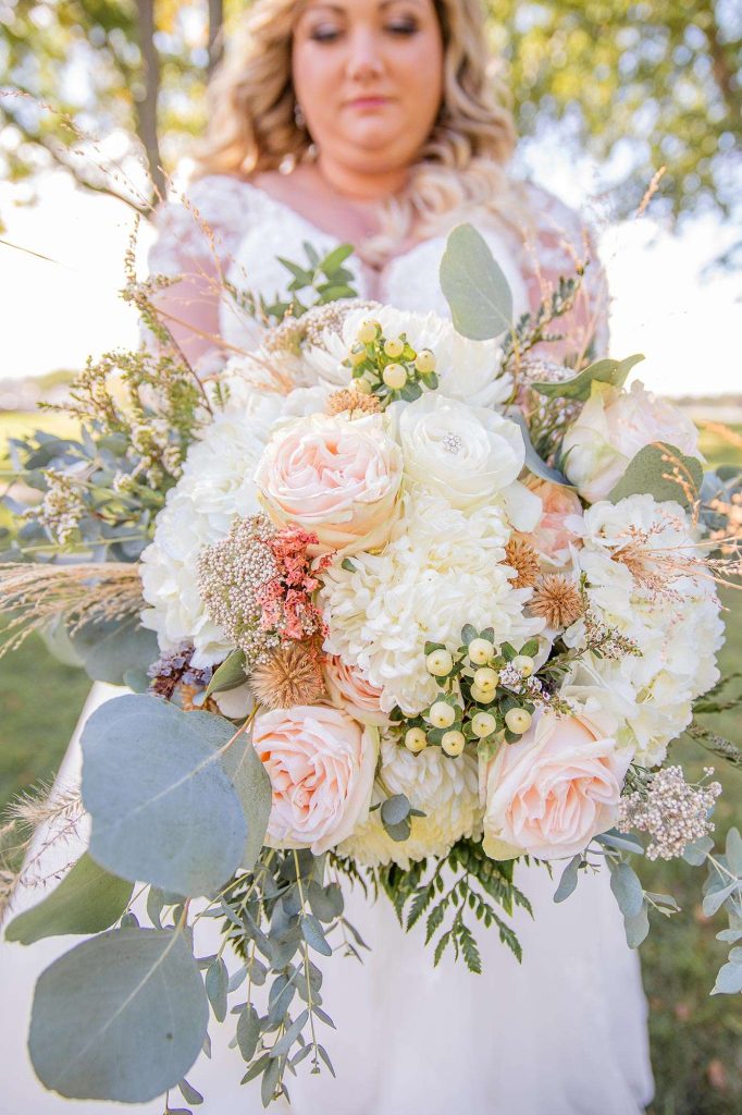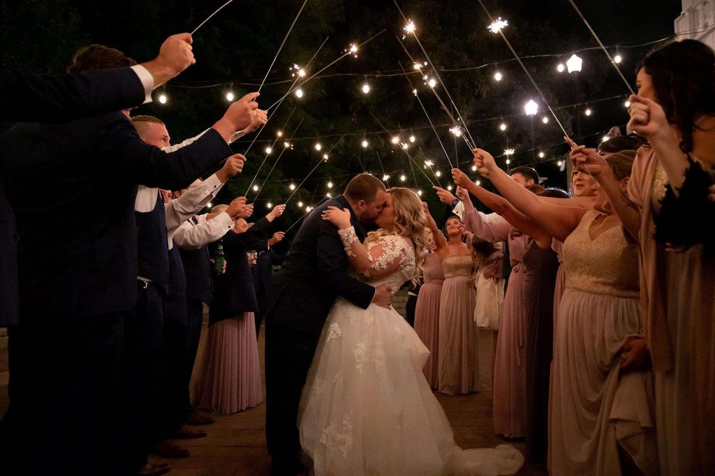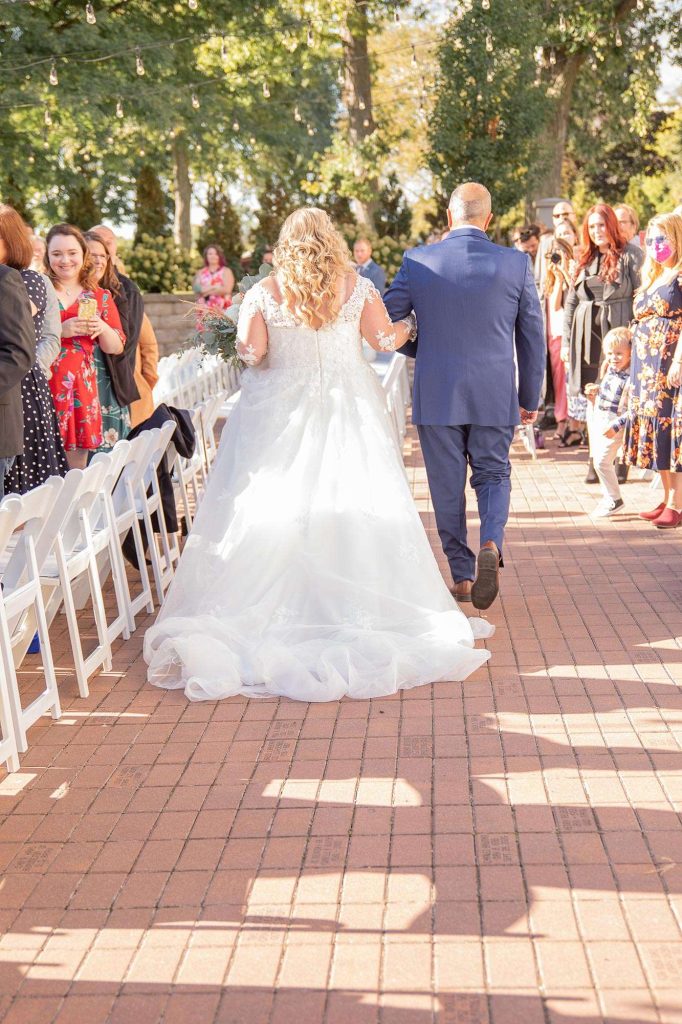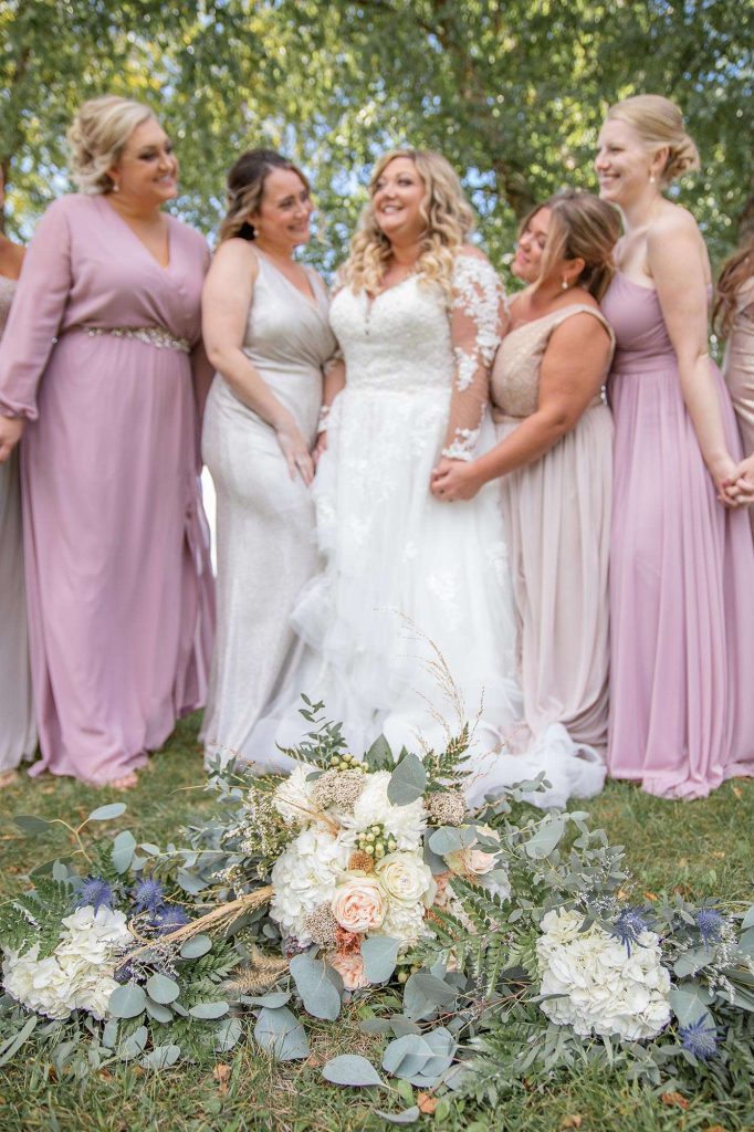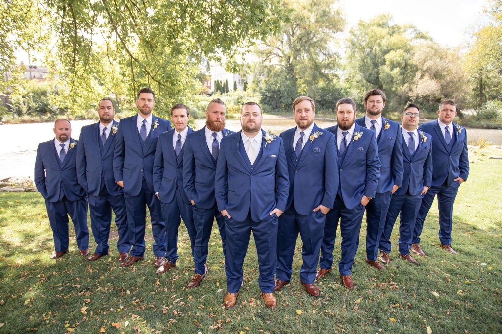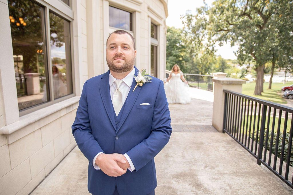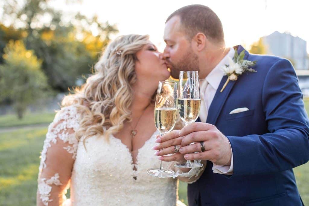 COVID concerns aside, Nate and Ali planned a rustic yet elegant wedding with colors of navy, mauve, and cream. Ali found her gorgeous gown at Bon Bon Belle in Burlington. In an ode to both the place where they met and their mutual hometown, the rehearsal dinner was held at The Bottle Shop in Lake Geneva, while both the wedding ceremony and reception took place at Veterans Terrace in Burlington.