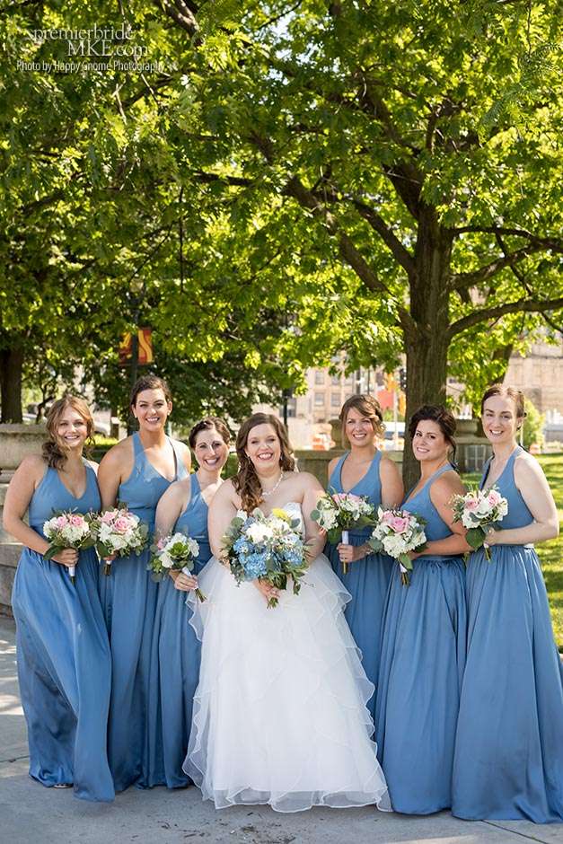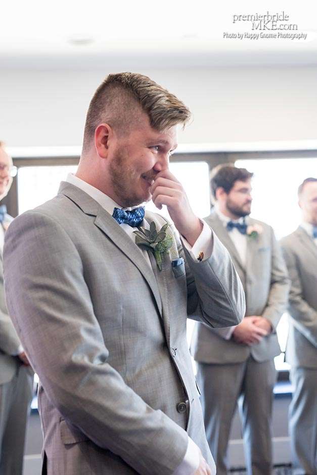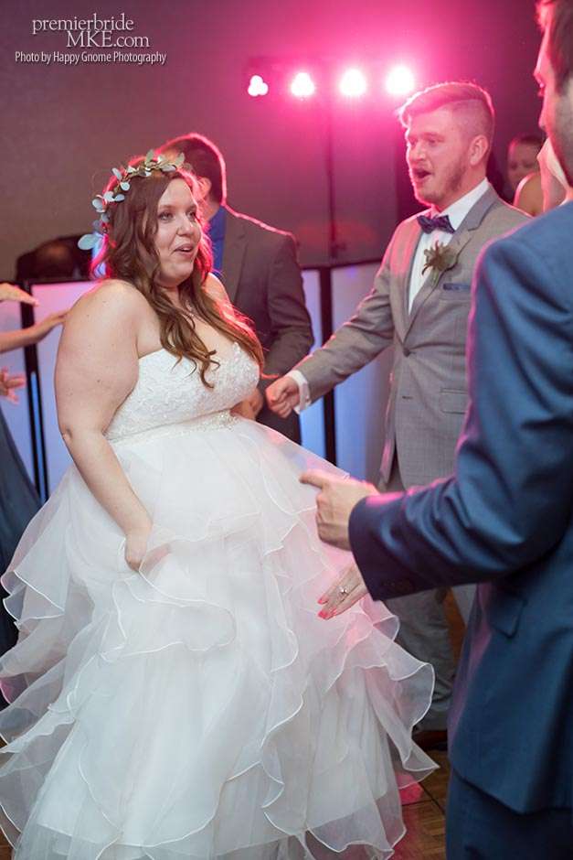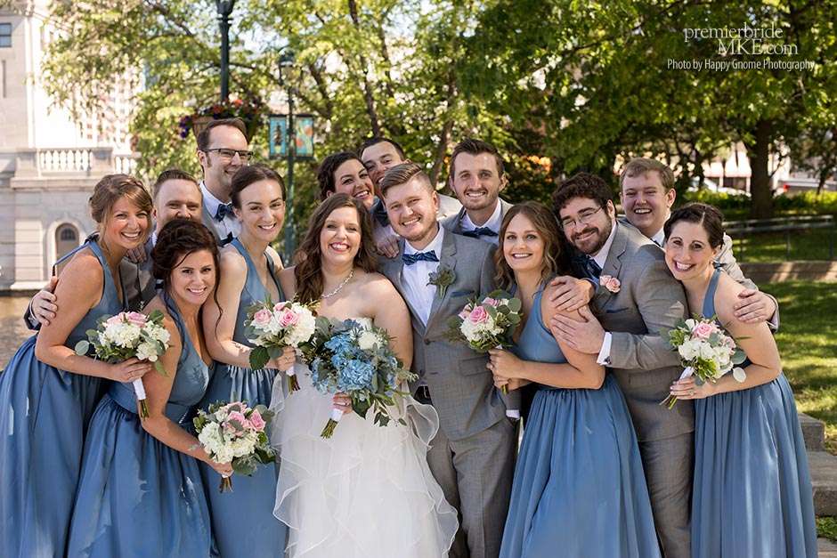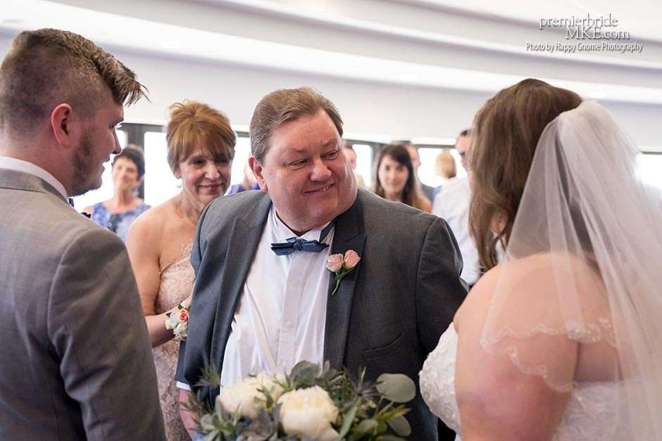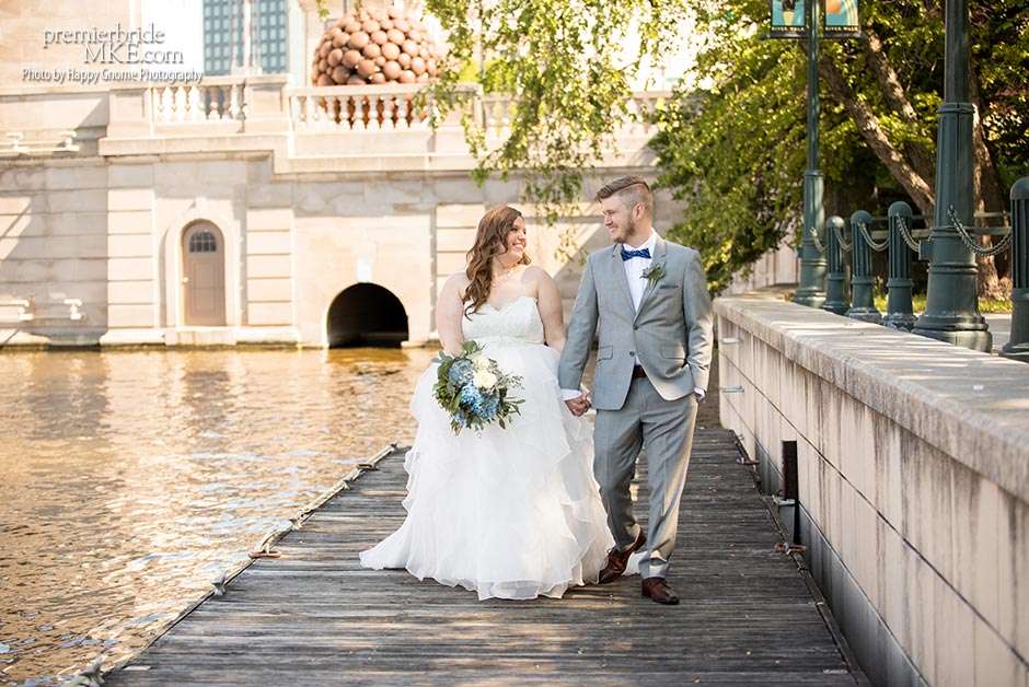 The location allowed Jordan and Amanda to take all of their photos right in downtown Milwaukee, too. “There was beautiful and iconic Milwaukee scenery all around us, so we didn’t have to rent transportation to take photos. Everything was within walking distance. The time saved meant we got to enjoy our entire cocktail hour! It was really important to us that we got to participate in our full wedding day, along with all of our guests.”