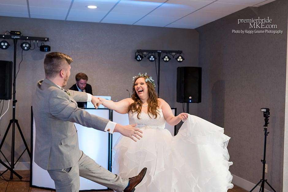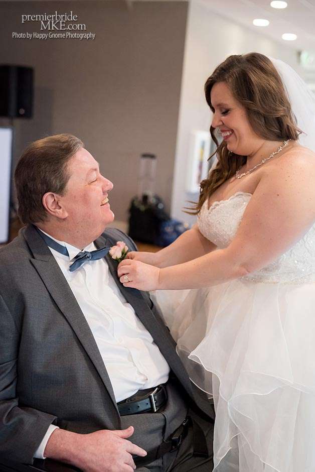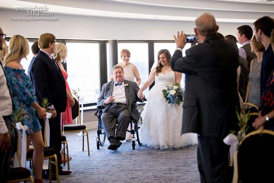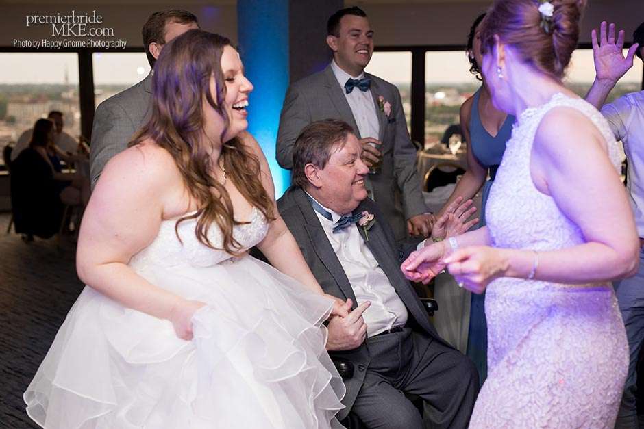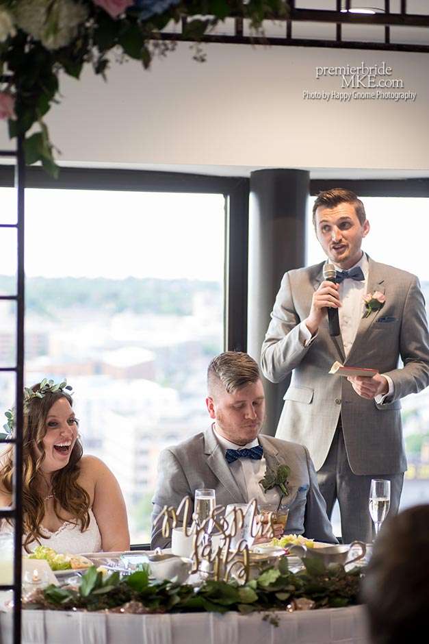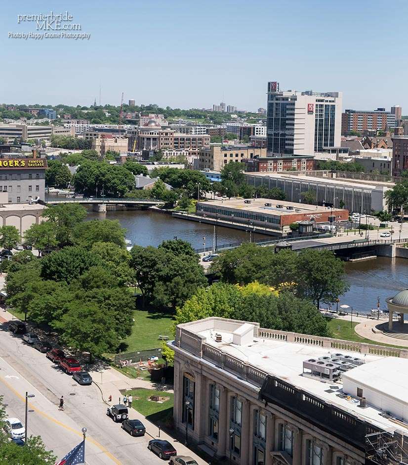 The location allowed Jordan and Amanda to take all of their photos right in downtown Milwaukee, too. “There was beautiful and iconic Milwaukee scenery all around us, so we didn’t have to rent transportation to take photos. Everything was within walking distance. The time saved meant we got to enjoy our entire cocktail hour! It was really important to us that we got to participate in our full wedding day, along with all of our guests.”