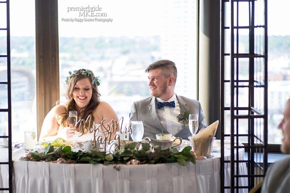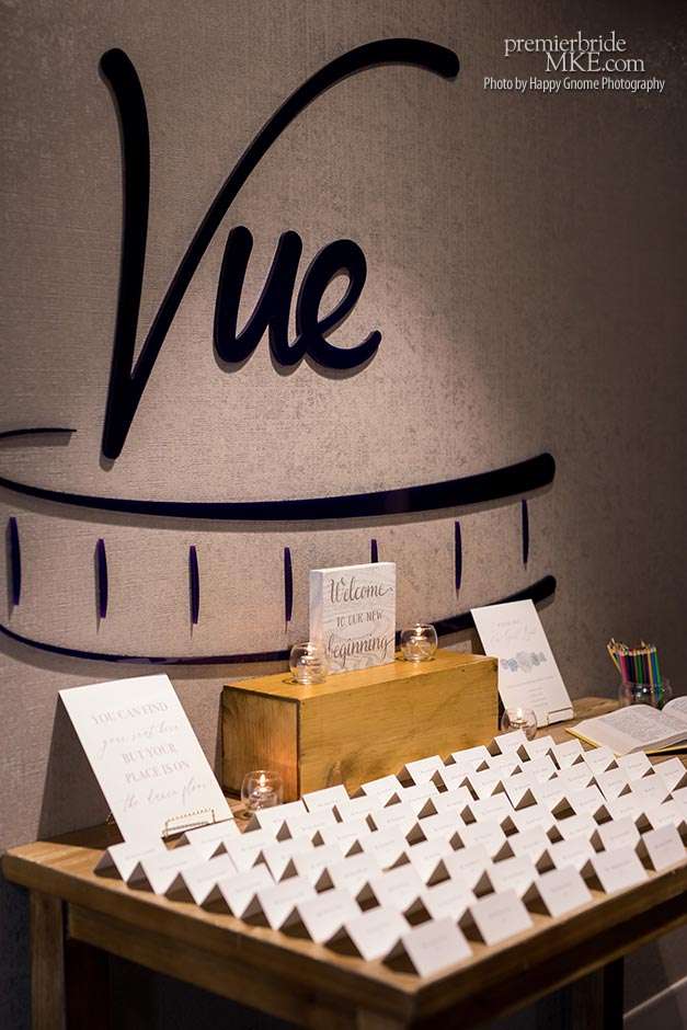 “Having our wedding at VUE gave us Milwaukee, the city where we met, as our backdrop. The Hyatt recently remodeled the space, so it was clean, modern, and truly stunning. It was the perfect alternative to a ballroom, if you want more unique views and don’t need to accommodate hundreds of guests.”