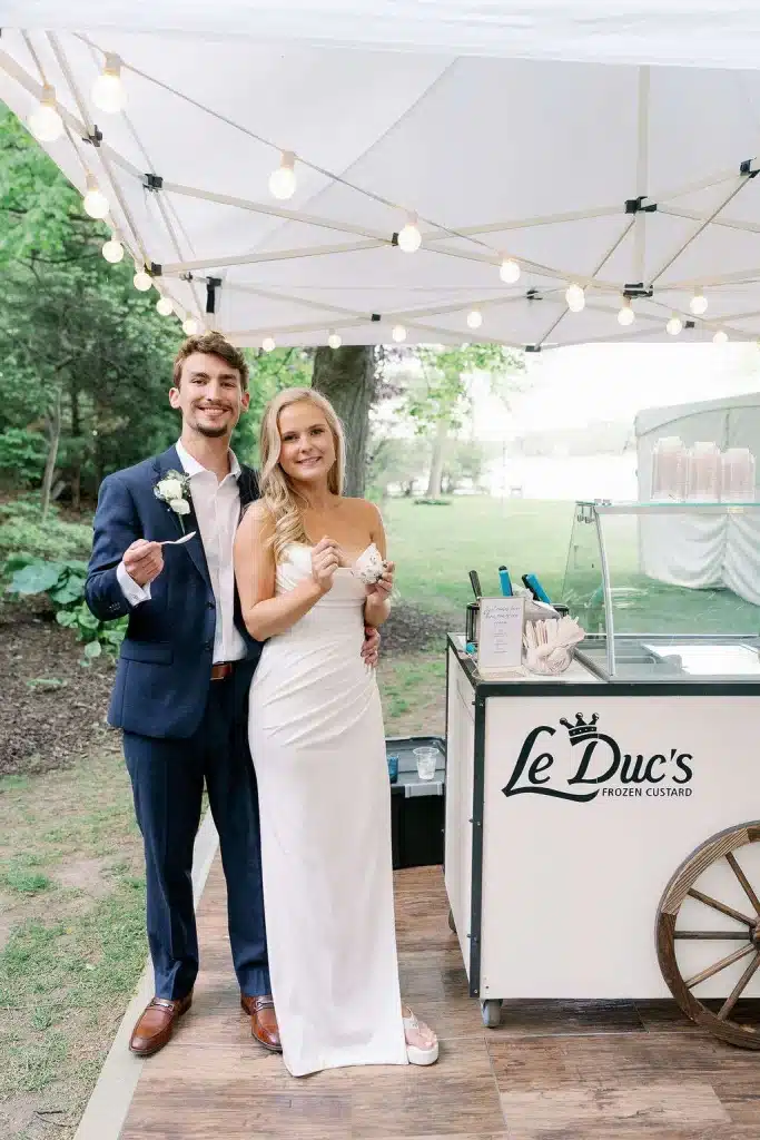 “Our reception was truly magical. From the old fashion bar, to our signature “baby beer” shots, table side magician during cocktail hour, to the amazing Chasin’ Mason Band and King James DJ, late night smore’s, LeDuc’s custard cart, and just magical energy on the lake. The dance floor was never empty (which was my biggest wish) and the air was just filled with so much love. I loved dancing the night away with all of my favorite people.”