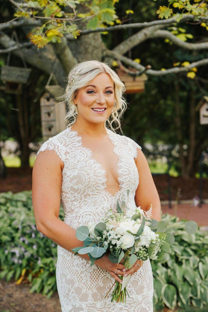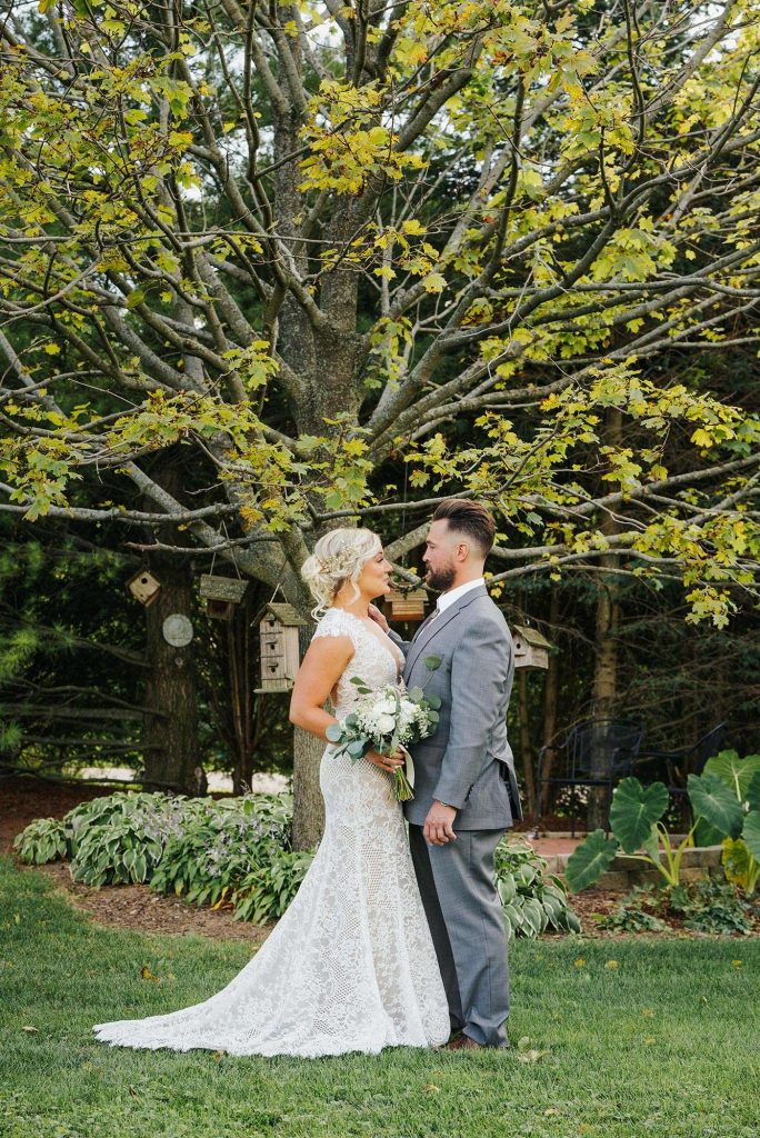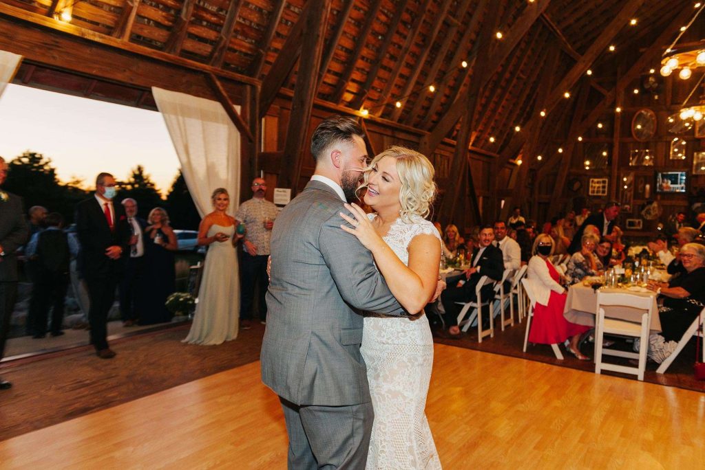 The couple planned a September 2020 wedding, naturally running into some unforeseen pandemic pitfalls. “We had to have several stressful conversations about whether or not we were doing the right thing by having our wedding. While it was a challenge, we are so glad we stuck it out. We mostly had to have many conversations with our vendors and a lot of conversations about mask-wearing and social distancing at the venue. We were fortunate to have it all work out in the end.”