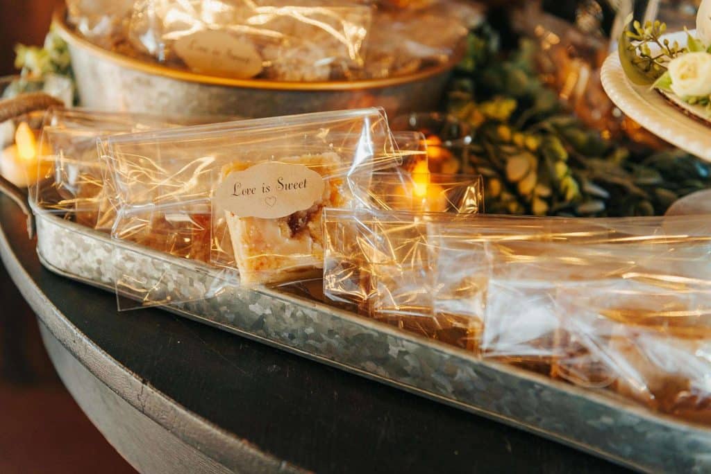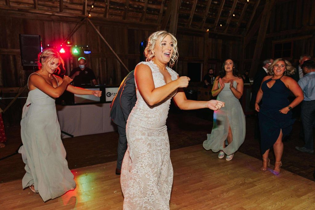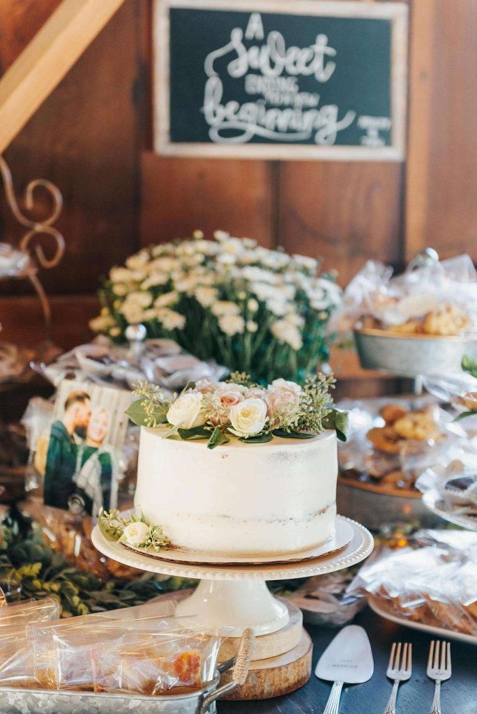 Gooseberries in Burlington catered food stations for dinner. “It was very similar to having food trucks at the wedding. Everything was absolutely delicious!” For drinks, Drink Inc. ensured the guests had, as Ashley puts it, “every drink option they could think up.” Dessert was all homemade by Ashley’s aunt, grandma, and mom and featured cookies, apricot bars, brownies, and more. “We also wanted a cake to cut, so we used a local bakery for cake-cutting.”