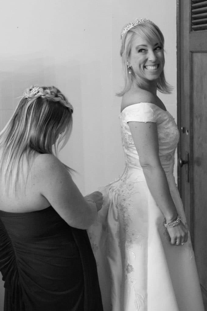 Barbara’s wedding dress was given to her by her sister. “When I told her I was getting married she said she had a ‘fairytale’ wedding gown that had never been worn. She asked if I wanted to try it on just for fun. It was so incredibly perfect for me that we were both stunned. It was as if the dress had been waiting in her basement for me this whole time. To be gifted this incredible dress by my sister was such an unexpected joy.”