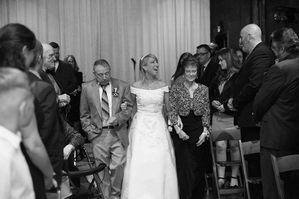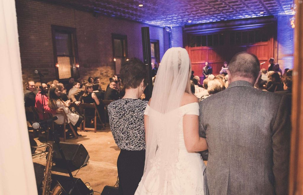 Barbara and Matt met in the Milwaukee music scene. They were friends and played in bands together for quite a few years before they started dating. It’s fitting that the two then got engaged on the night Barbara was playing with her band. “I didn’t think too much of it when I heard my family was coming into town for the show, and that a bunch of my friends were going to be there,” Barbara says.