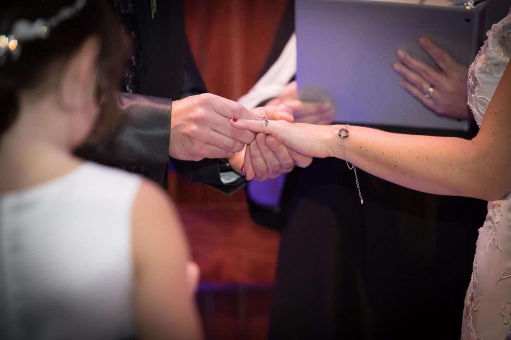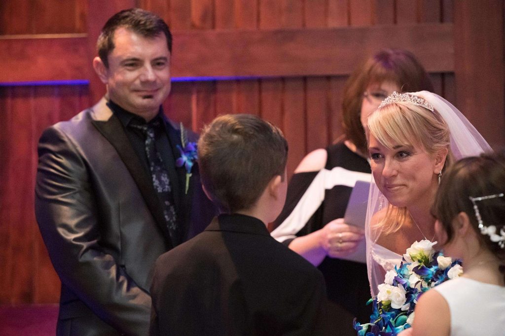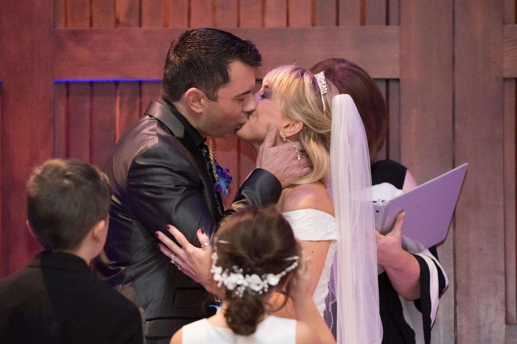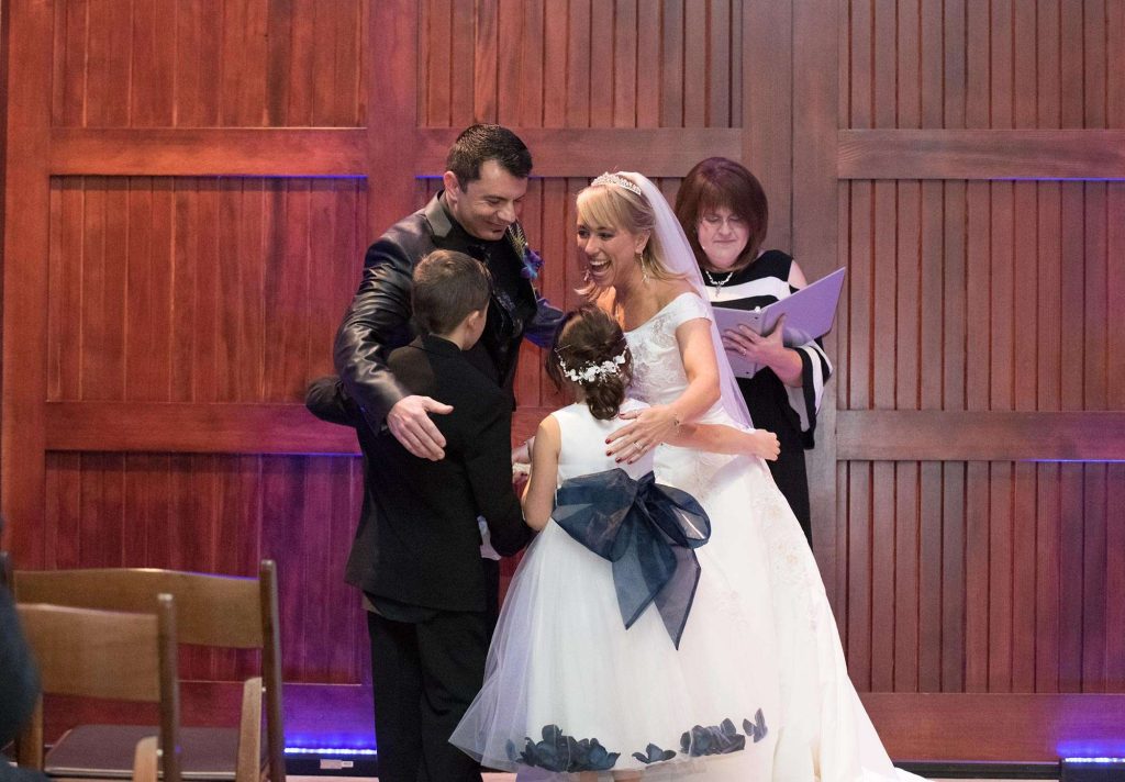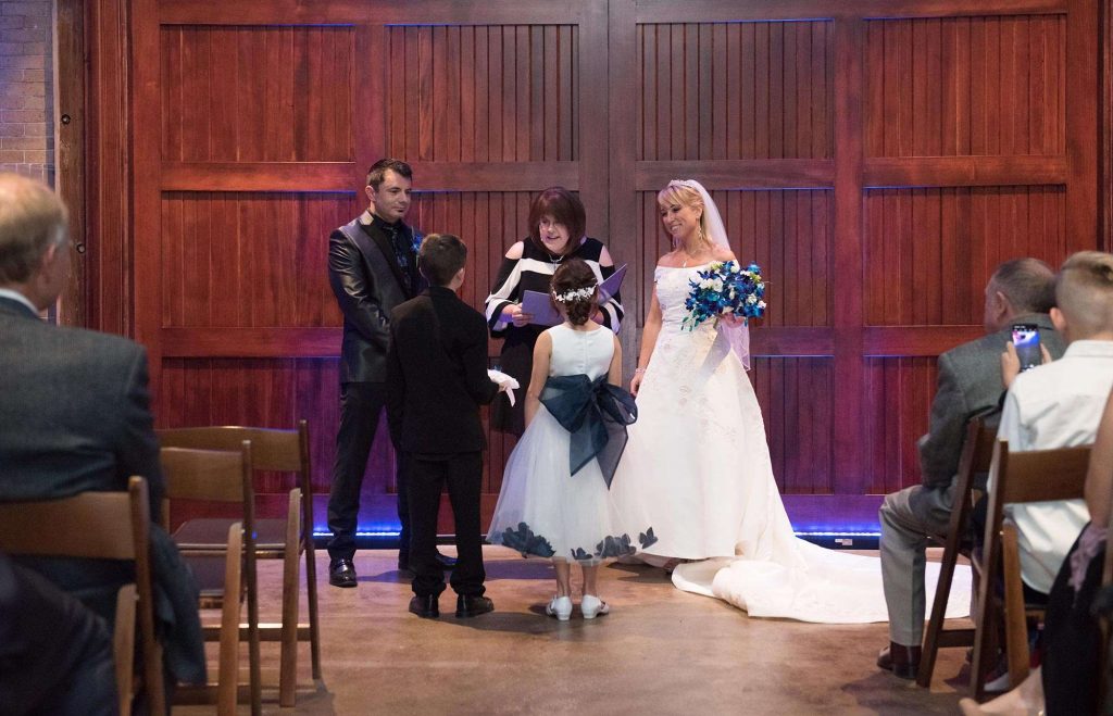 Matt’s favorite part of the ceremony was first seeing Barbara in her dress. “It had one of the longest trains I’ve ever seen, and she looked beautiful in it.” As for Barbara, she loved including Matt’s twins in the ceremony. “We had vows for them too and made sure they knew they were a big part of it.”