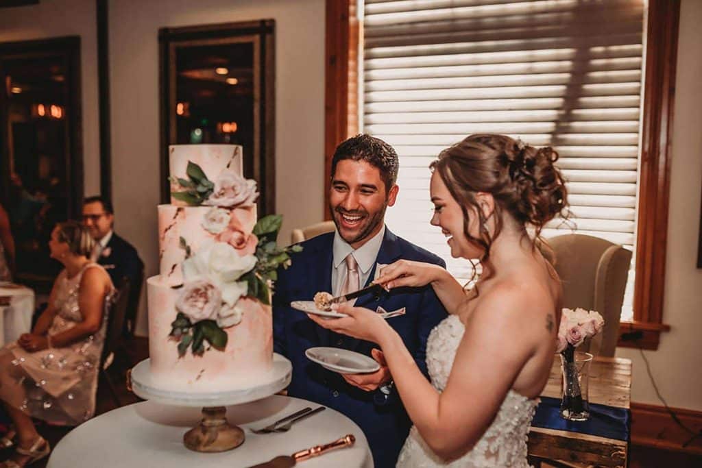 Following the bridal party procession, Megan’s brother played “Canon in D” on the piano, which was a very special moment for everyone. The couple wanted the ceremony to be centered on the two of them without being generic. Their officiant even gave them the freedom to make the script their own. During the unity, Megan and Daniel blended wine together and each took a sip of it.