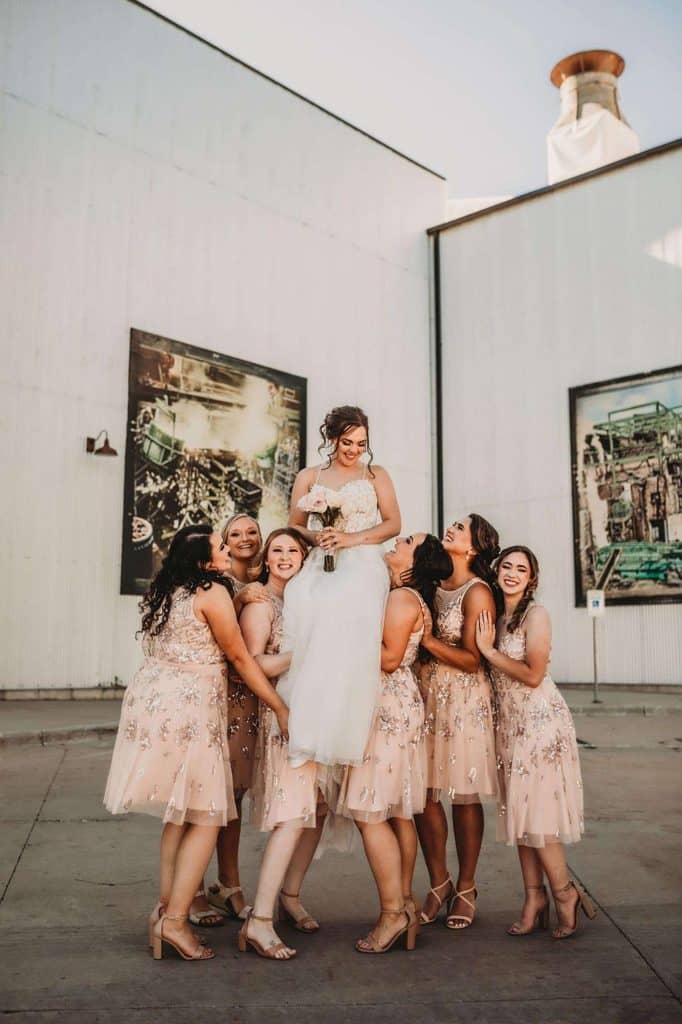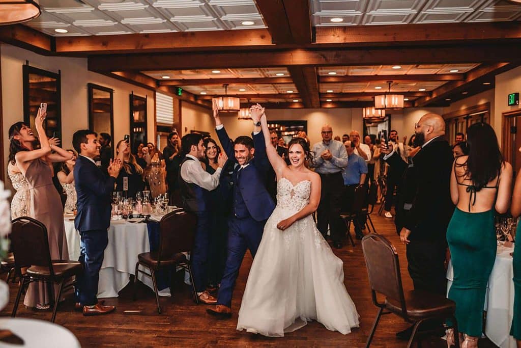 One of Megan’s favorite parts of the super fun reception at the Ironworks Hotel was her brother and Matron of Honor’s entrance. They walked out to “California Gurls” by Katy Perry wearing shark costumes to pay homage to her Super Bowl halftime performance. They had everyone laughing and people still talk about it to this day.