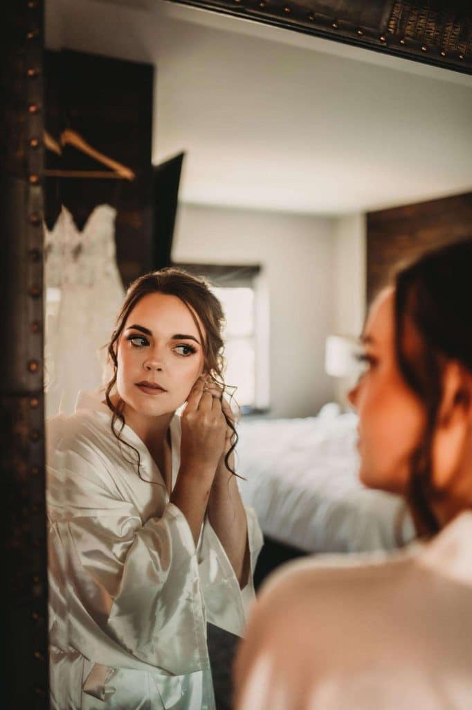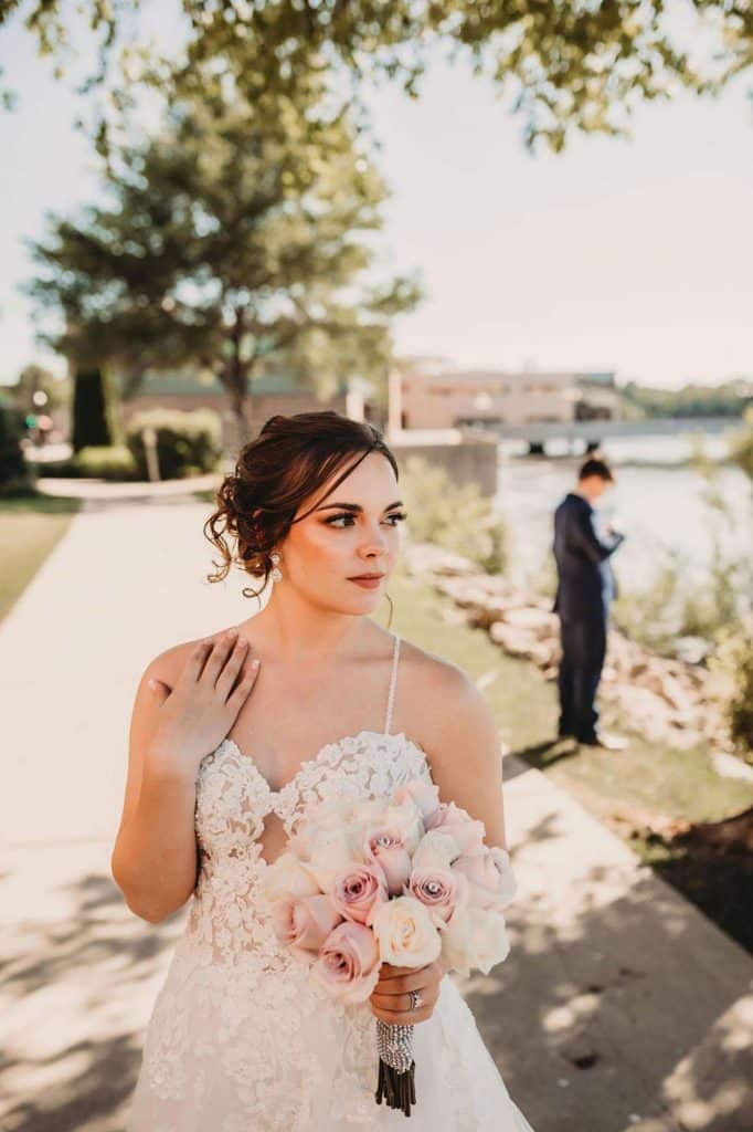 Megan found her dream wedding dress, a Morilee by Madeline Gardner, at Tulle Bridal Boutique in Clinton, Wisconsin. Before she found “the one,” she tried on nine gowns. Megan had a few styles in mind, but Kayla, the owner of the dress shop, helped immensely when it came to finding the right fit for her body type and paid close attention to her personal fashion preferences.