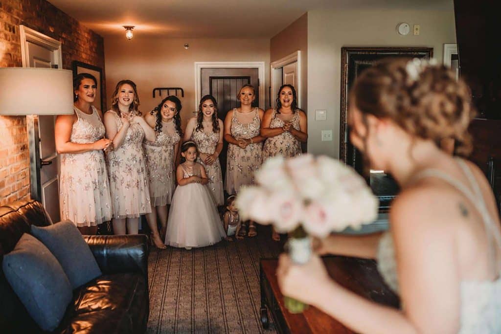 “Find your venue right away. We had a long engagement, and knowing we secured the venue we wanted was a big relief,” Megan suggests. “Make sure you get vendors you can trust. Have a bridal party that will be happy for you and your special day. My bridal party made getting ready so much fun and were there if I needed anything. Most importantly, enjoy your day! It will only happen once, and you do not want to look back and regret worrying about everything.”